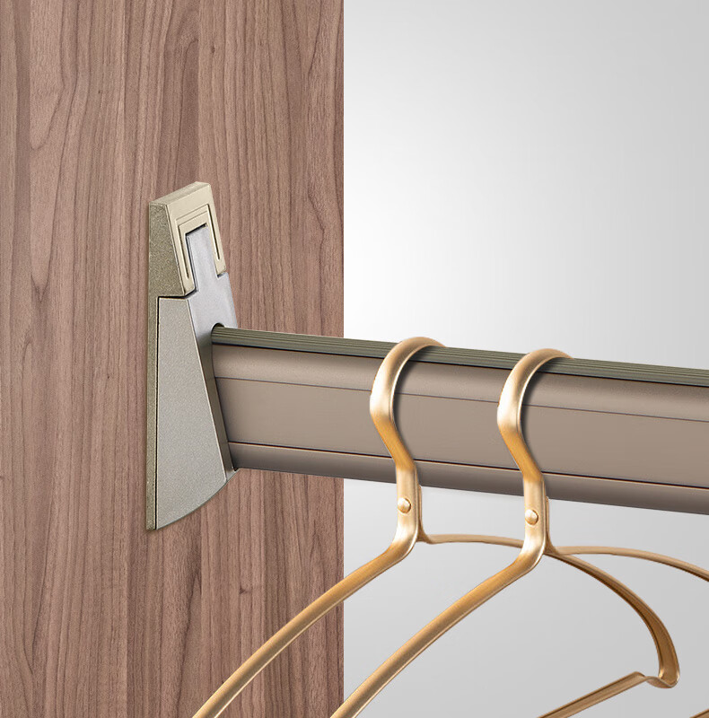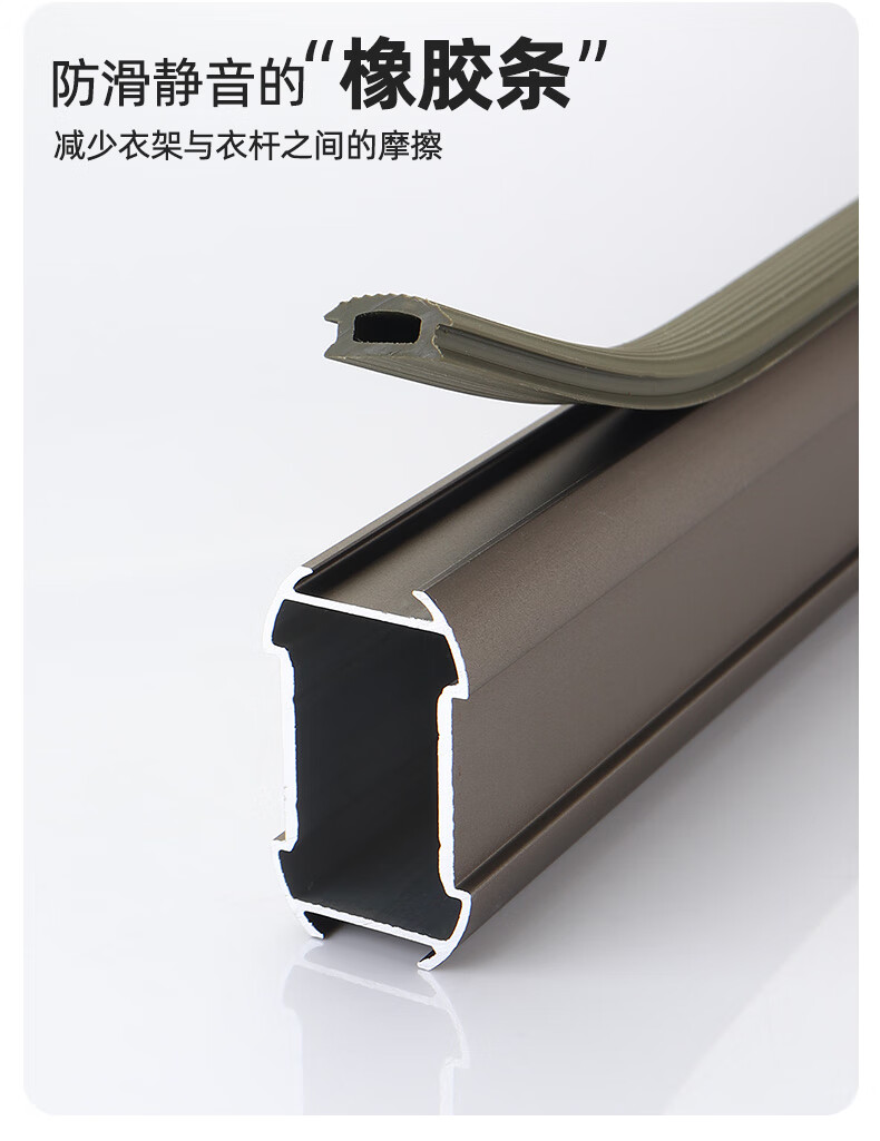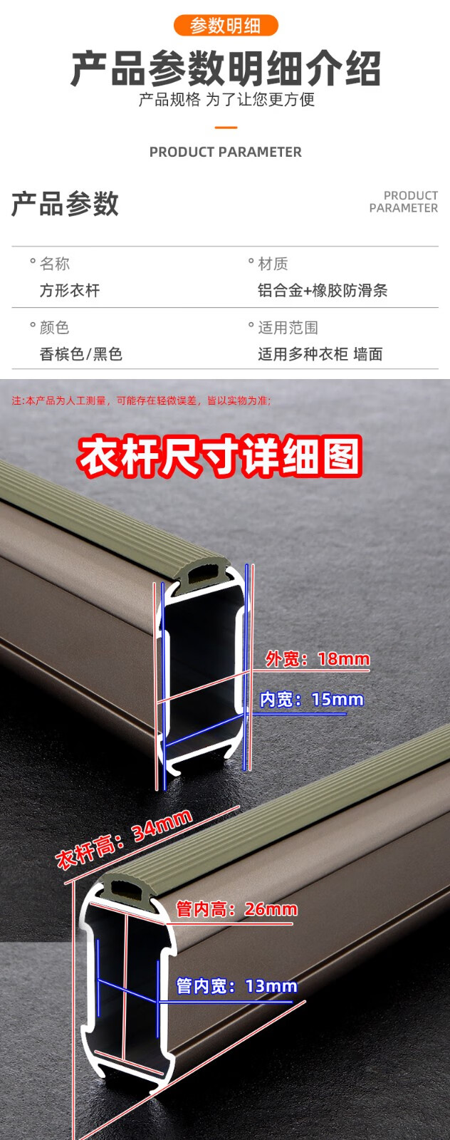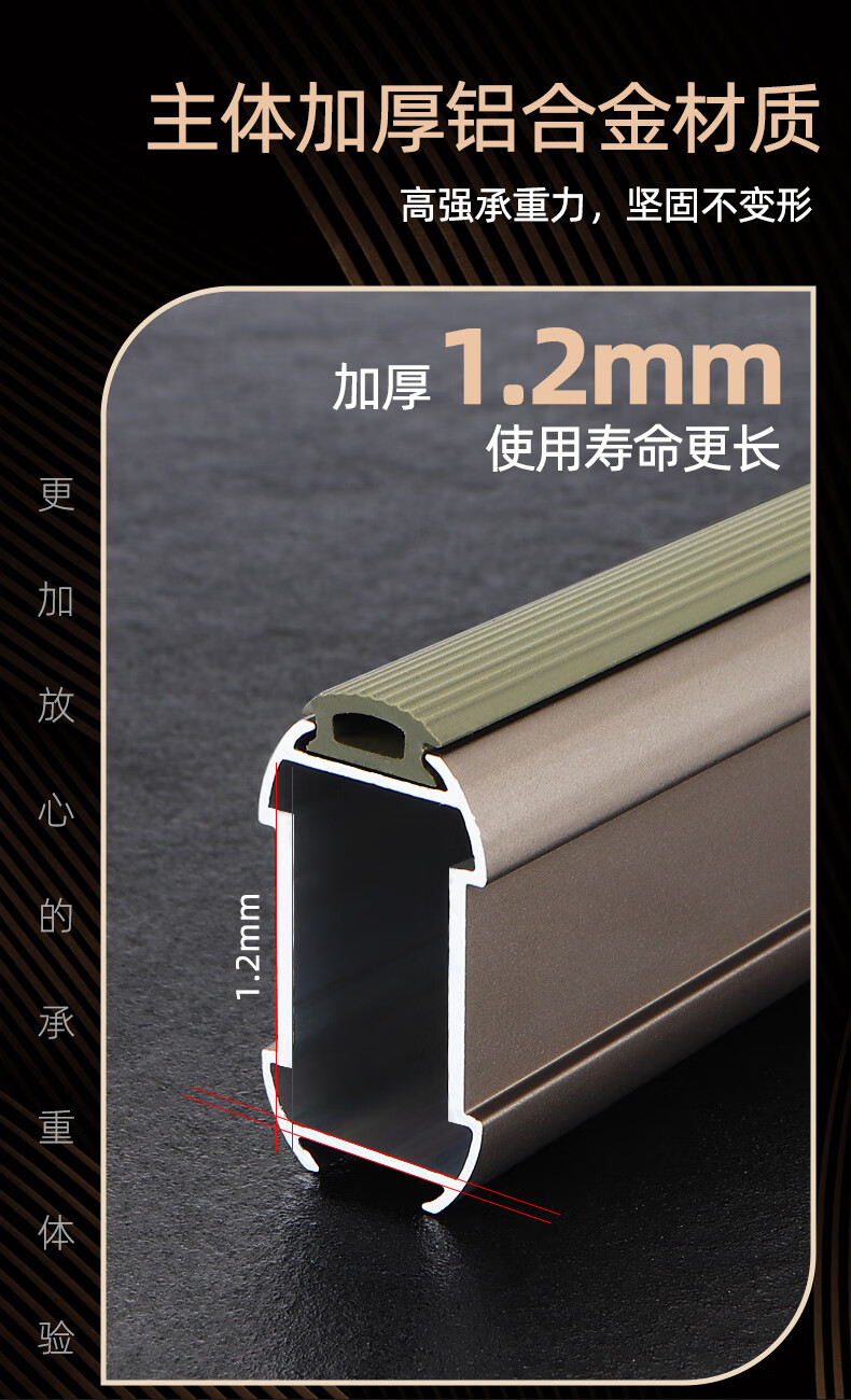 固朵加厚防滑挂衣杆衣橱扁横杆衣通杆衣柜挂衣杆挂衣杆柜内法兰超厚 香槟色31-50CM【送法兰】