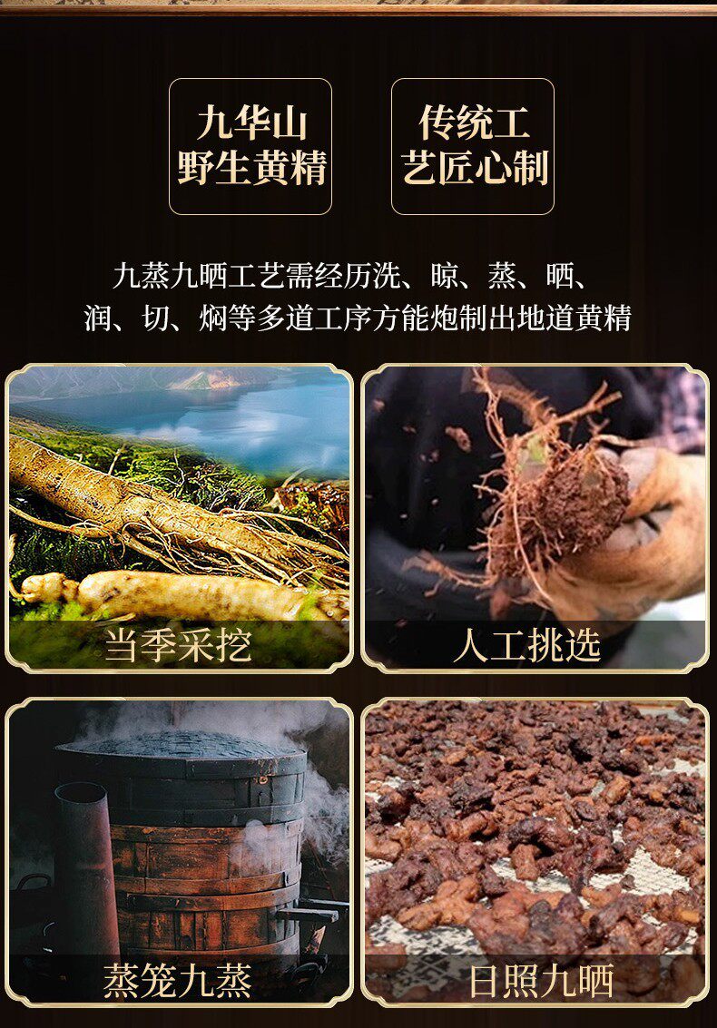 同仁堂胖东来同款黄精九蒸九制九晒九华山中草药材即食泡水喝黄精茶养生 [特级黄精]共巩固装补回 250g*2罐