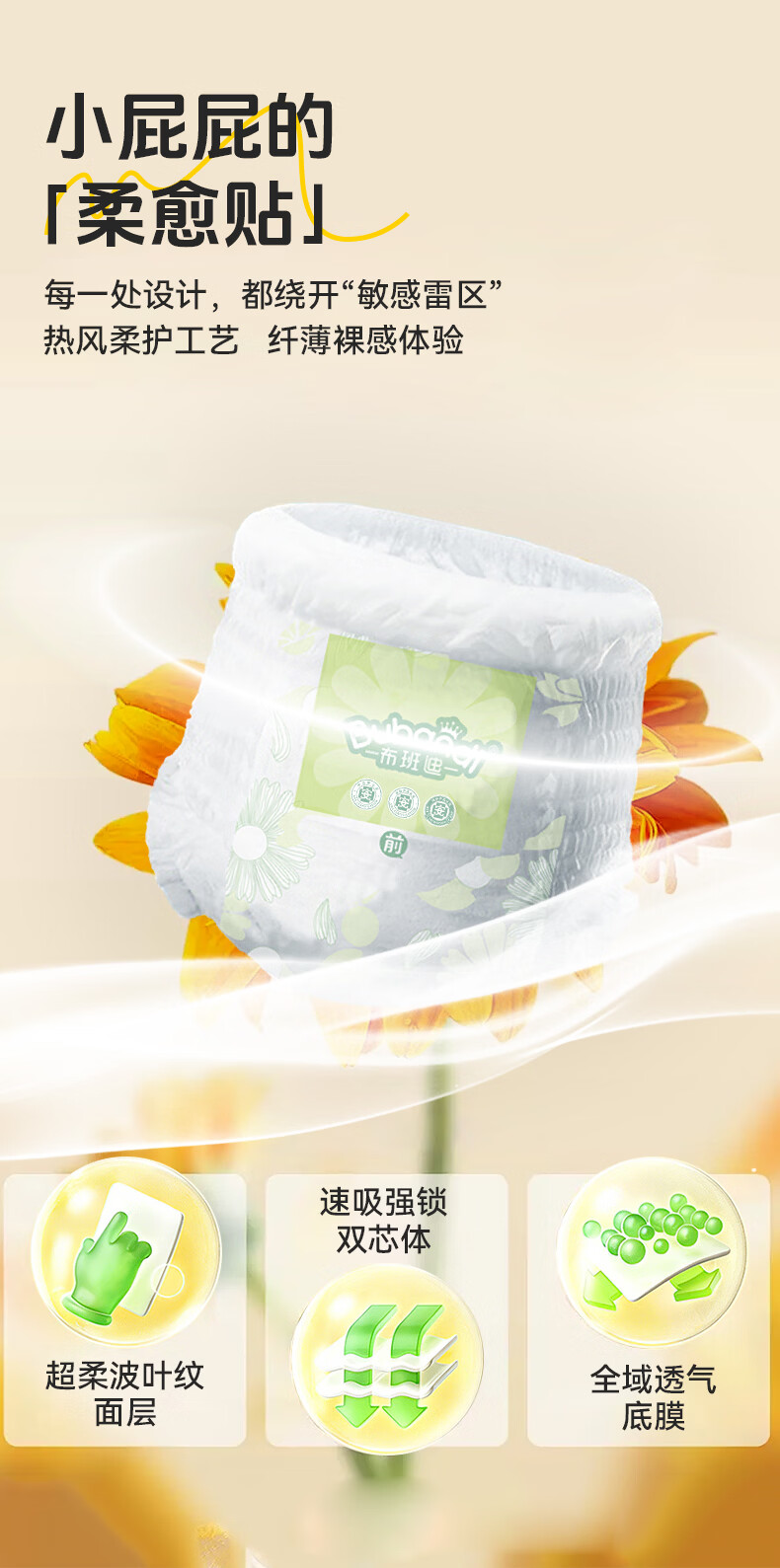 布班迪盏放系列拉拉裤超薄干爽婴儿拉拉裤男女宝宝通用学步裤爬行裤防漏 【全包臀】拉拉裤L码66片(9-14kg)