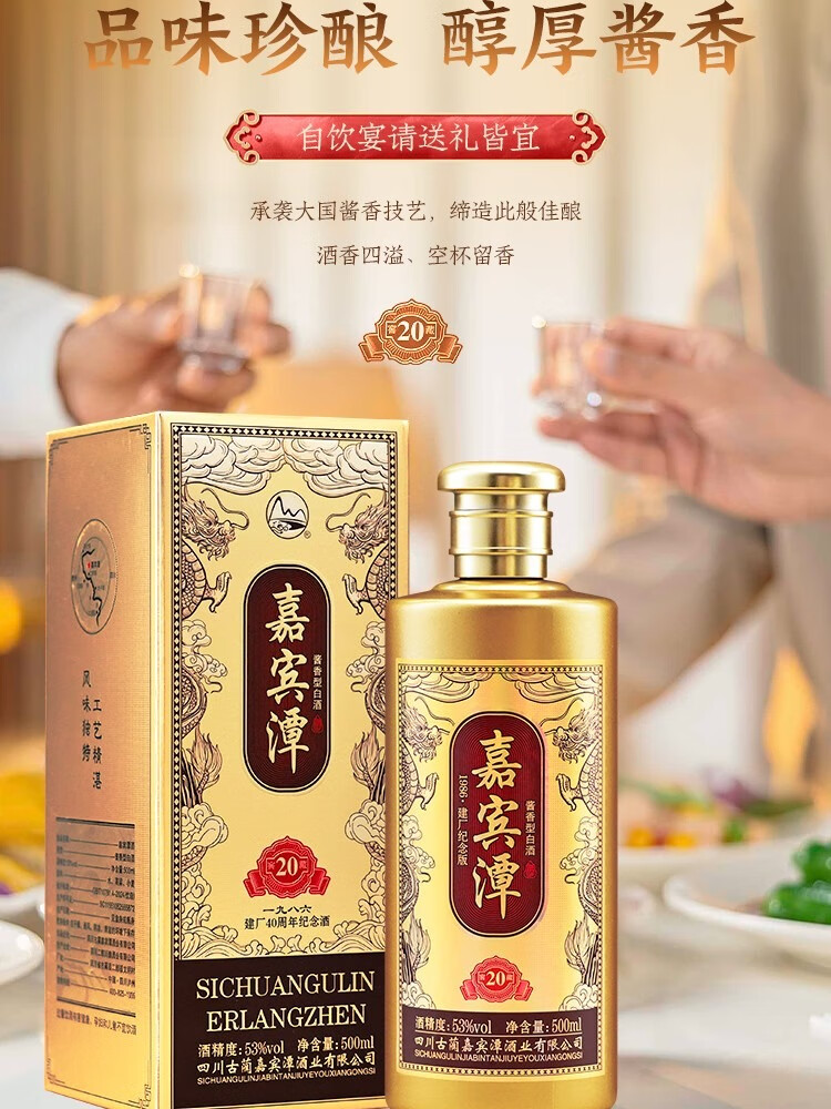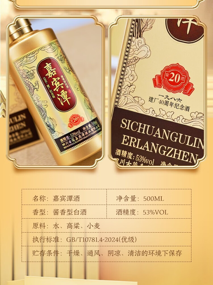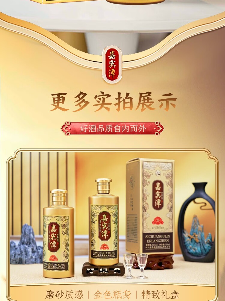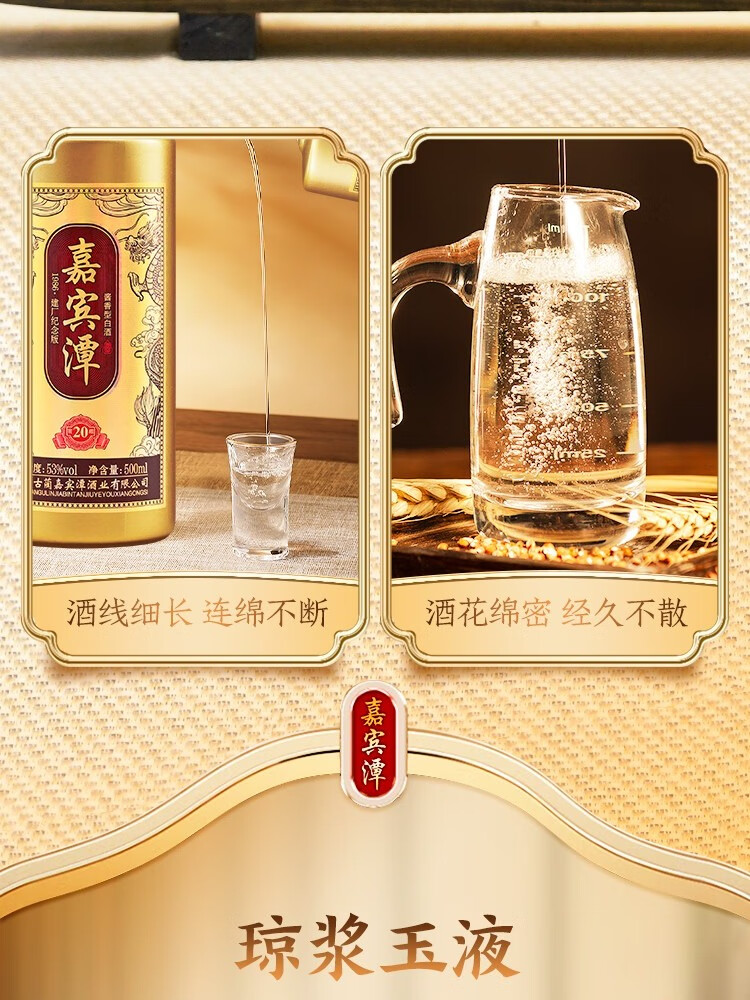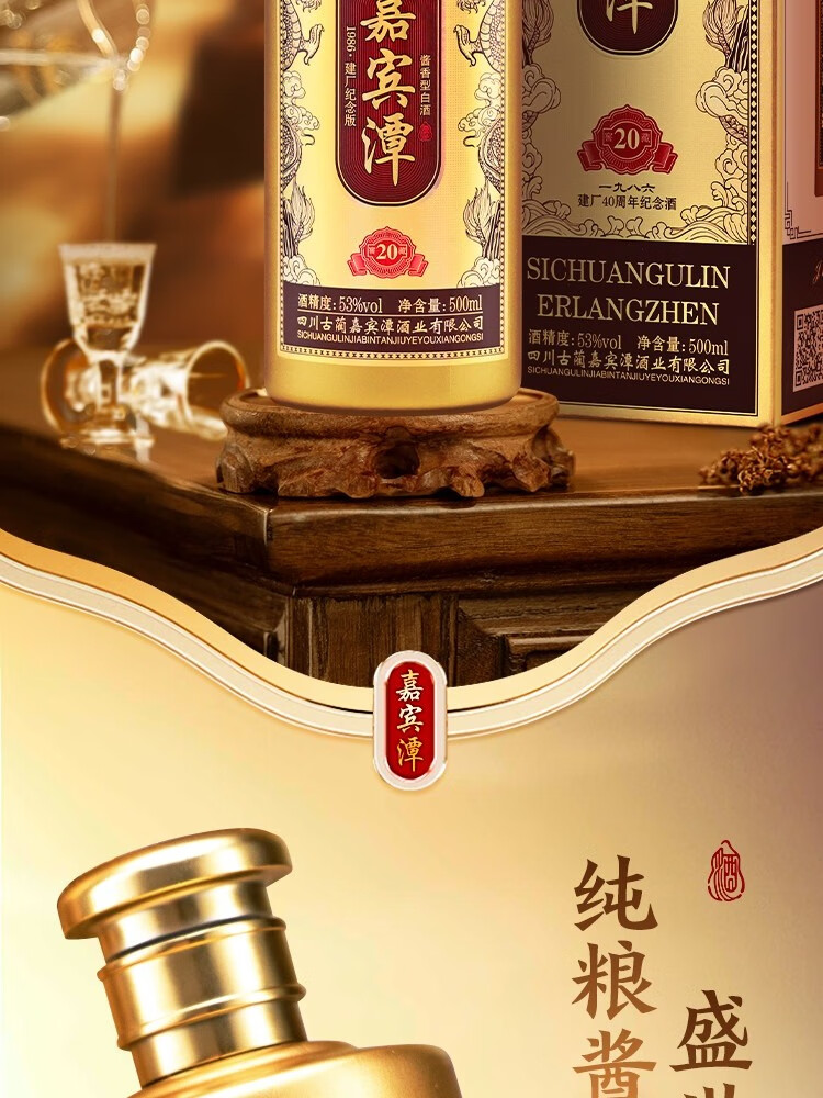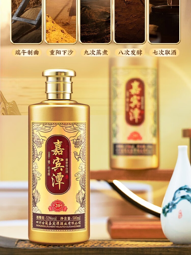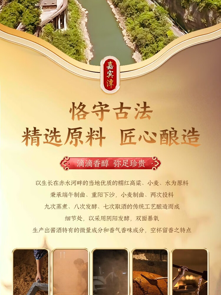 JIUJIULIANGXIN嘉宾潭酱香型白酒 53度高度白酒 53度 500mL 6瓶 整箱装