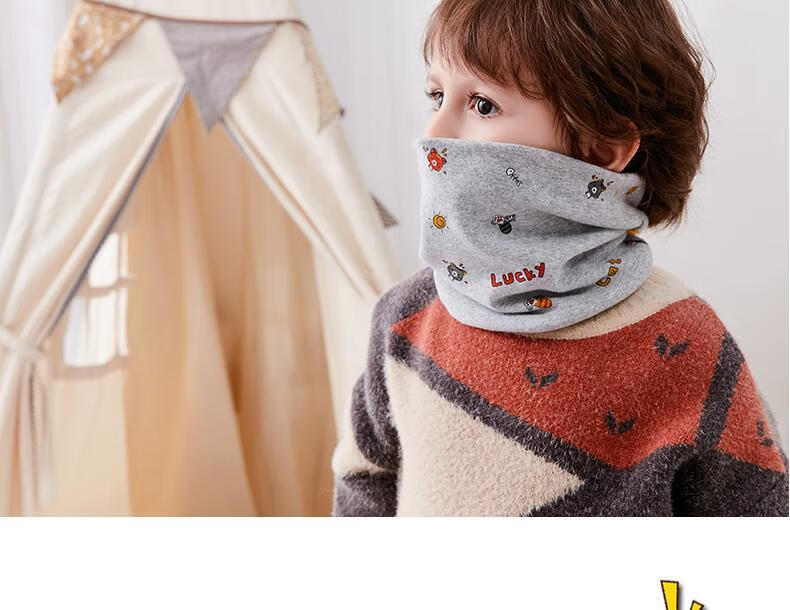 迪士尼(Disney)A类纯棉儿童围脖宝宝秋冬脖套男小孩冬季套头婴儿围巾防风保暖女 卡皮巴拉-姜黄 0-10岁