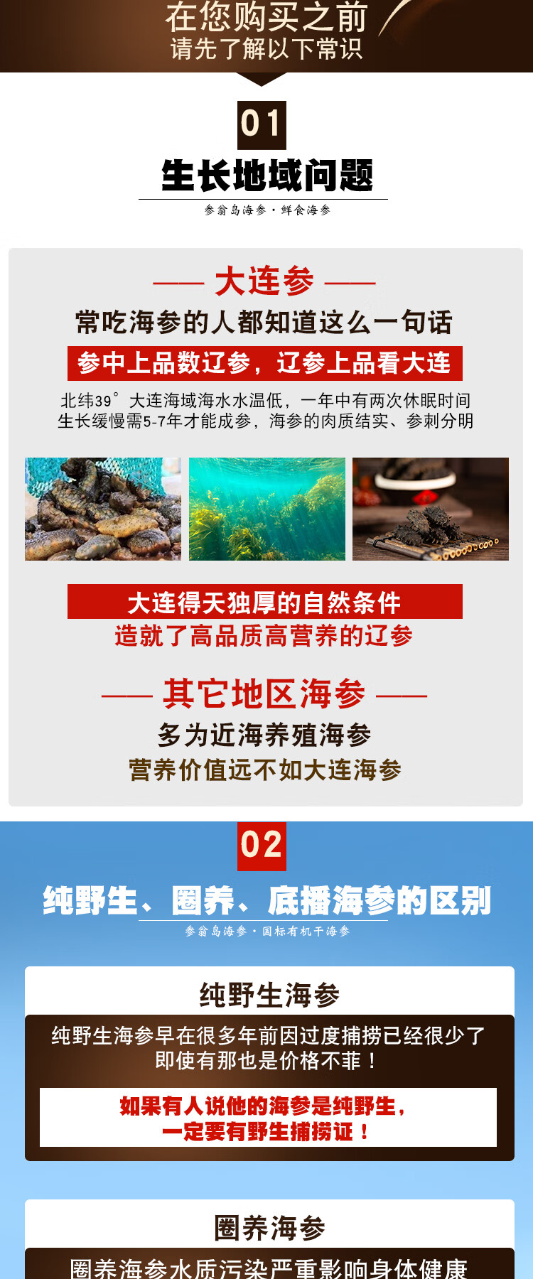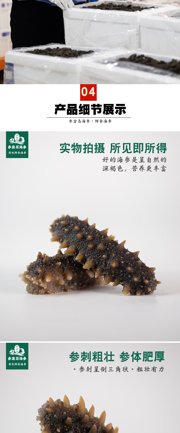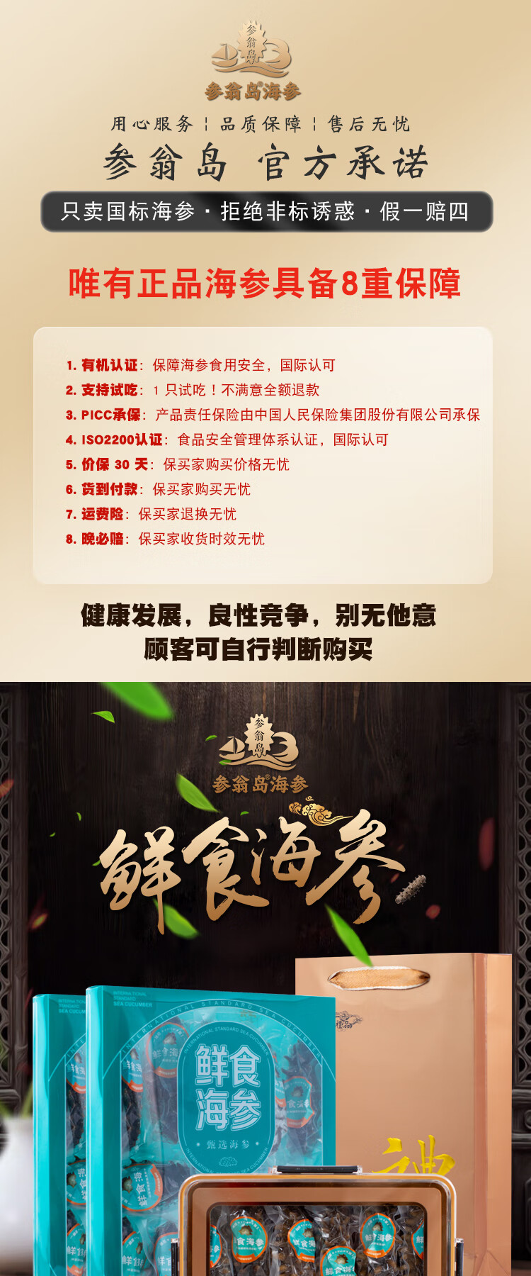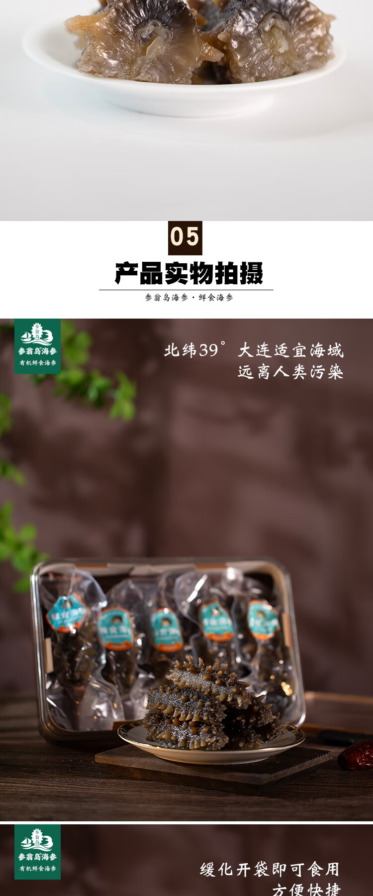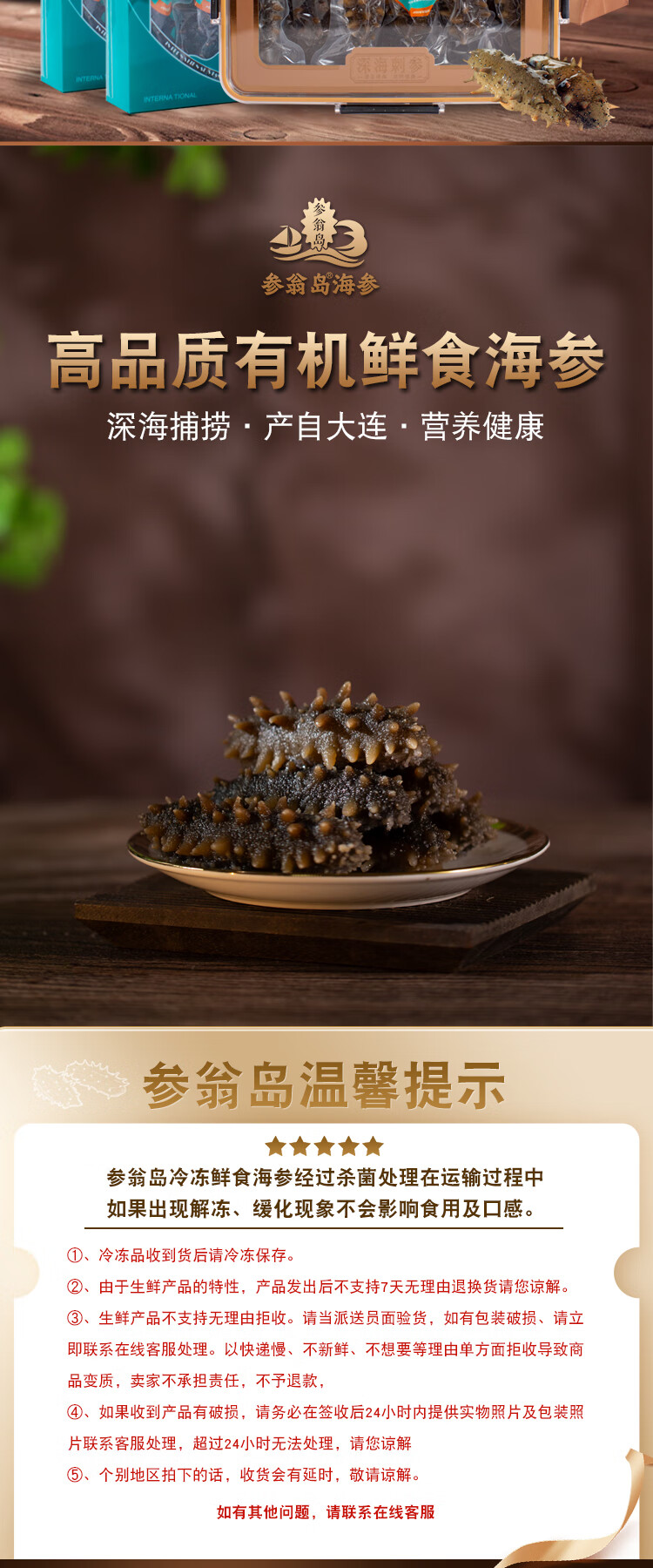参翁岛【促销活动】大连底播鲜食即食海参 新鲜辽刺参 国标有机认证海参 有机珍品鲜食 500g*3盒 24-36头
