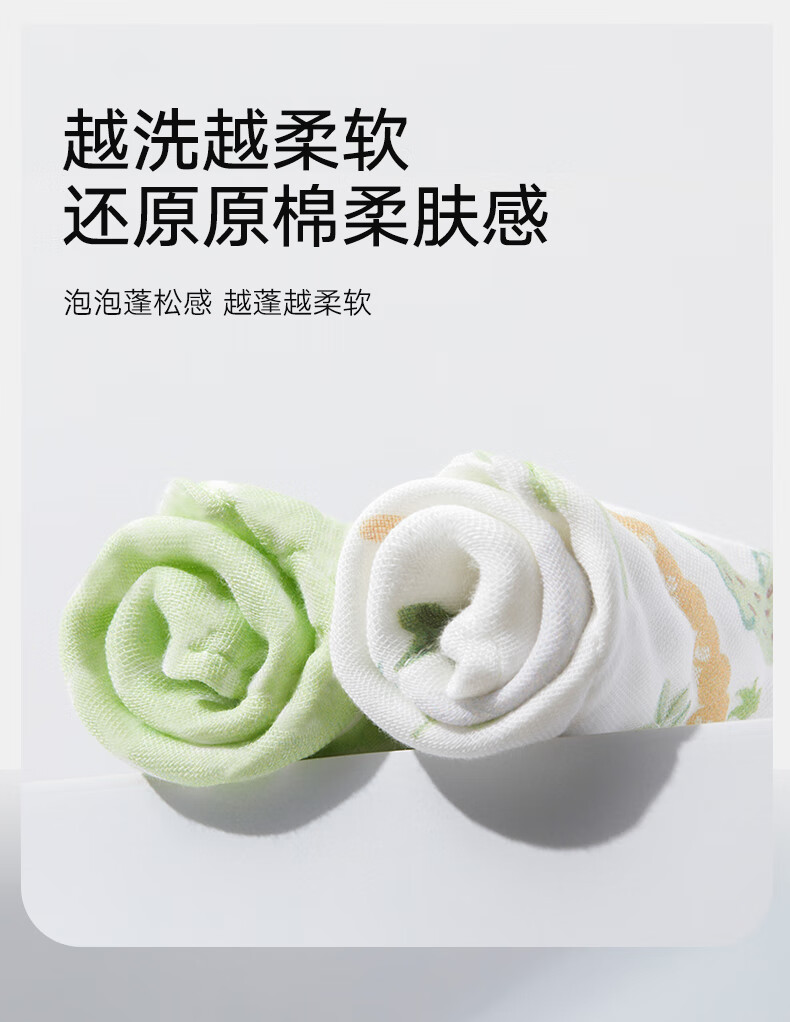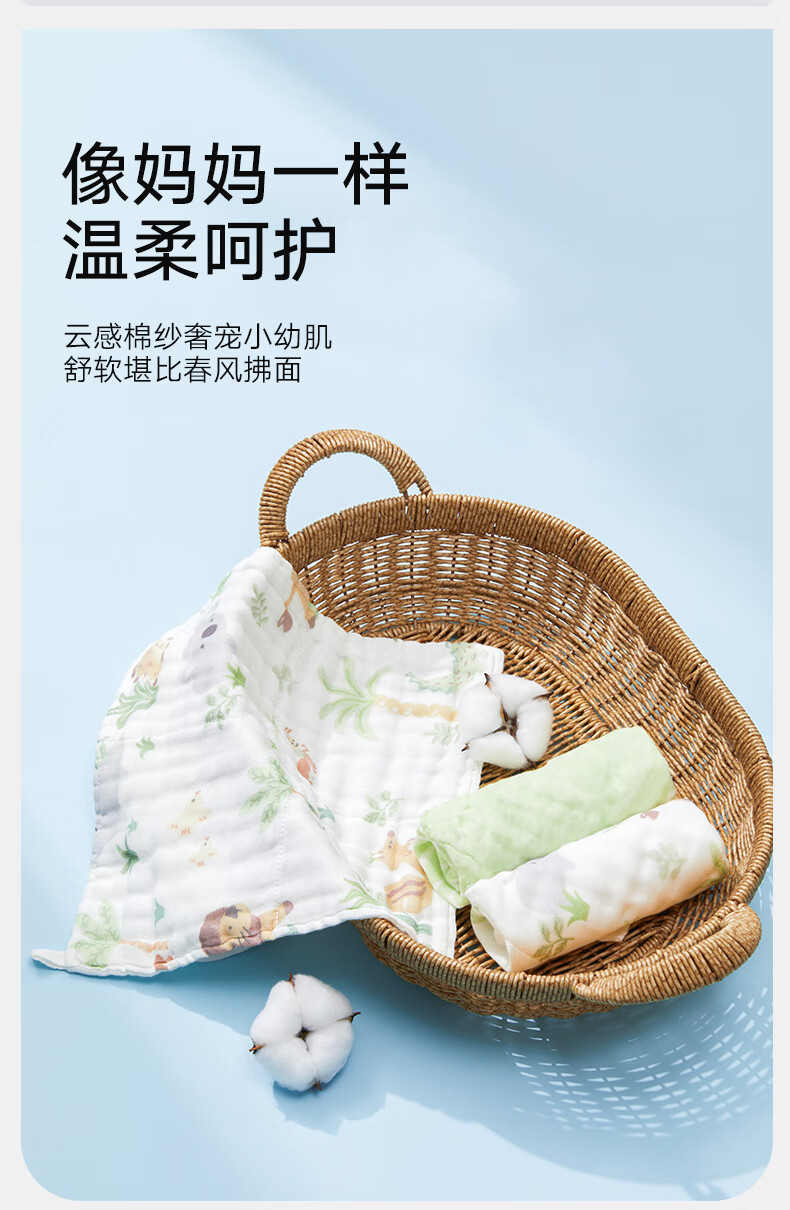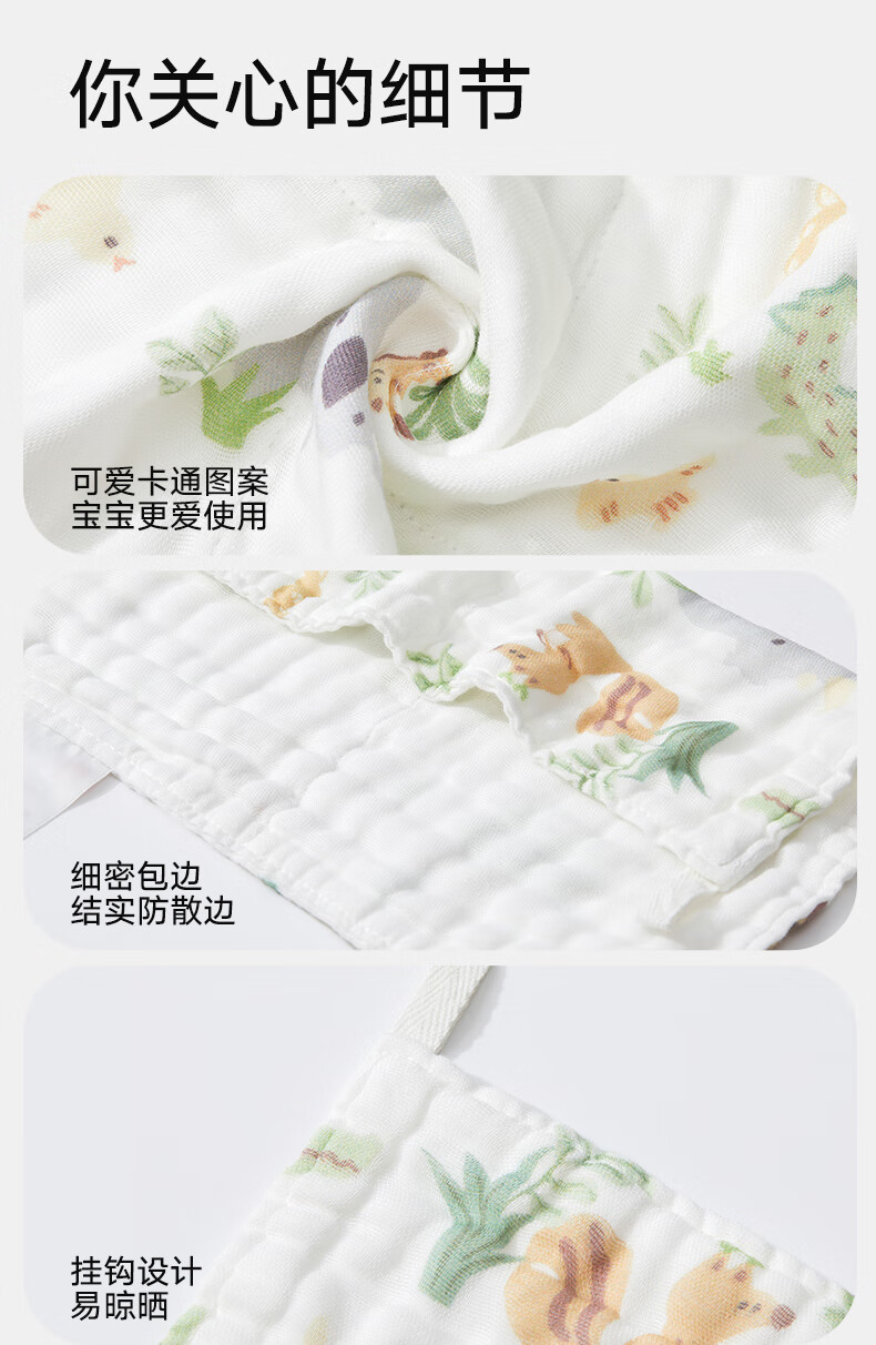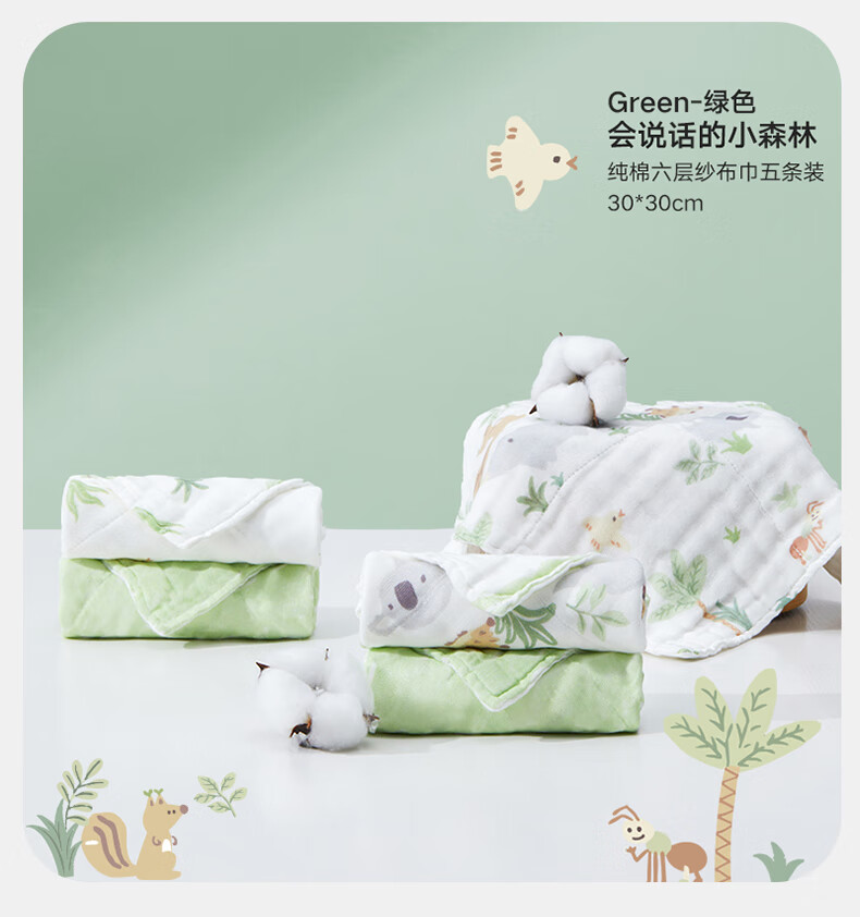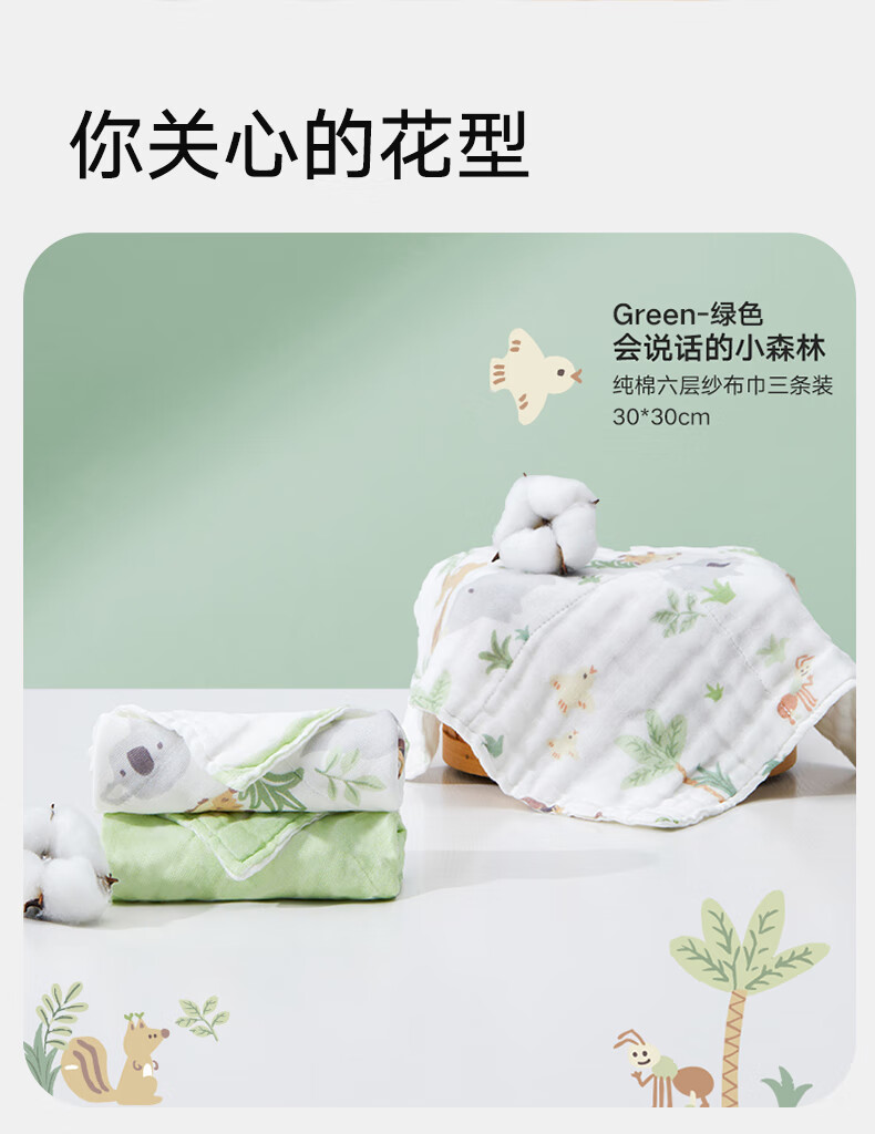 好孩子婴儿洗脸巾纱布毛巾口水巾婴儿新生宝宝儿童纯棉小方巾JTK 会说话的小森林-绿色3条装