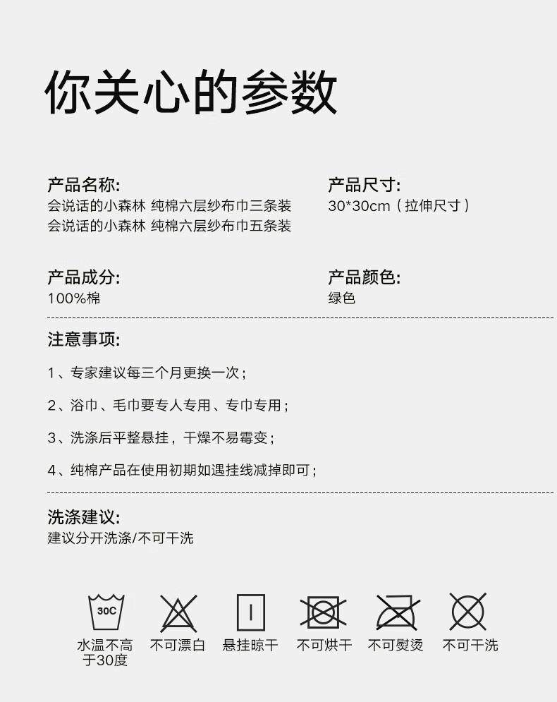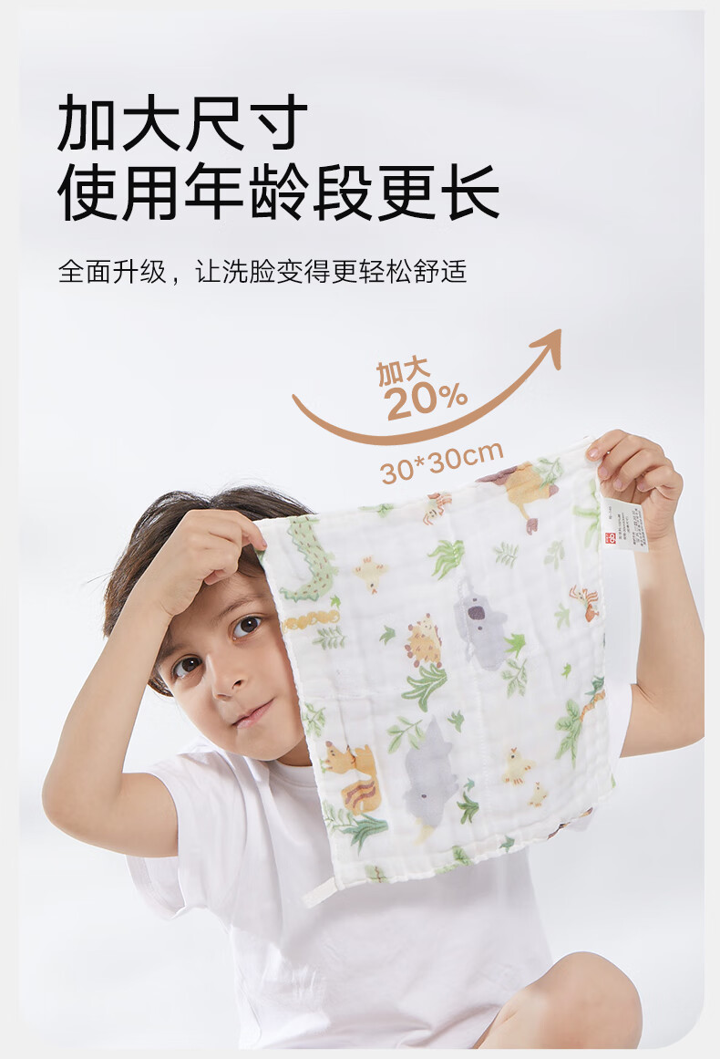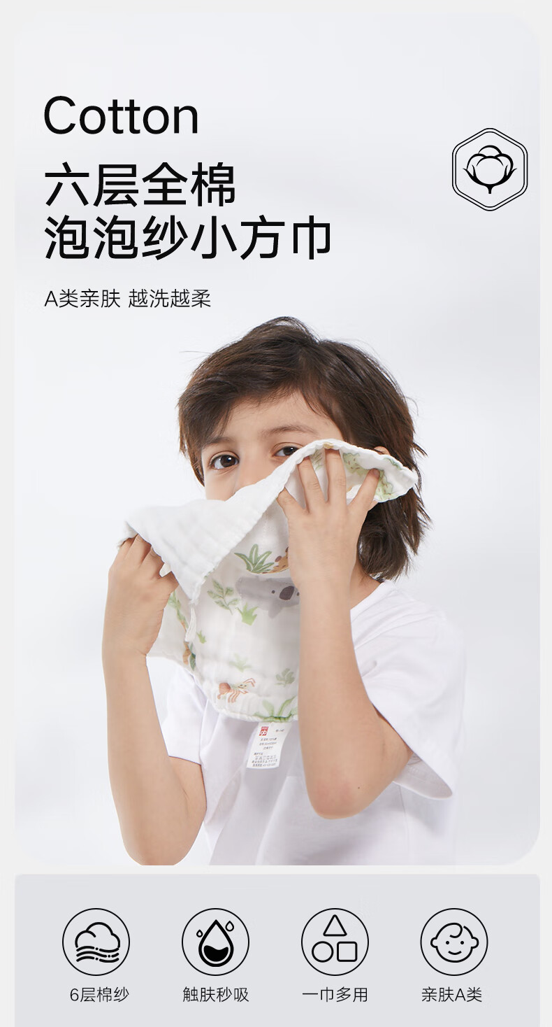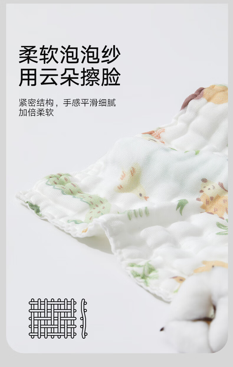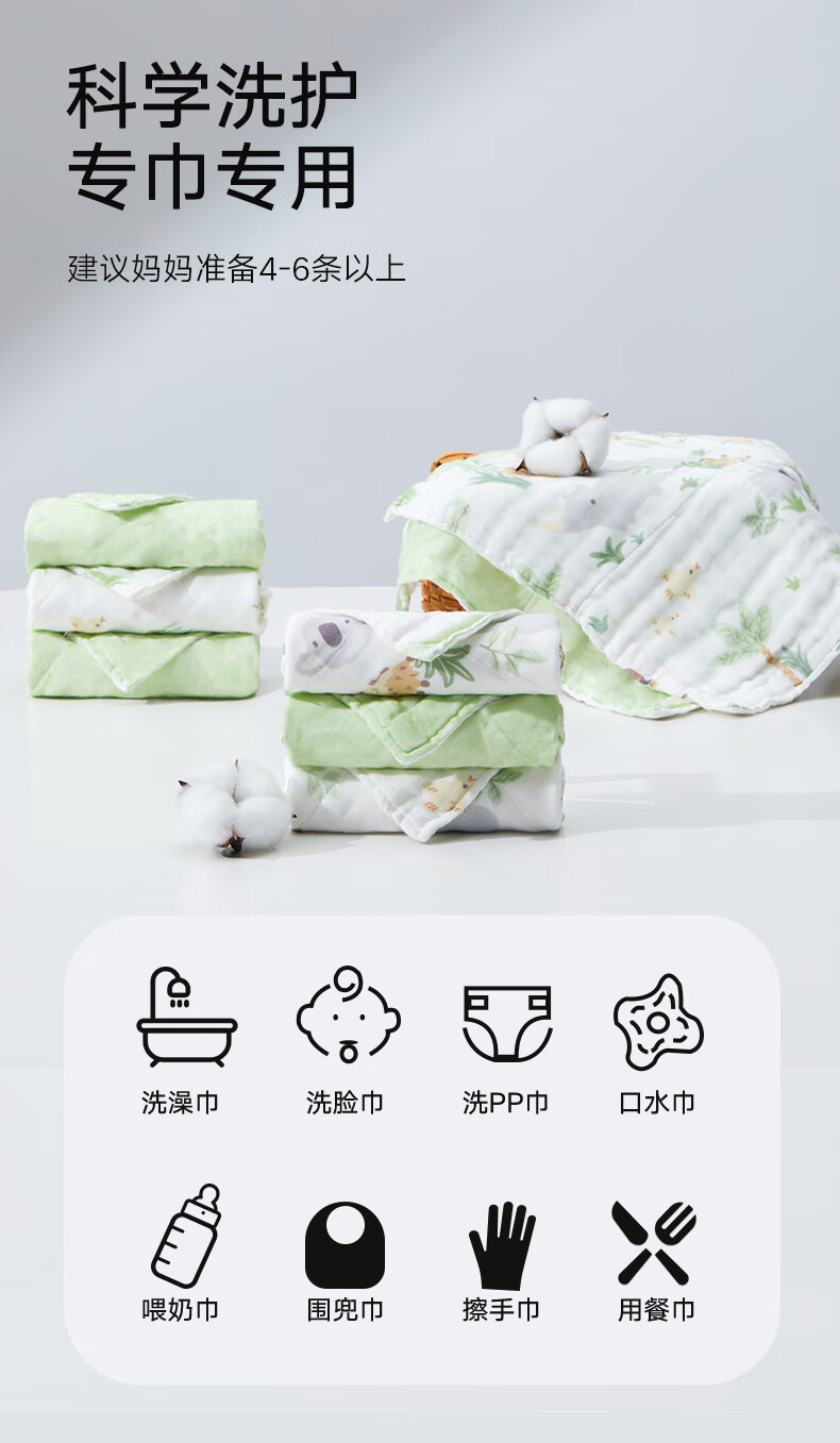 好孩子婴儿洗脸巾纱布毛巾口水巾婴儿新生宝宝儿童纯棉小方巾JTK 会说话的小森林-绿色3条装