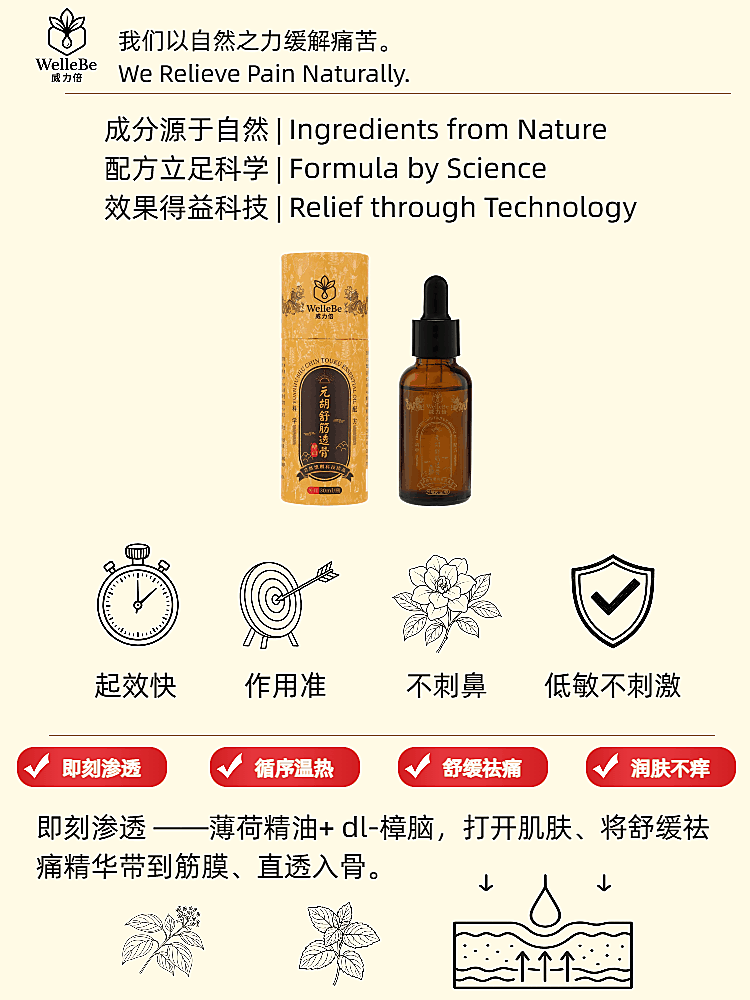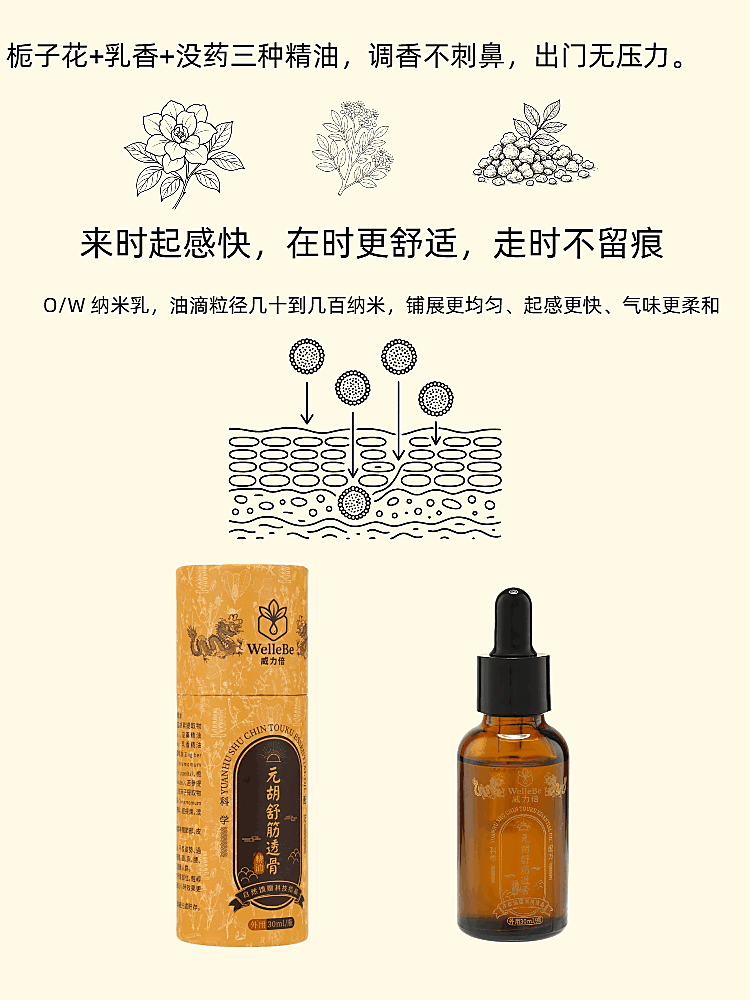 威力倍 WELLEBE威力倍元胡镇痛祛痛精油活络油腰疼腿疼手腕疼肩膀疼手腕疼不过敏 浅黄色