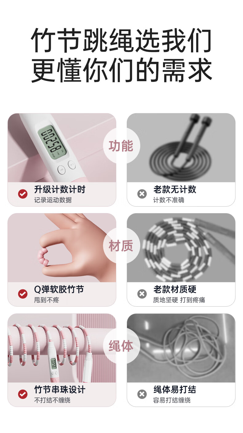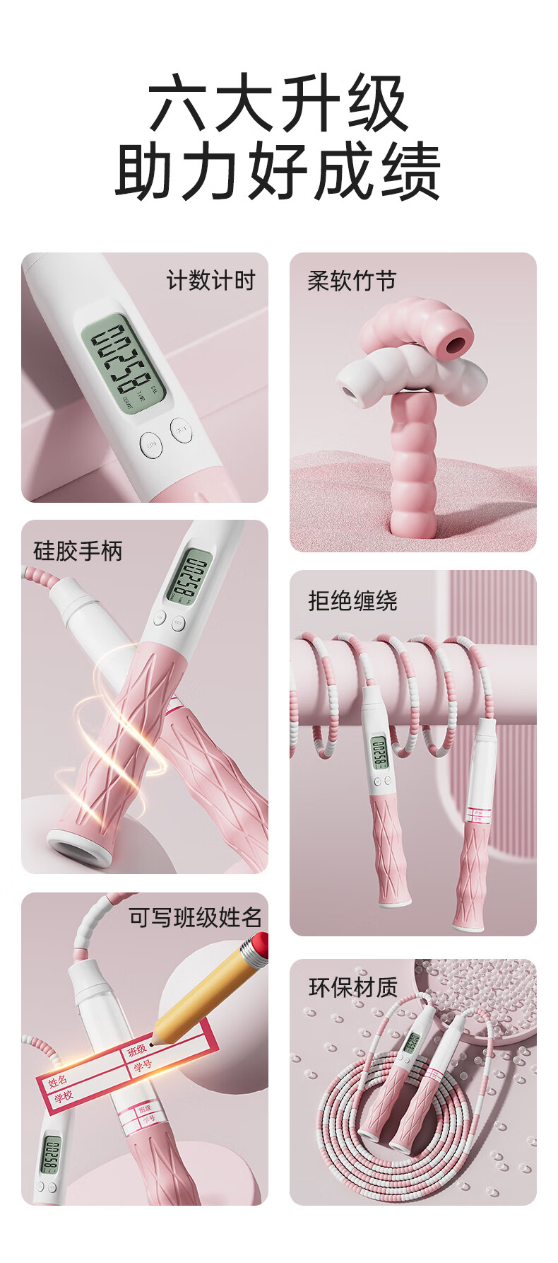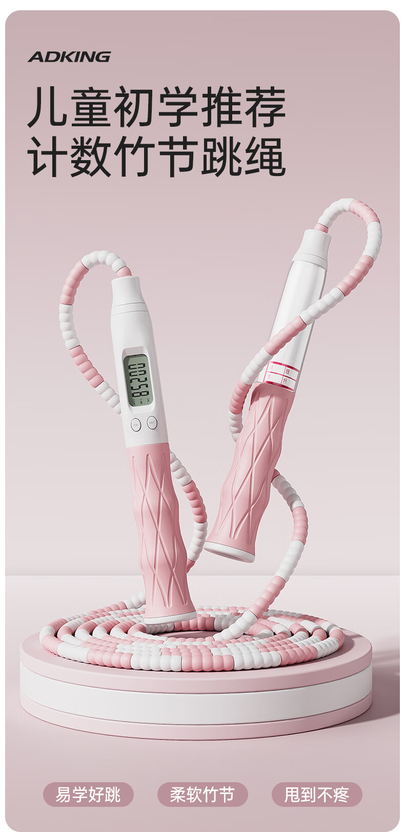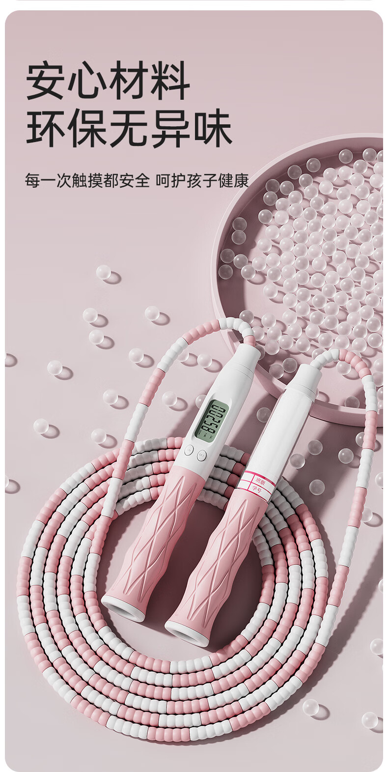 宰搂计数竹节跳绳儿童小学专用幼儿园初学绳子一年级大班学生跳绳 两个装雾霾蓝+木槿紫霍尔精