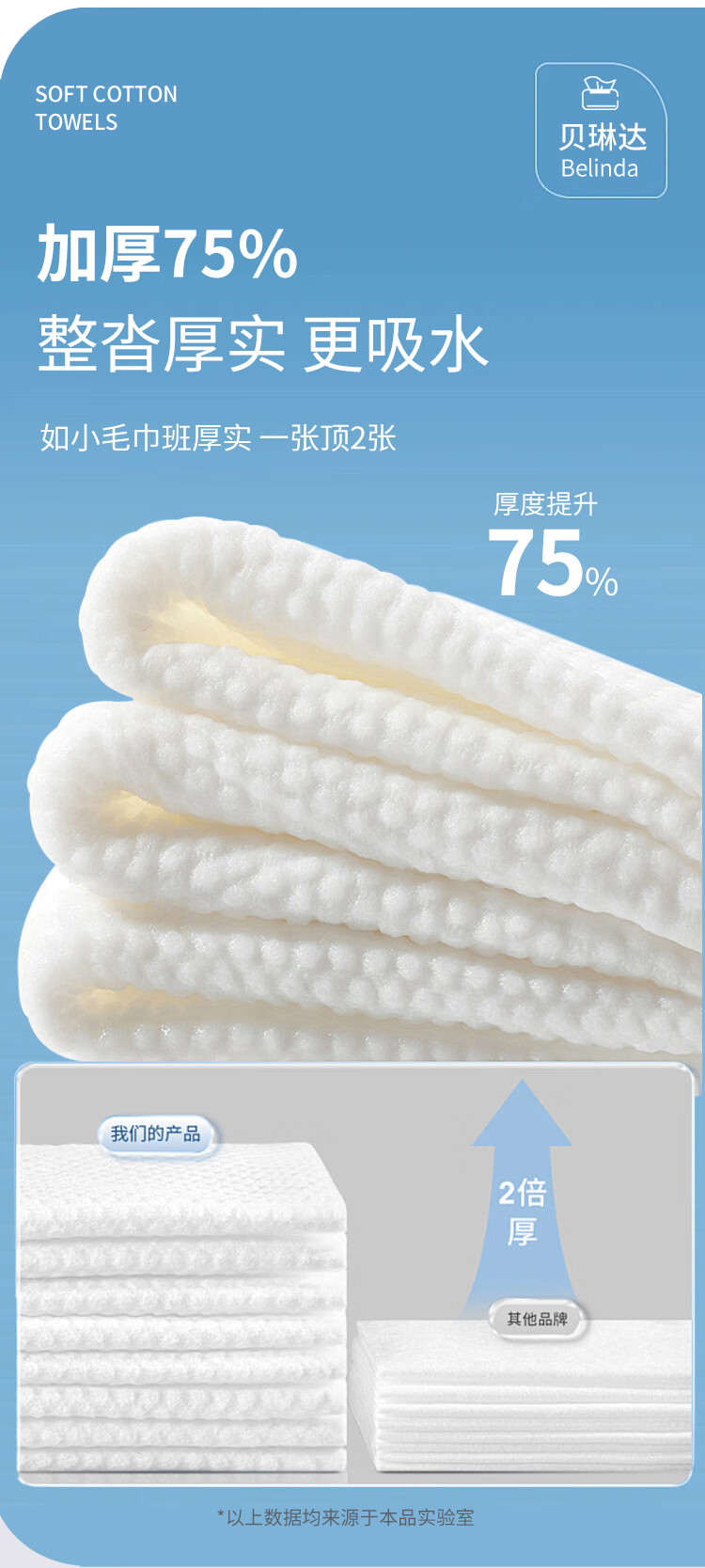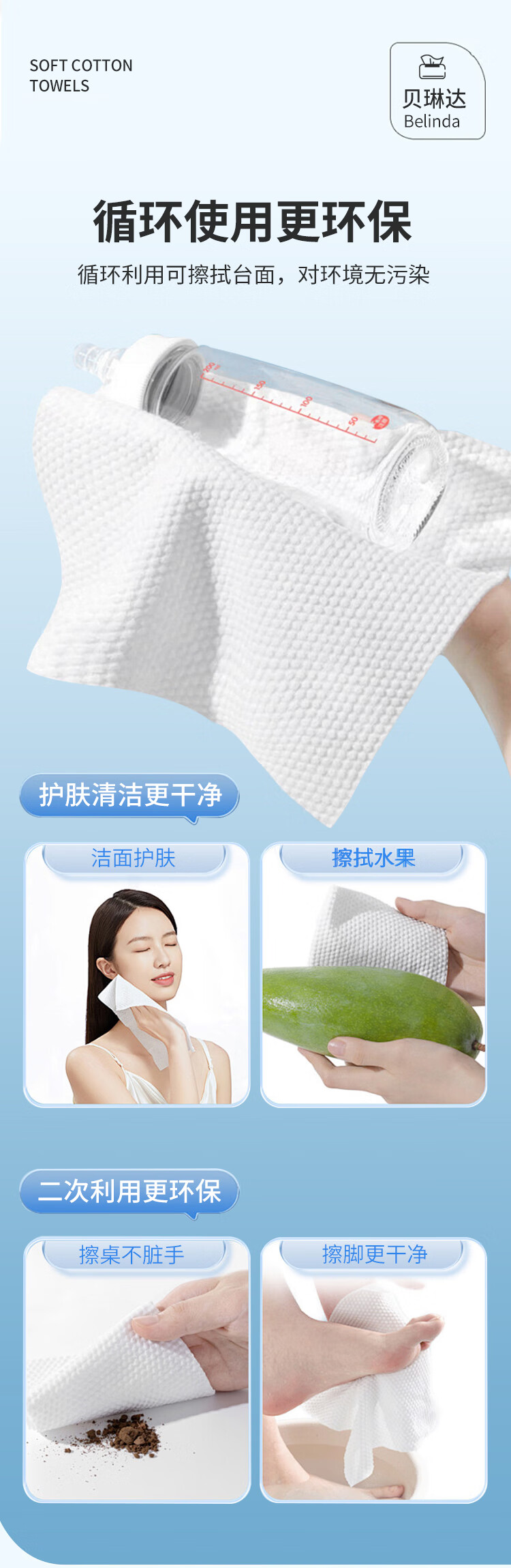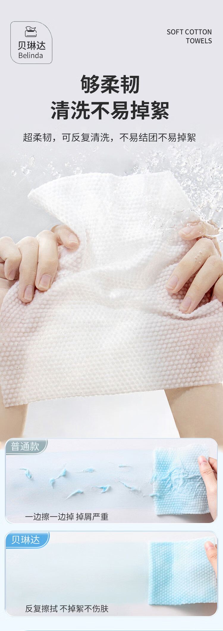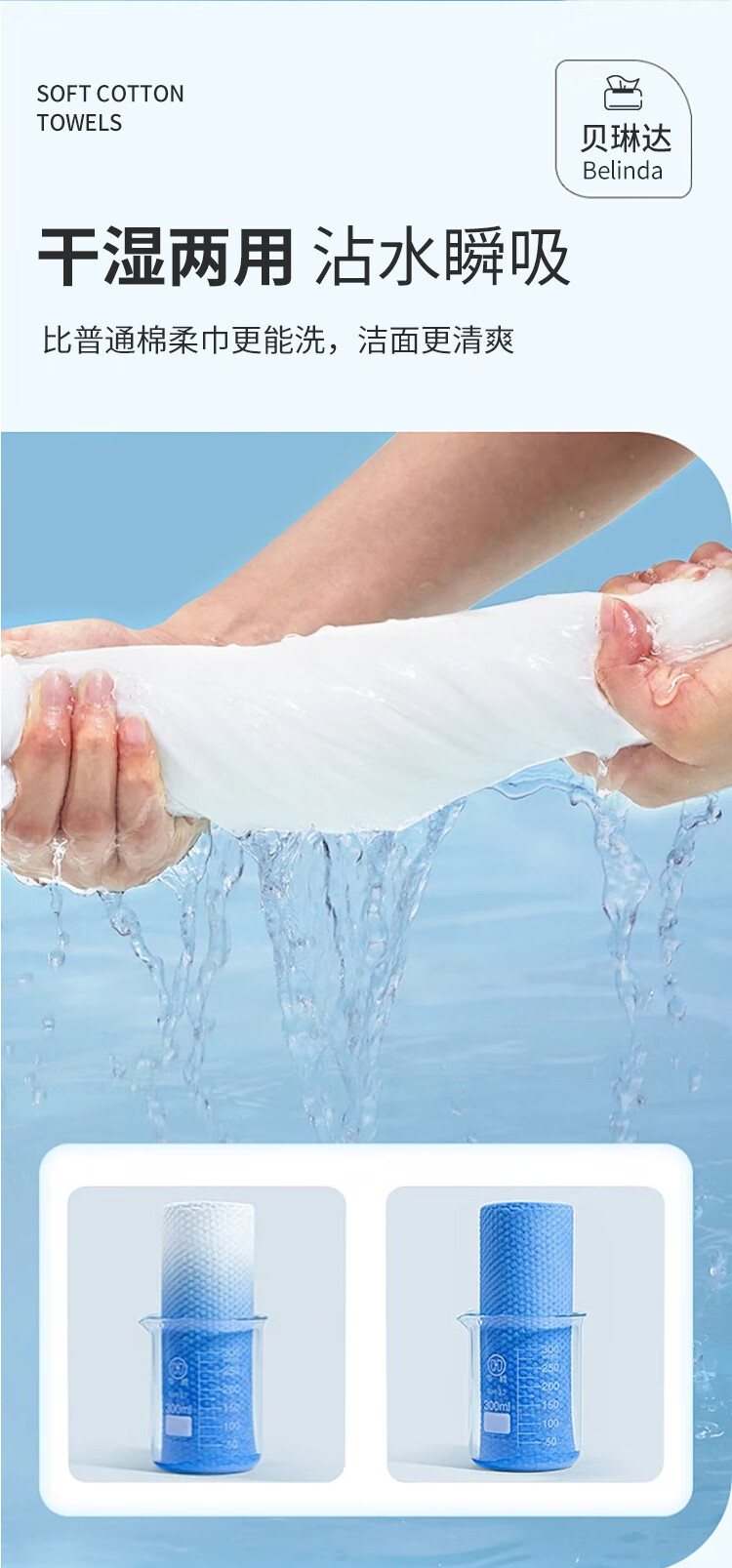 贝琳达洗脸巾抽取式一次性加大加厚洁面擦脸巾干湿两用绵柔巾20*18cm 亲肤洗脸巾40抽 6包