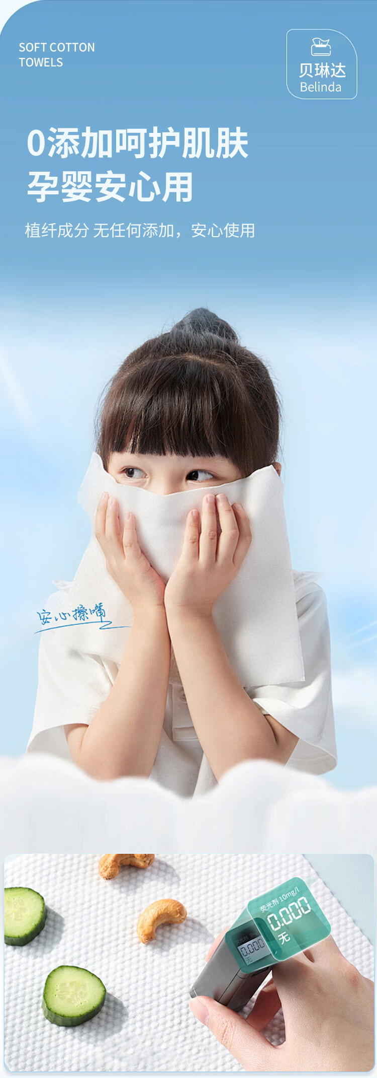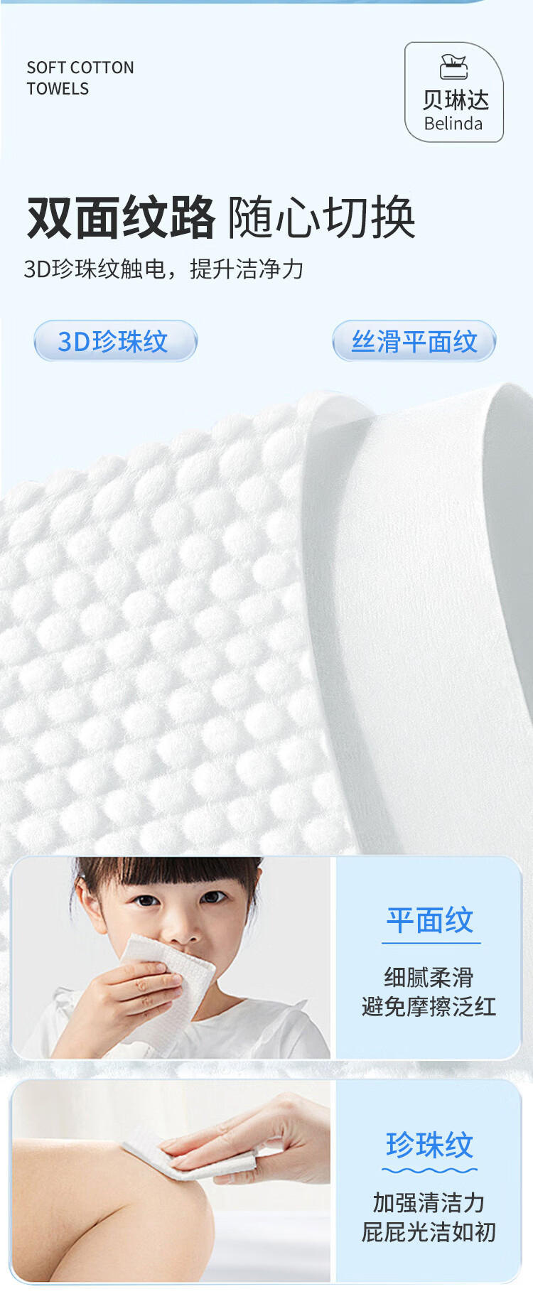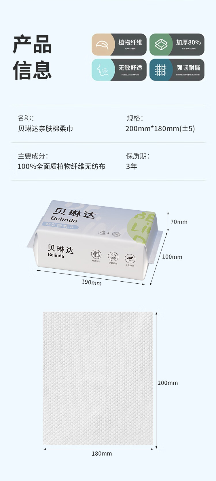贝琳达洗脸巾抽取式一次性加大加厚洁面擦脸巾干湿两用绵柔巾20*18cm 亲肤洗脸巾40抽 6包