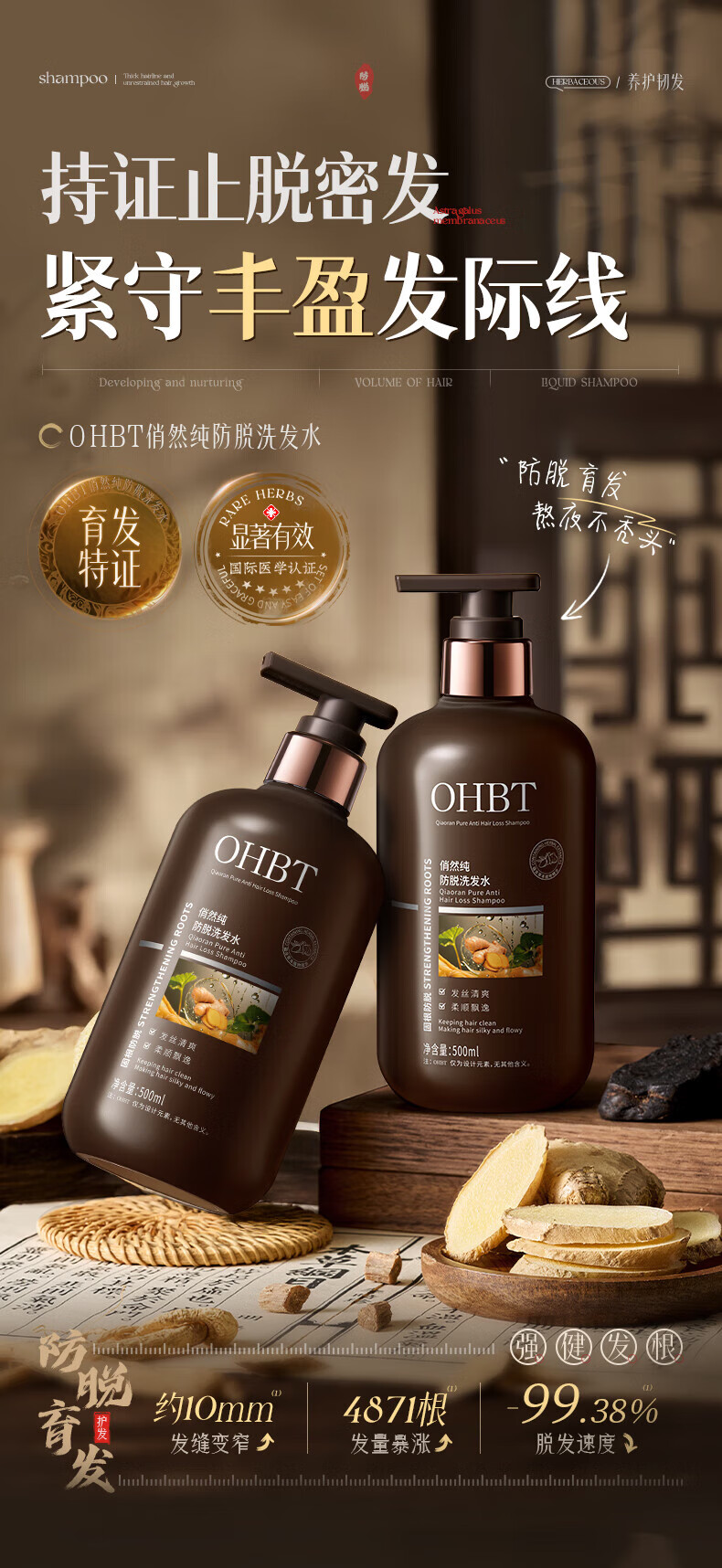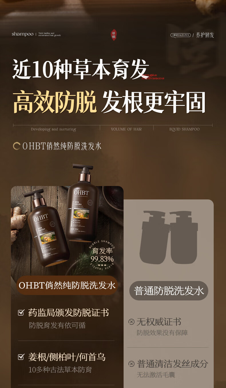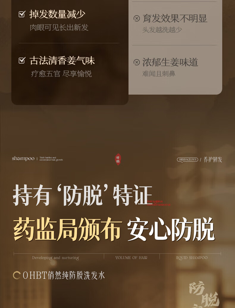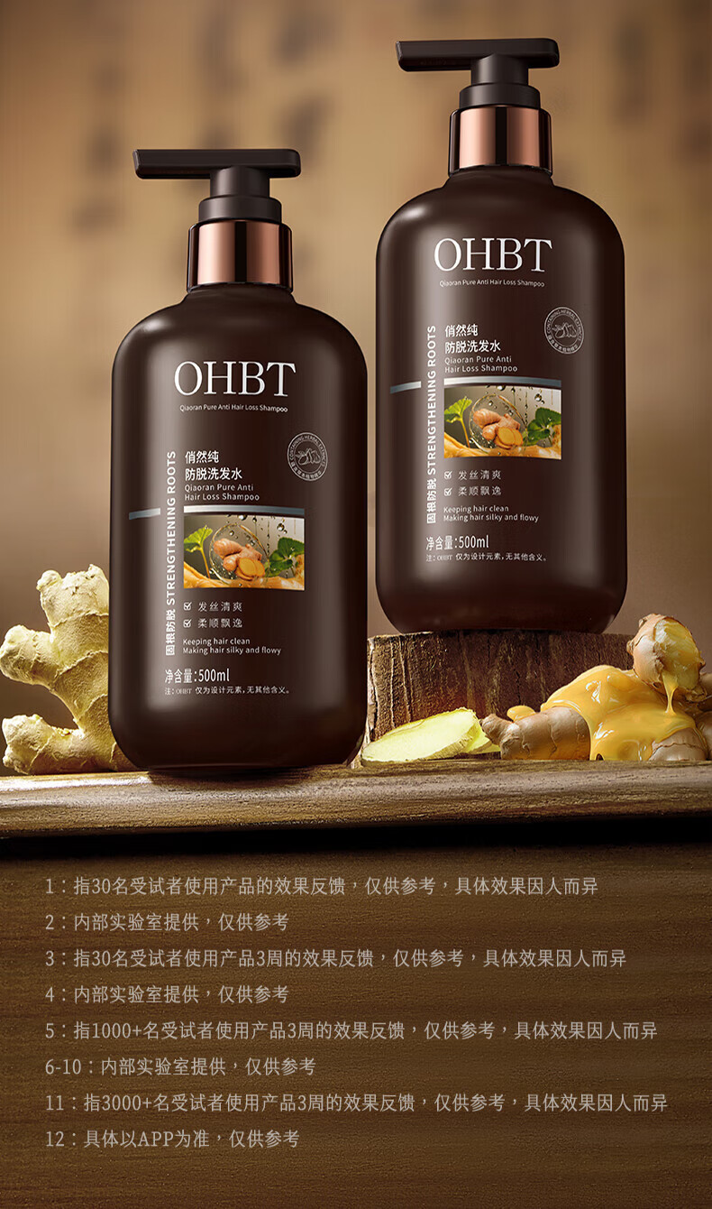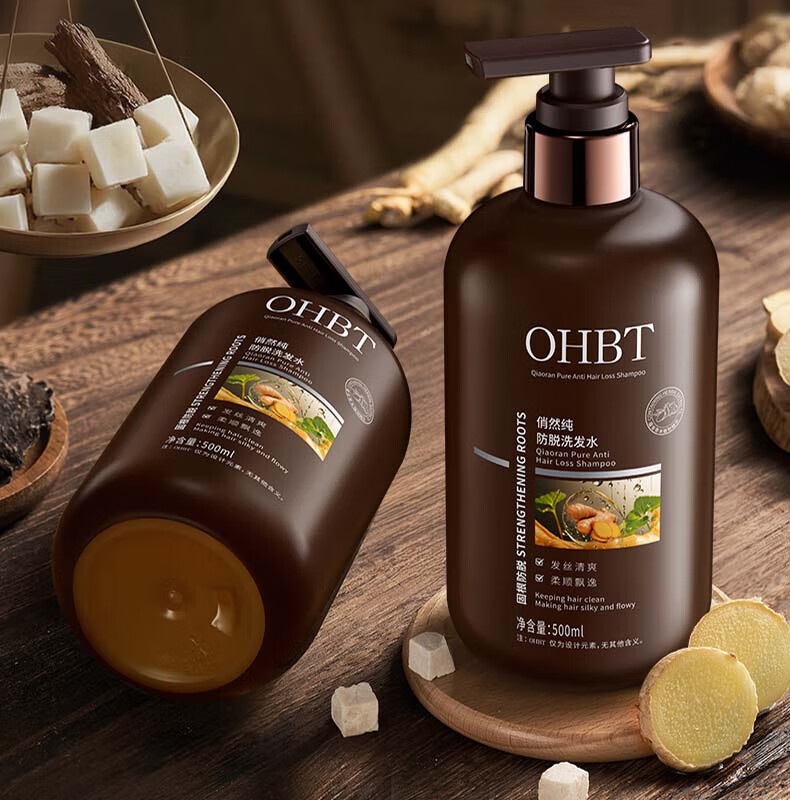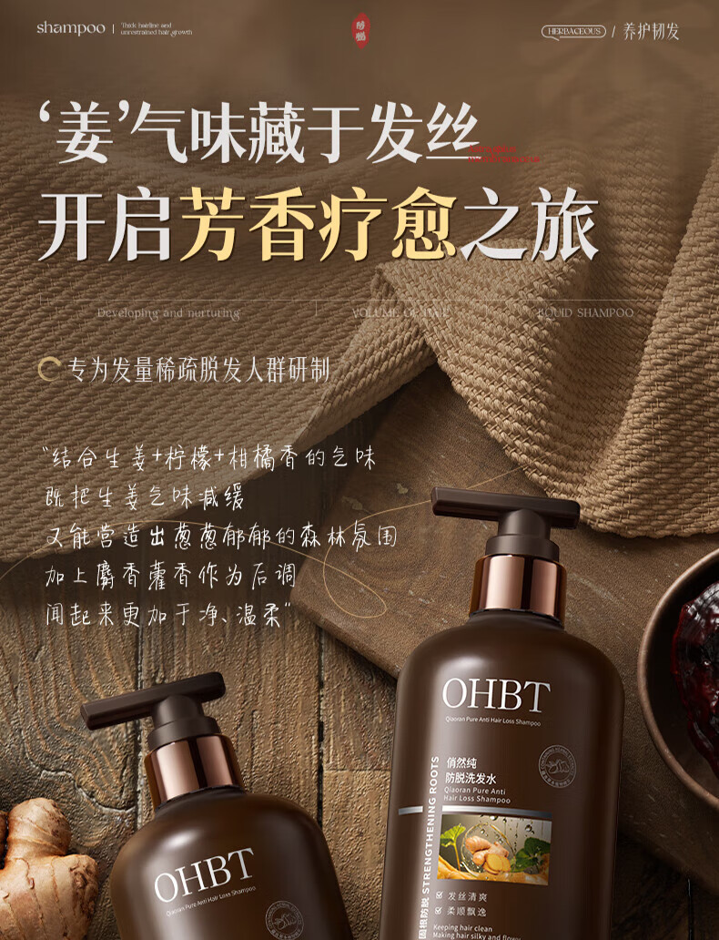 OHBT生姜防脱育发洗发水500ml固发增发密发侧柏叶洗头膏露男女金榜 红色