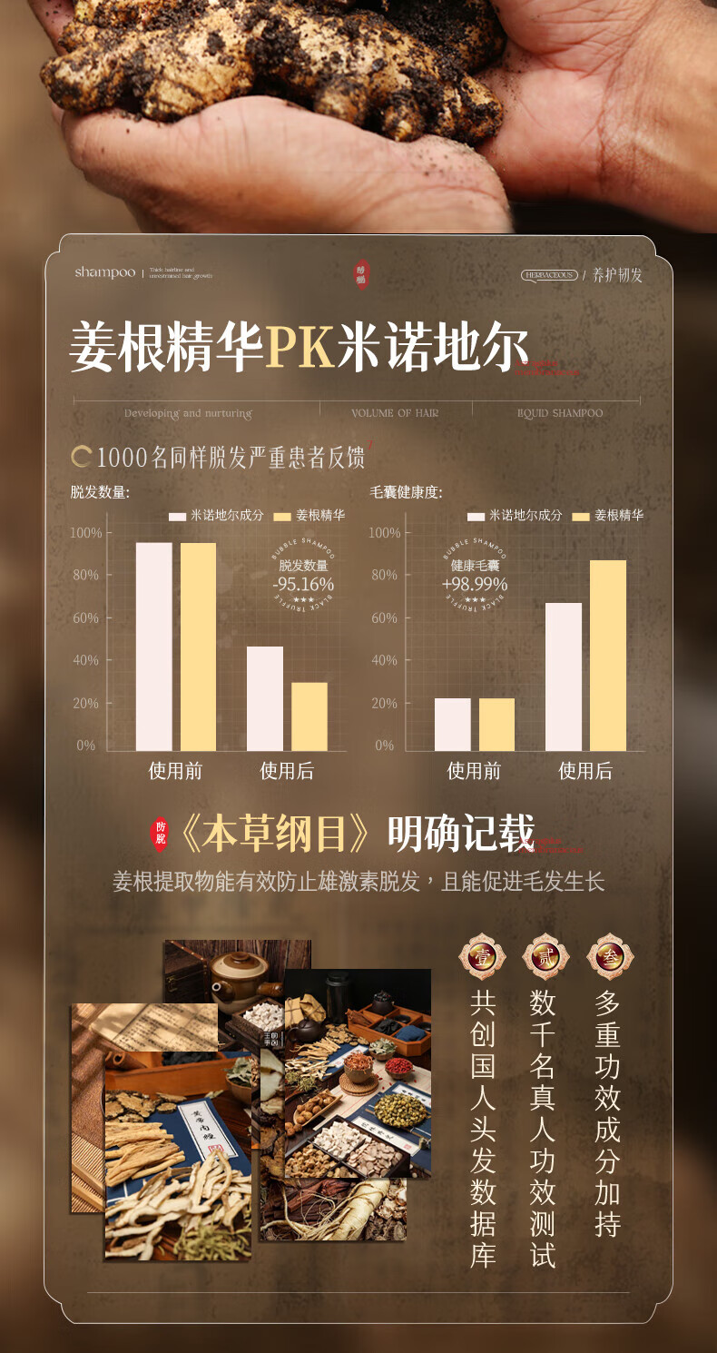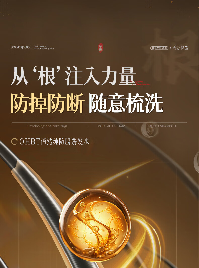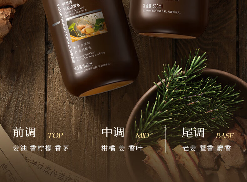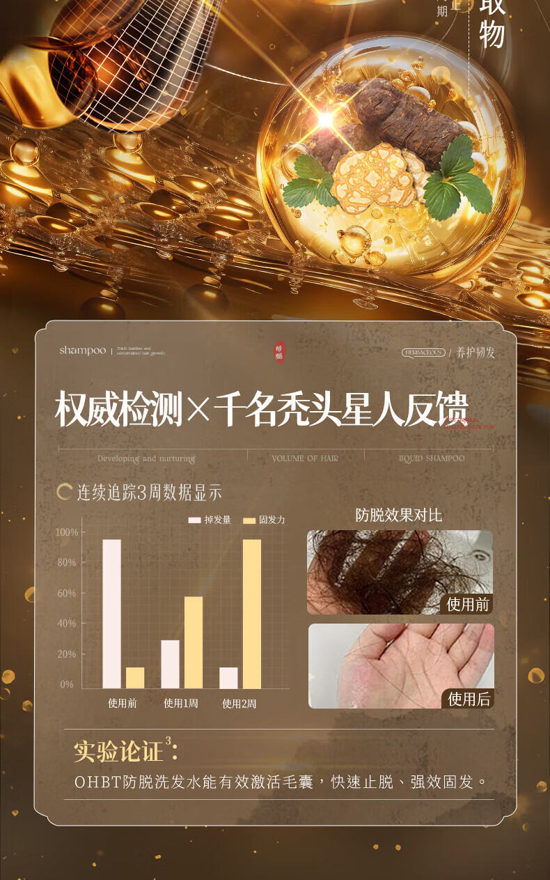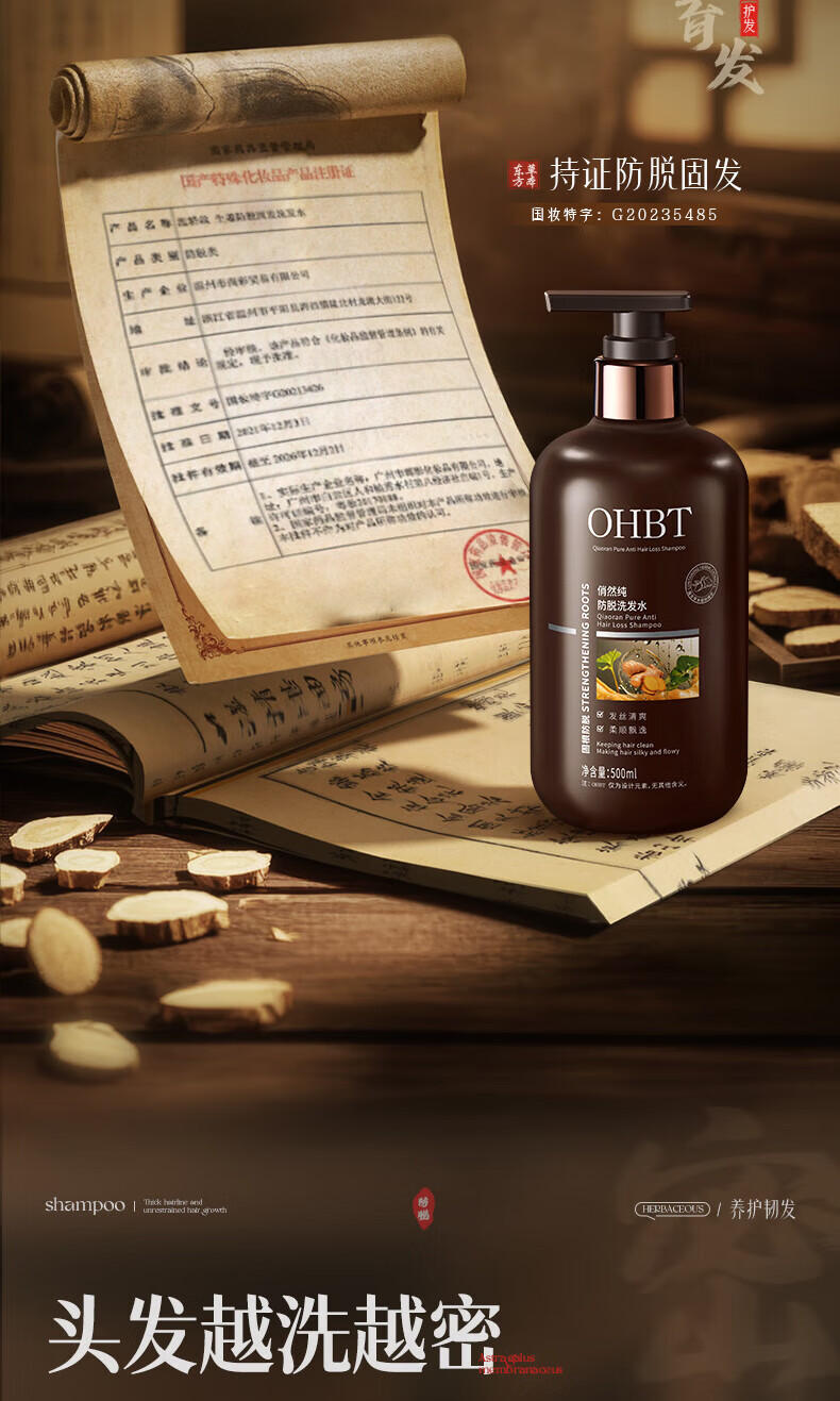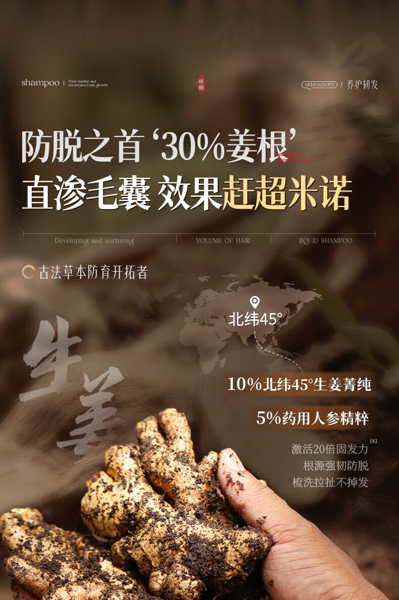 OHBT生姜防脱育发洗发水500ml固发增发密发侧柏叶洗头膏露男女金榜 红色