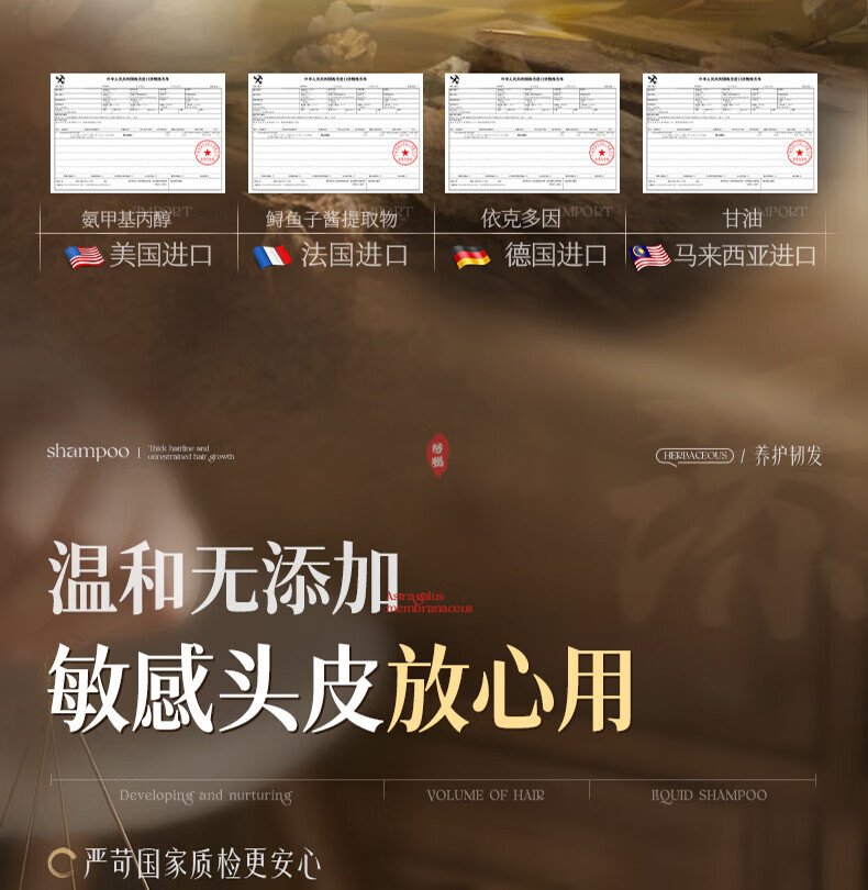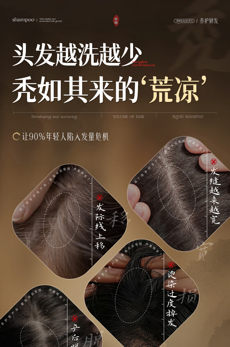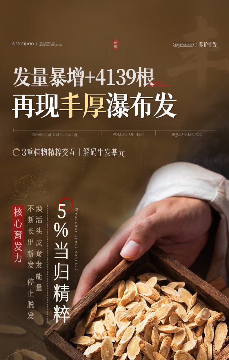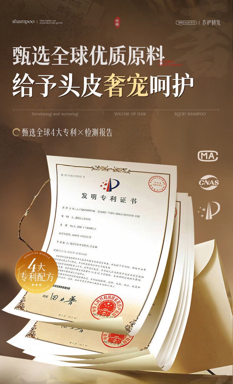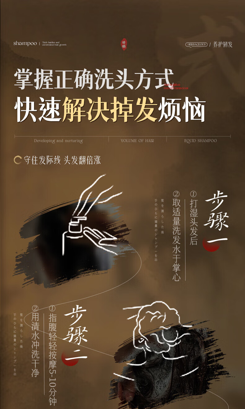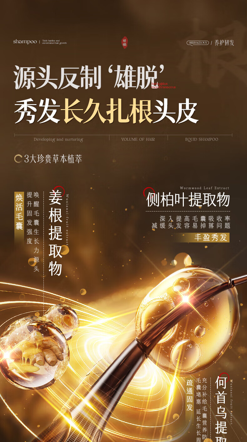 OHBT生姜防脱育发洗发水500ml固发增发密发侧柏叶洗头膏露男女金榜 红色