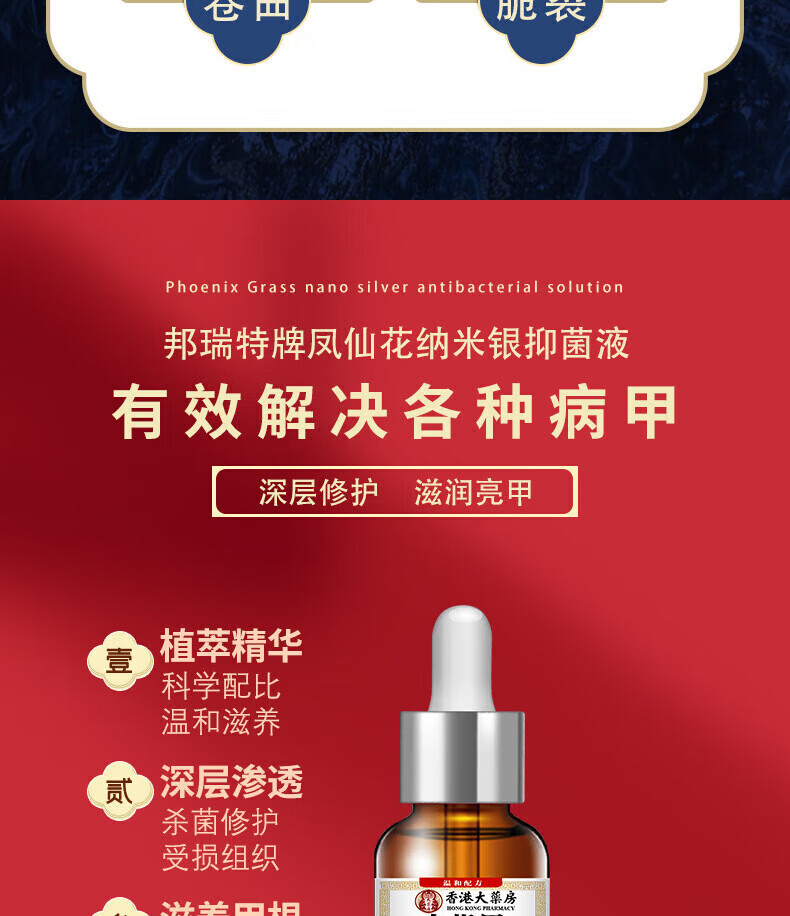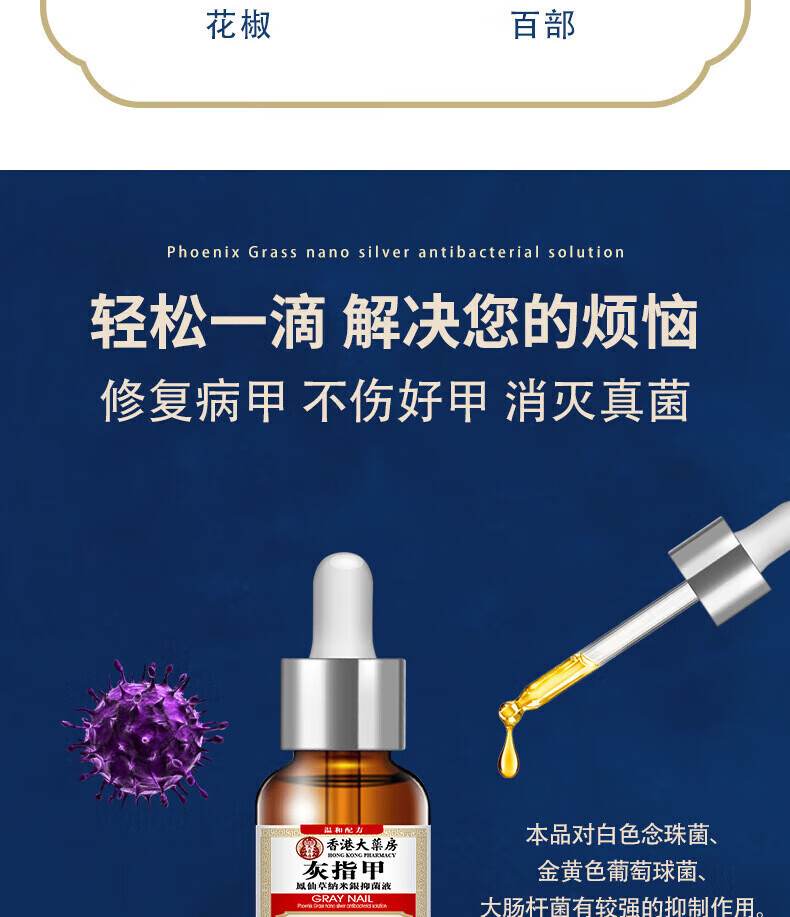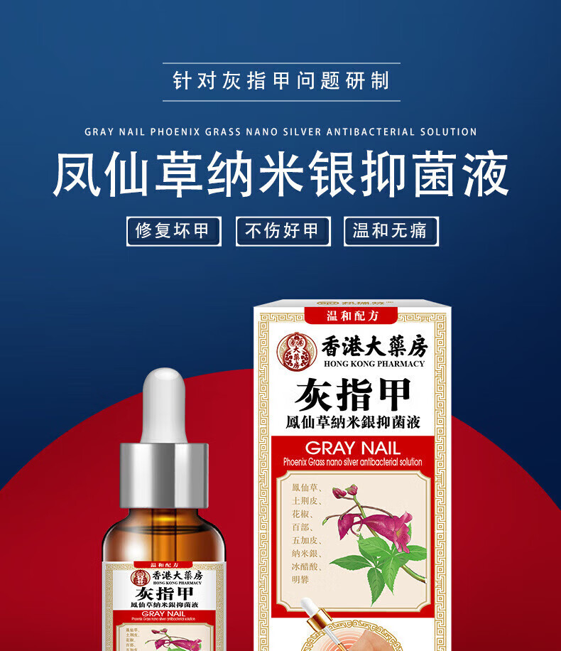 香港大药房灰指甲特傚效药第1名正品凤仙花指甲厚黄空真菌感染脱甲坏甲专用 一盒装【1-2个灰甲】