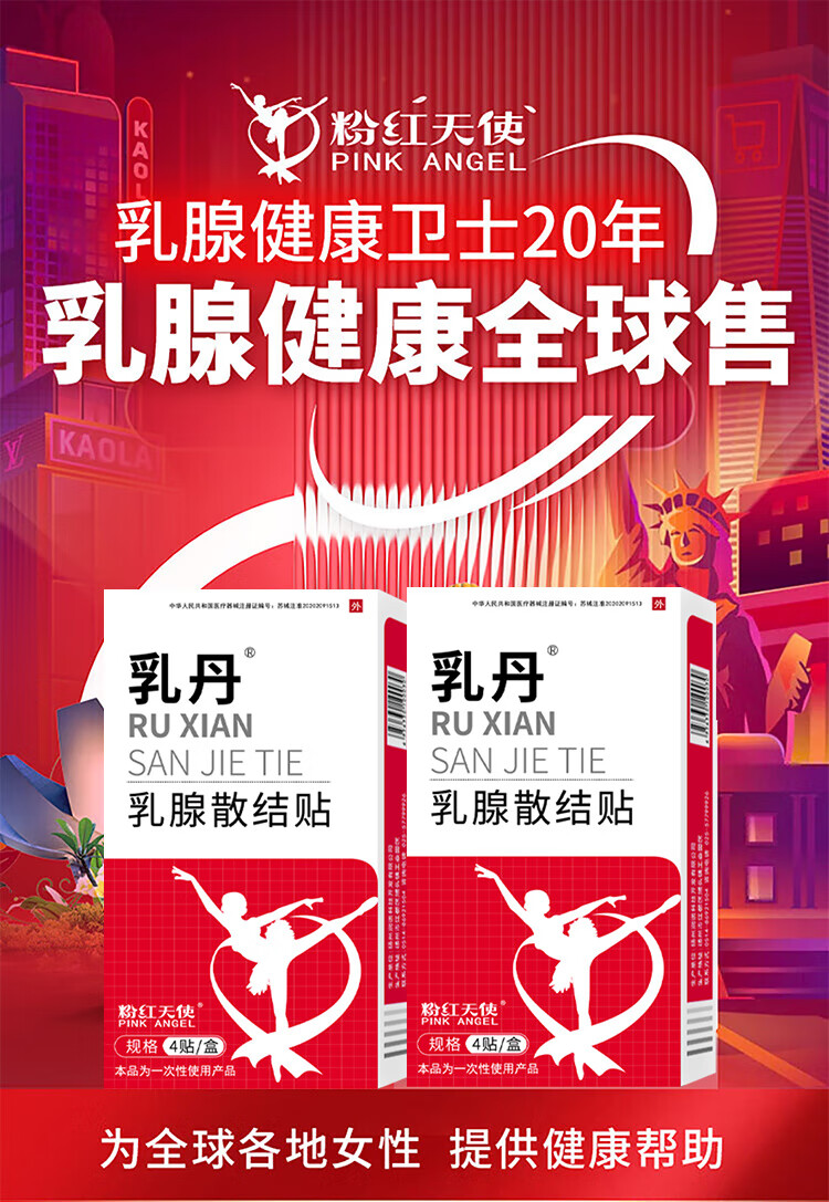 乳丹粉红天使丝带乳丹散结贴乳腺增生乳腺结节散结贴 4盒16贴