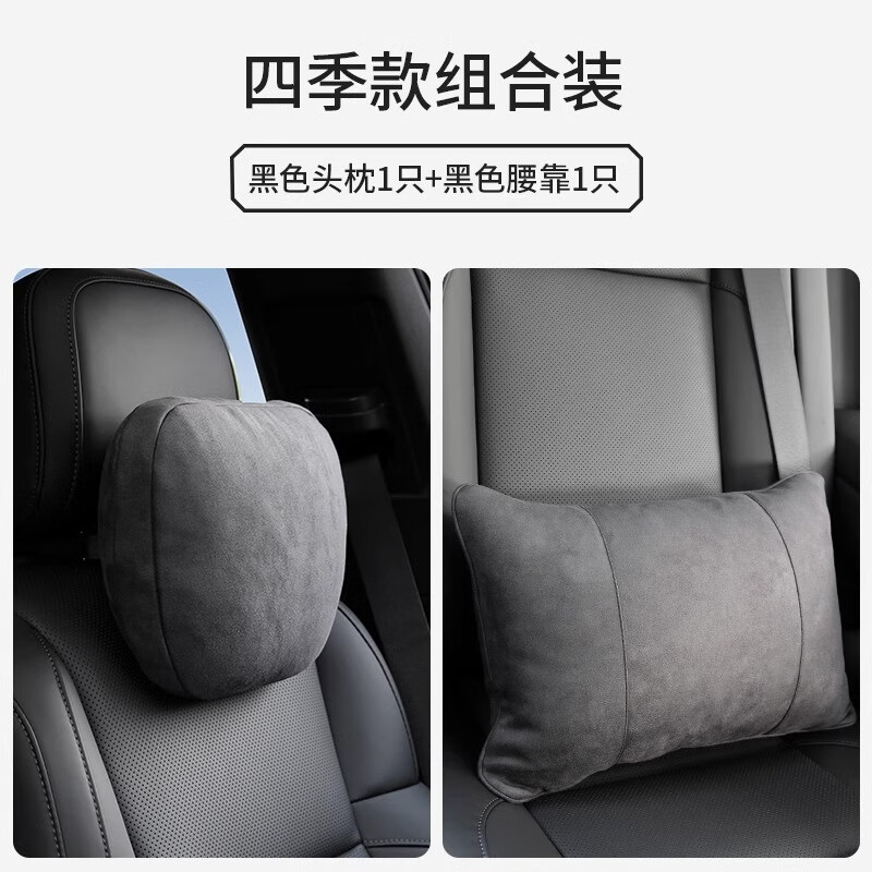 汽车头枕车用腰靠护颈护腰枕车载座椅靠垫车内睡觉枕头抱枕软通用 升级舒享头枕+腰靠 红色 1套