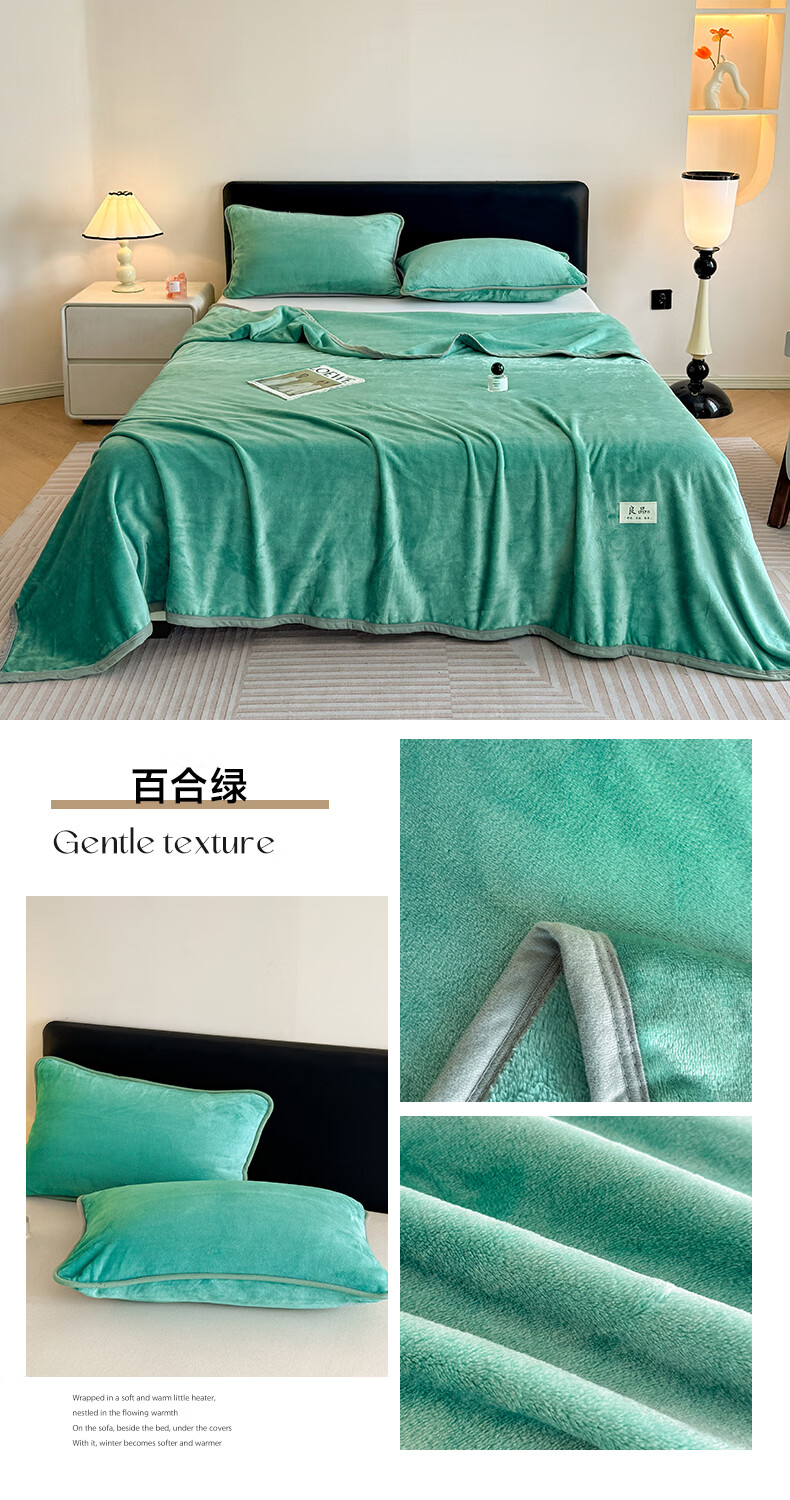 浪莎(langsha)A类牛奶绒毛毯单件冬季加绒加厚珊瑚绒毯子秋冬学生宿舍单人垫被 百合绿【A类品质 保暖加厚】 60cm*120cm