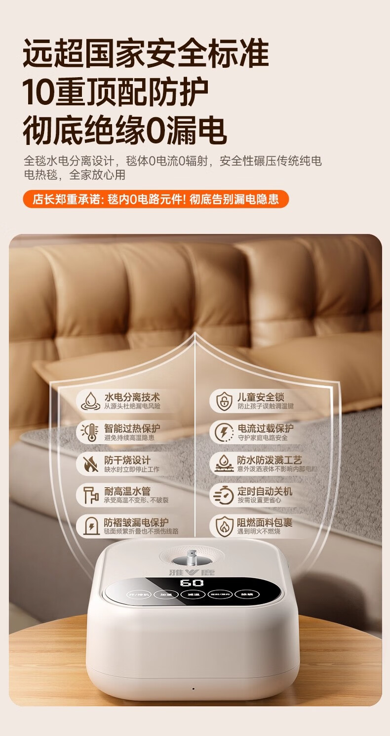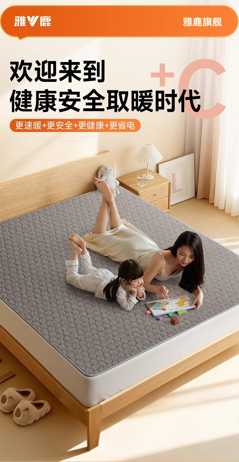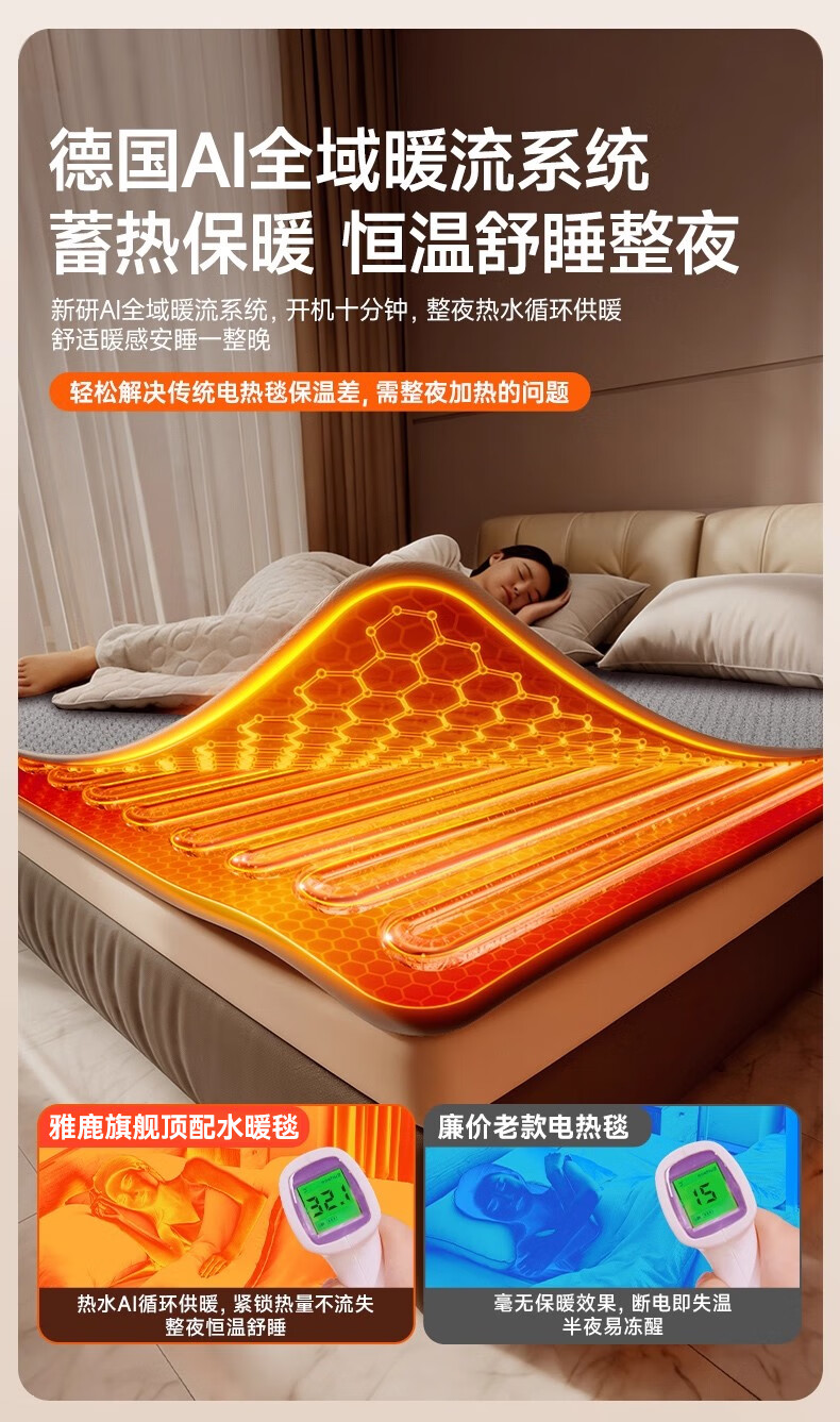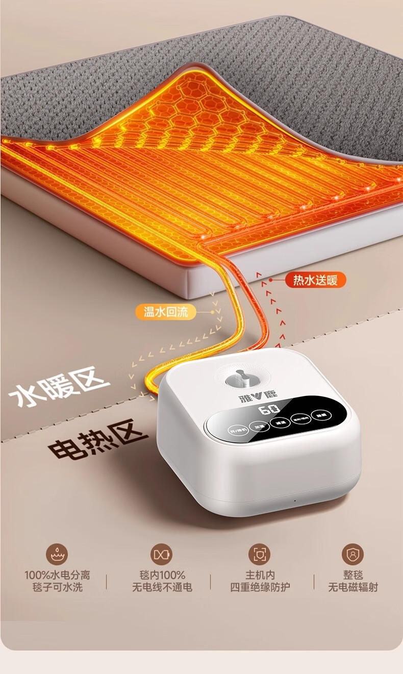 雅鹿【静音王】水暖电热毯水暖毯单双人水循环电褥子炕家用恒温不上火 双层涤棉【180*90】MAX热循环丨1秒升温