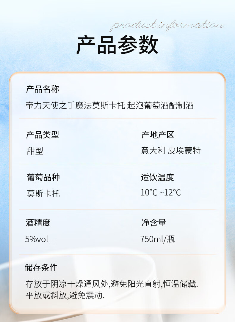 帝力(DILE)意大利 天使之手 魔法甜白 莫斯卡托起泡酒配制酒750ml*1热门商品