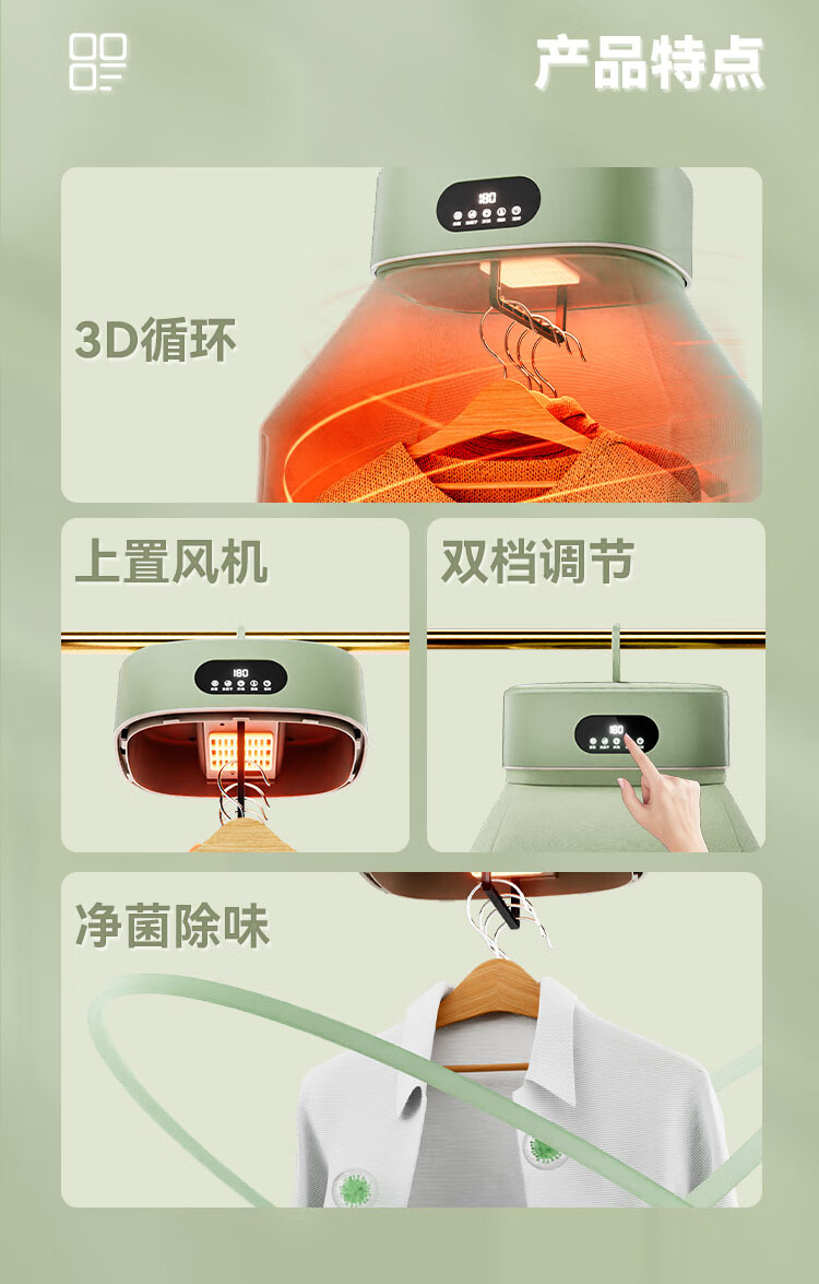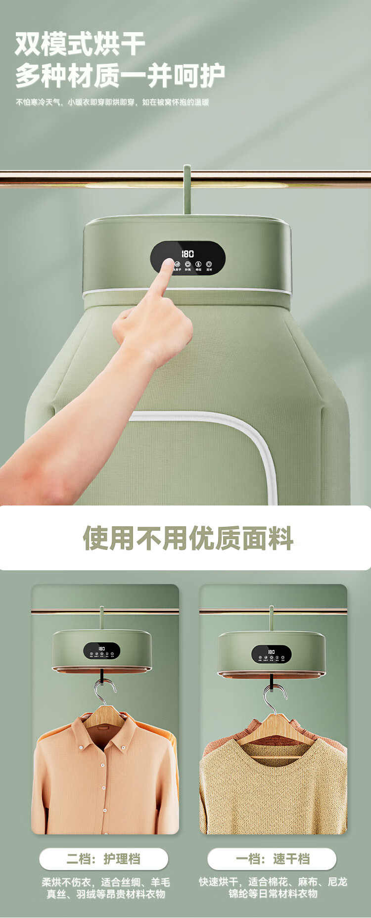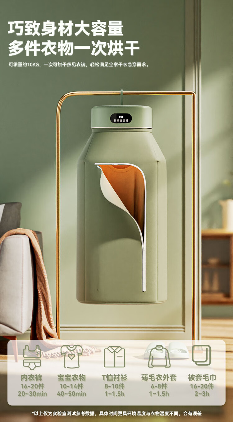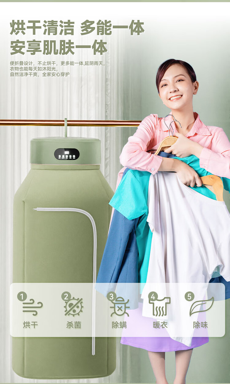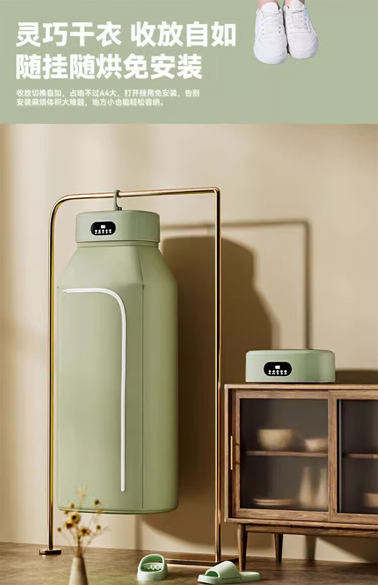 筏芯德国烘干机家用干衣机速干衣宿舍小型旅行可折叠便携式杀菌烘干器 至尊升级除菌除螨款+浅绿色 1L