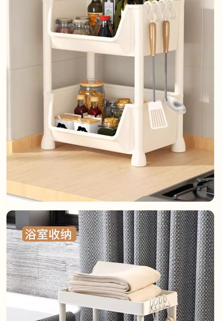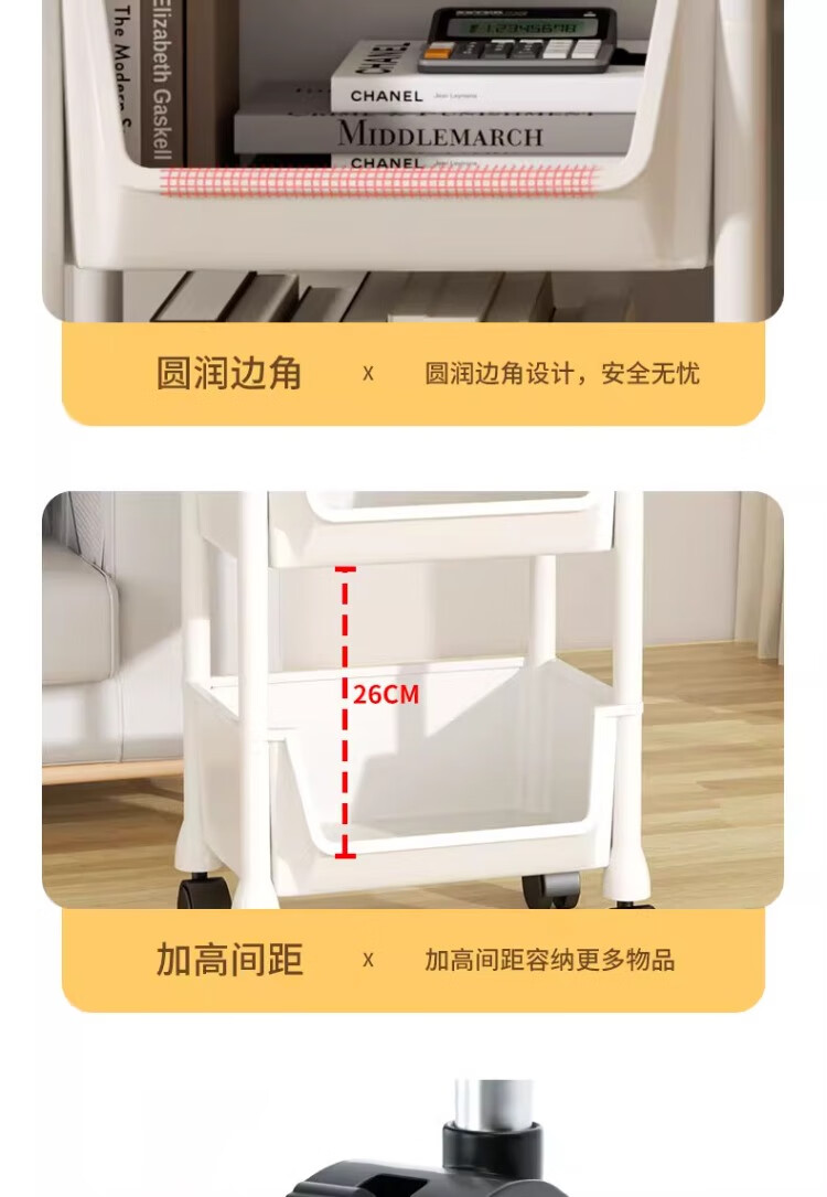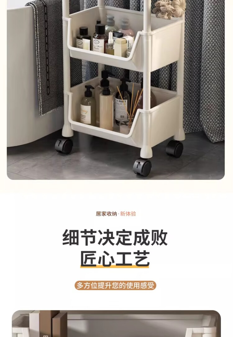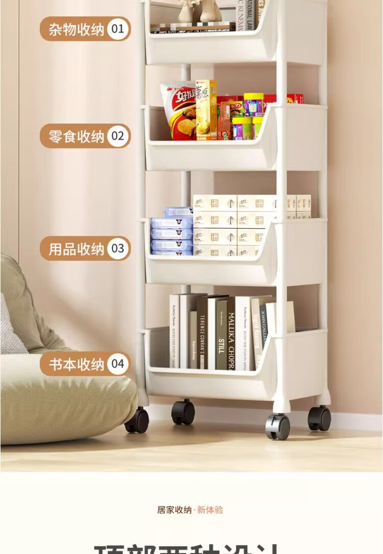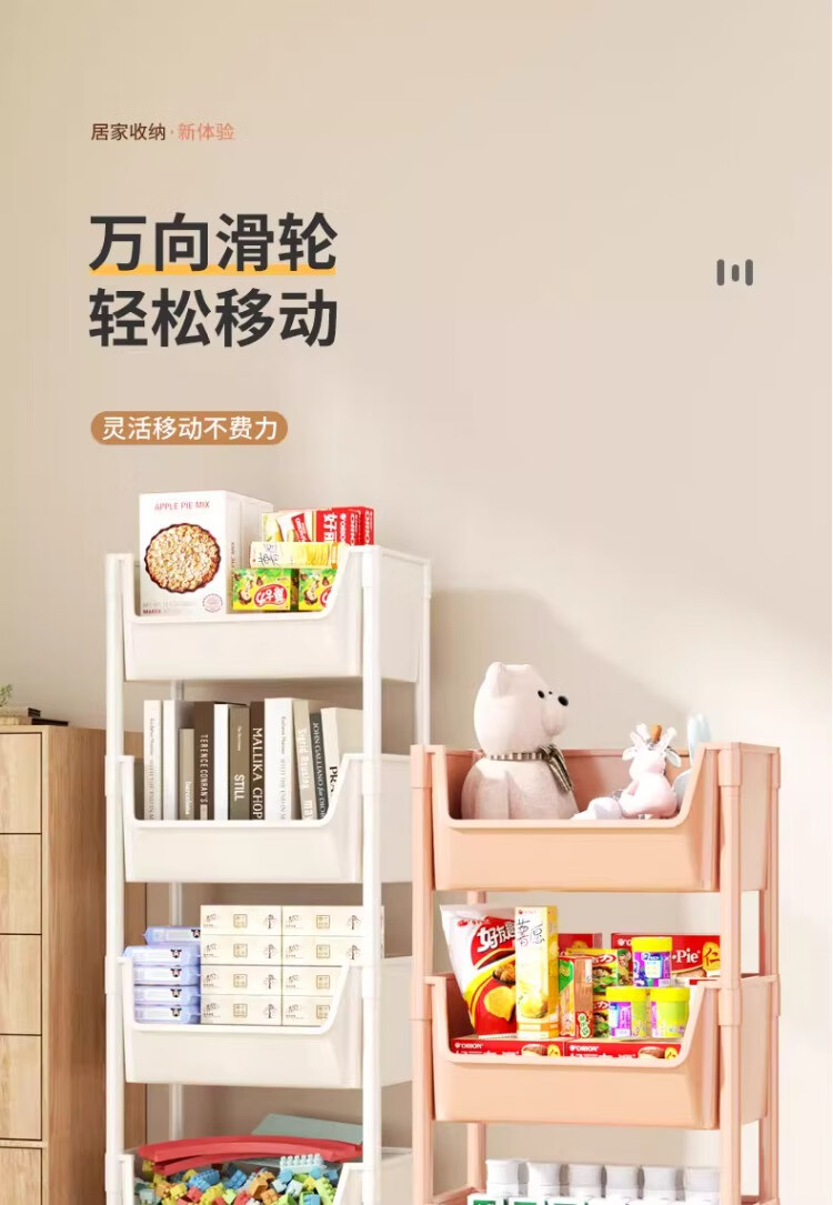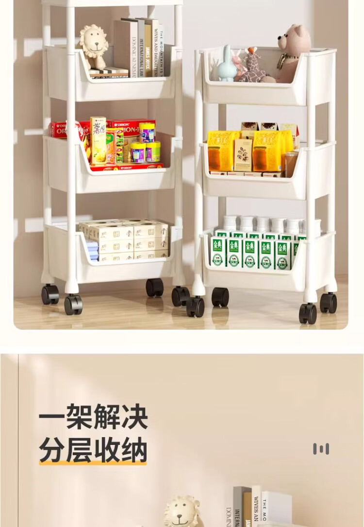 衣炫小推车置物架家用零食落地文件客厅收纳书包移动厨房果蔬菜篮架子 【升级款-米色】2层平顶(无轮) 稳定不晃
