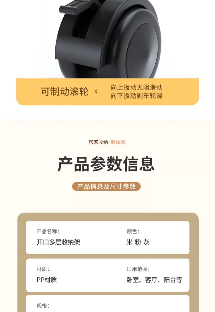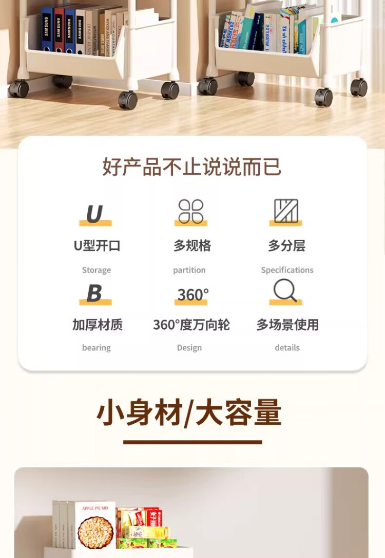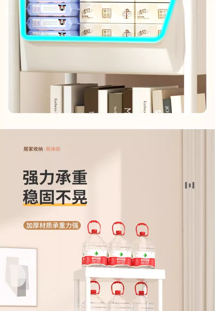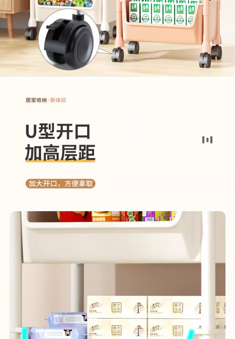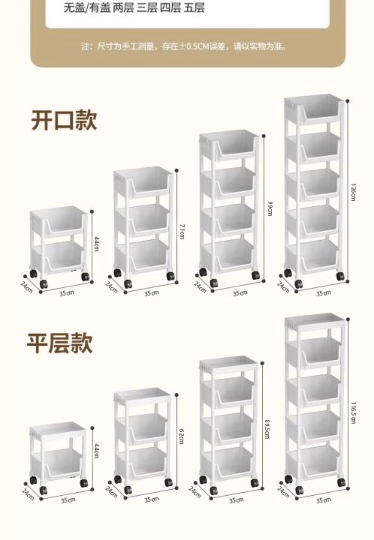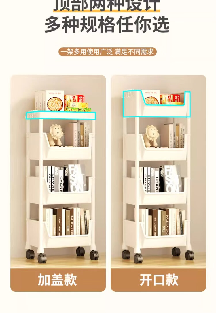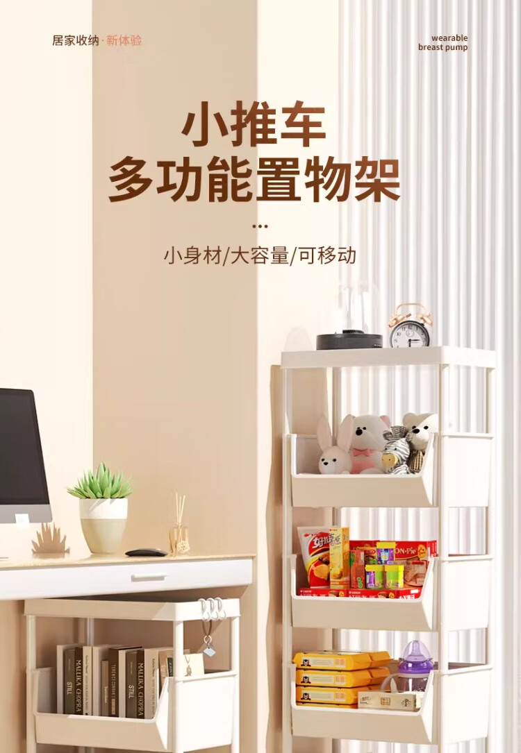 衣炫小推车置物架家用零食落地文件客厅收纳书包移动厨房果蔬菜篮架子 【升级款-米色】2层平顶(无轮) 稳定不晃