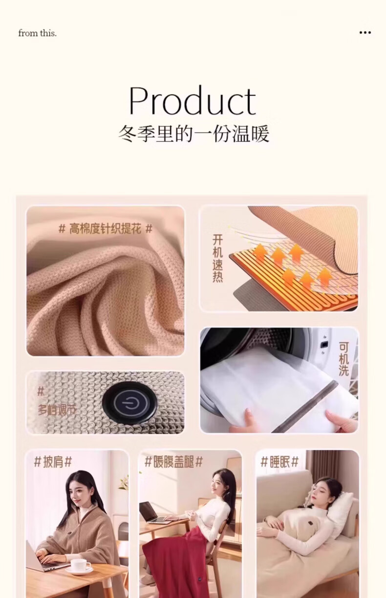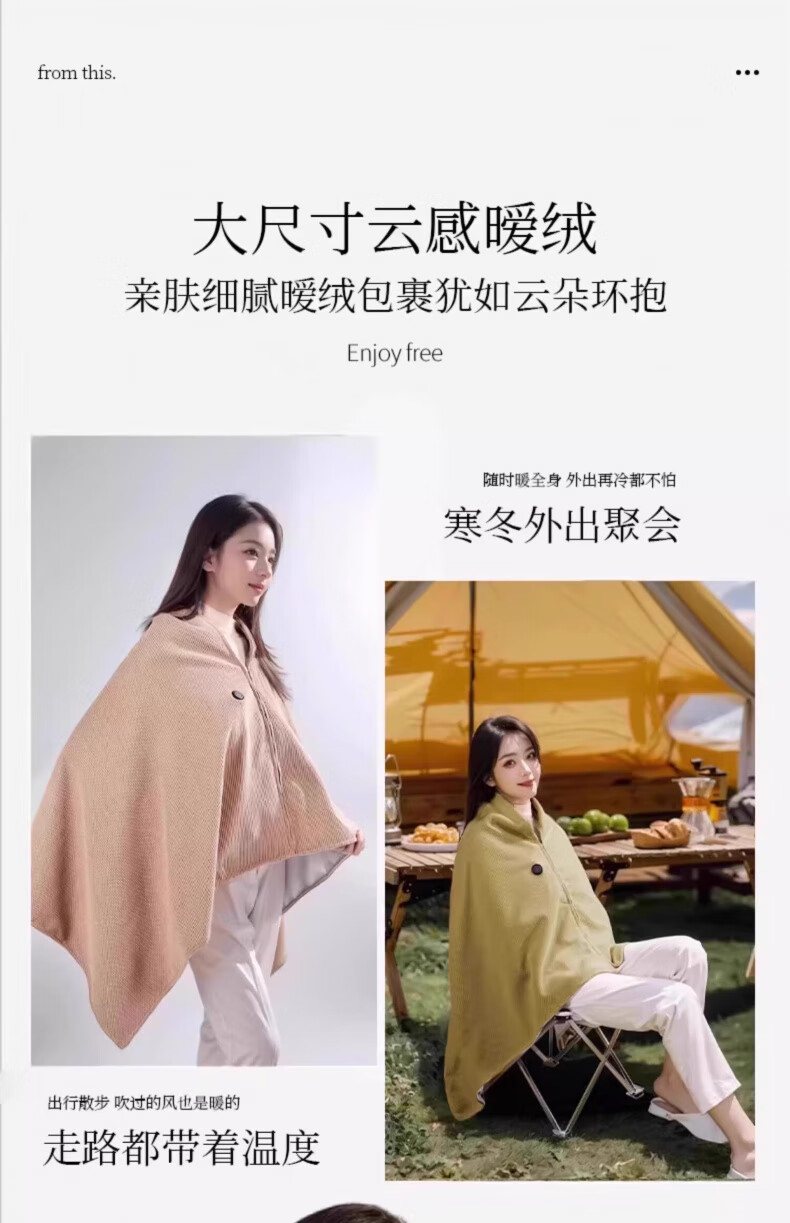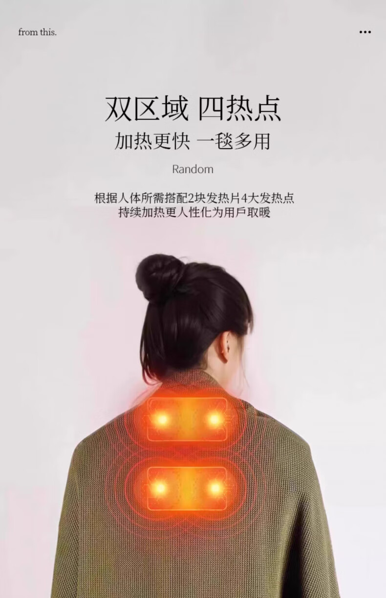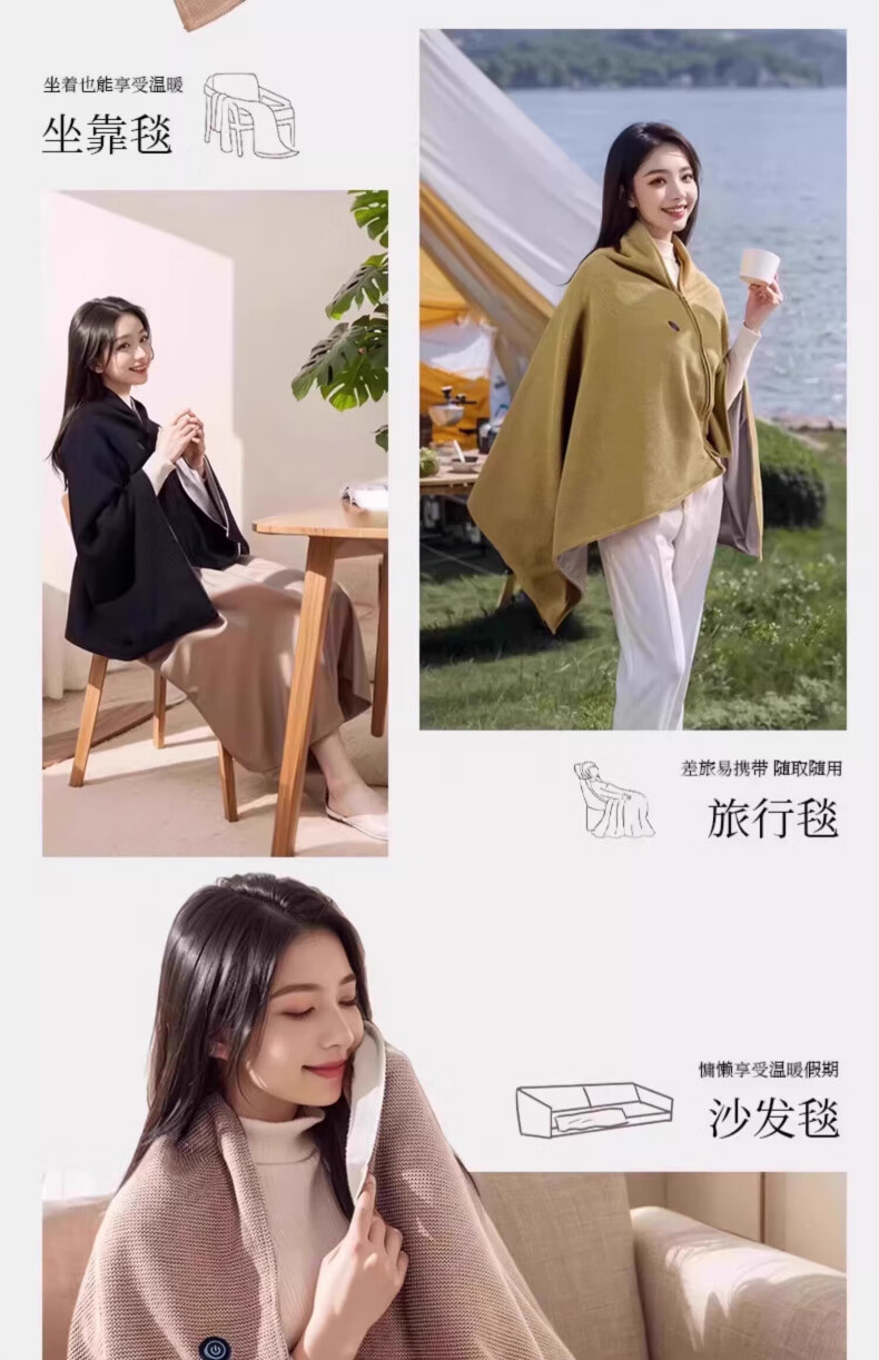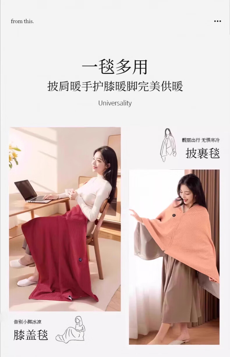 AILUKI日本电热暖身毯发热披肩USB可水洗盖腿披肩单人办公室午睡毛毯 团购