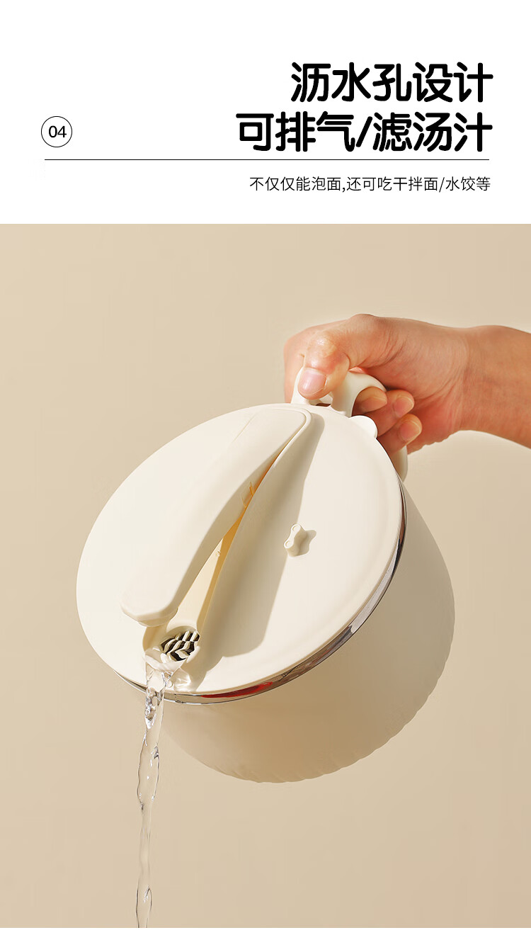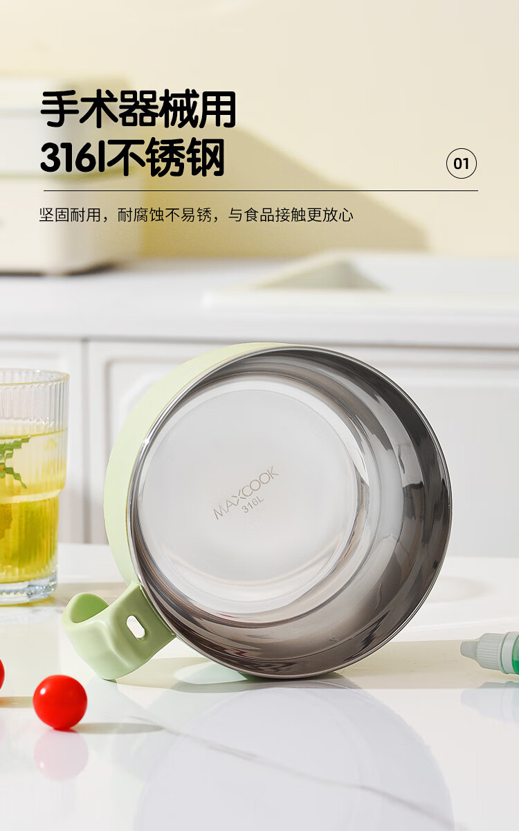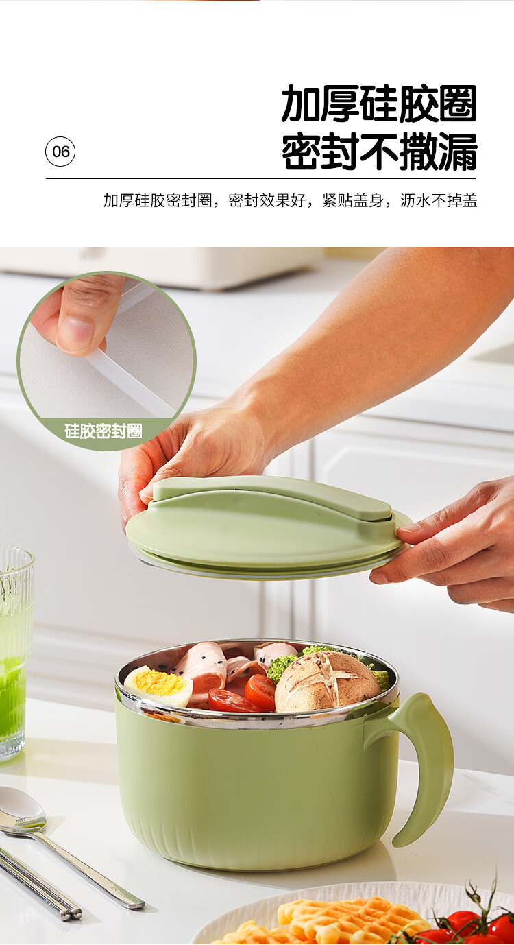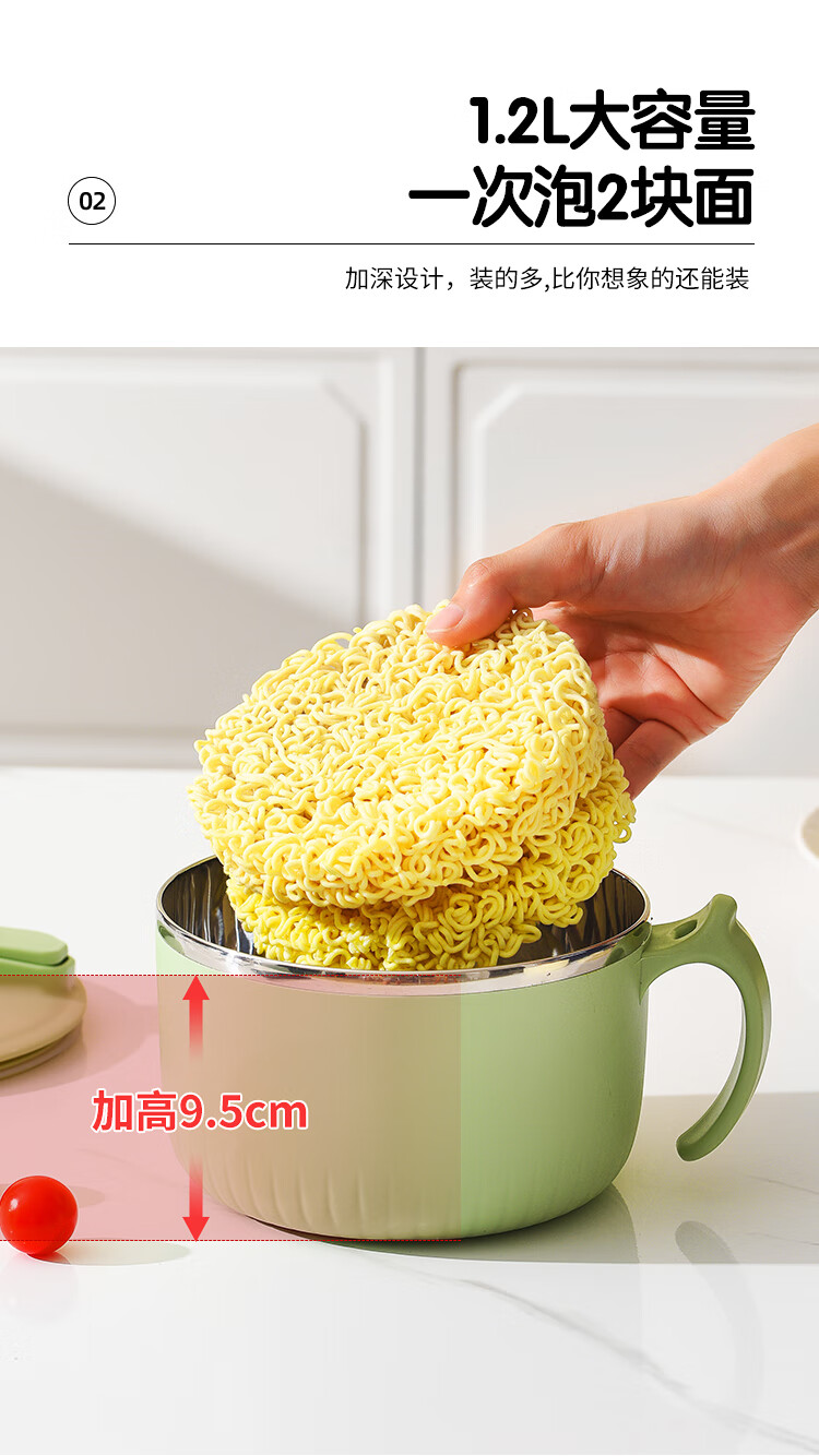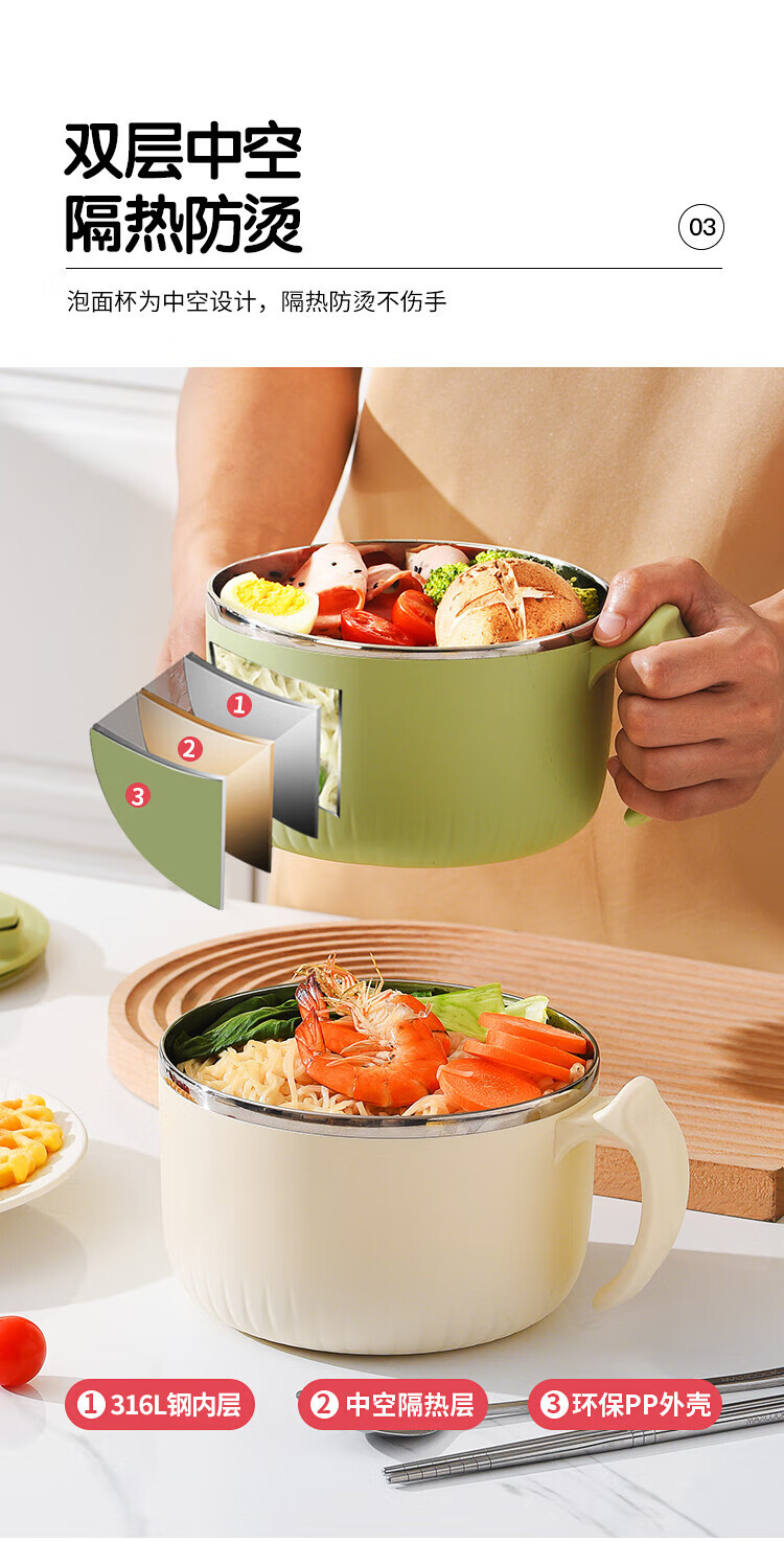 美厨(MAXCOOK)316L不锈钢泡面碗 学生饭盒餐杯泡面杯1200ML 配筷勺 白MCWA9683
