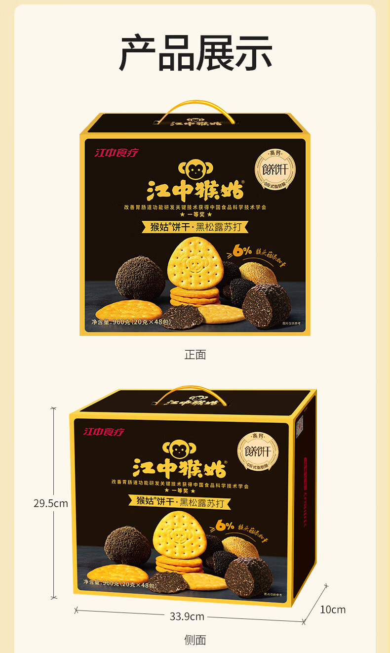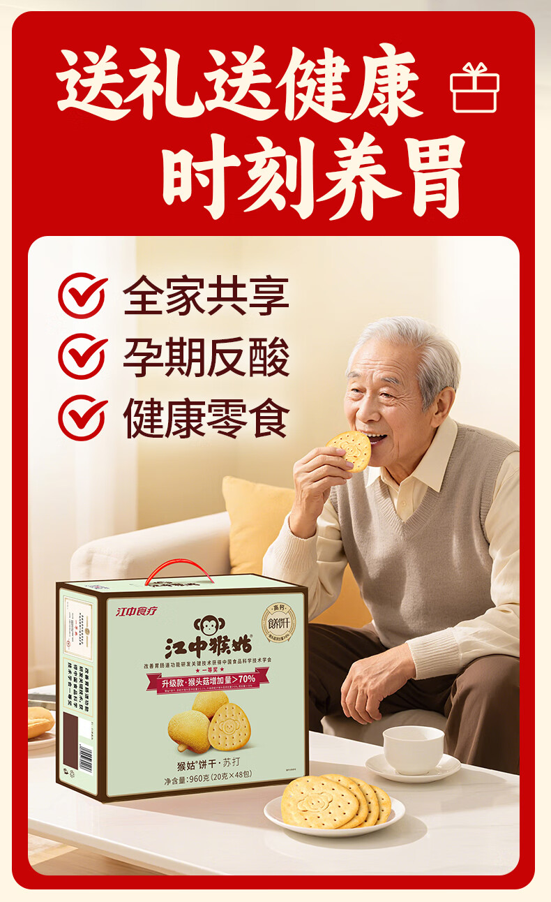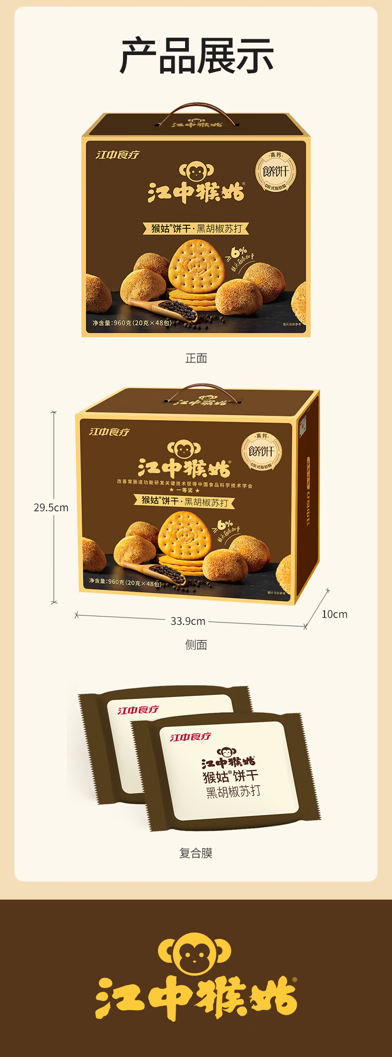 江中猴姑苏打饼干咸味碱性养胃零食猴头菇胃反酸孕产妇儿童健康早餐送礼盒 黑胡椒苏打饼干 960g*1盒