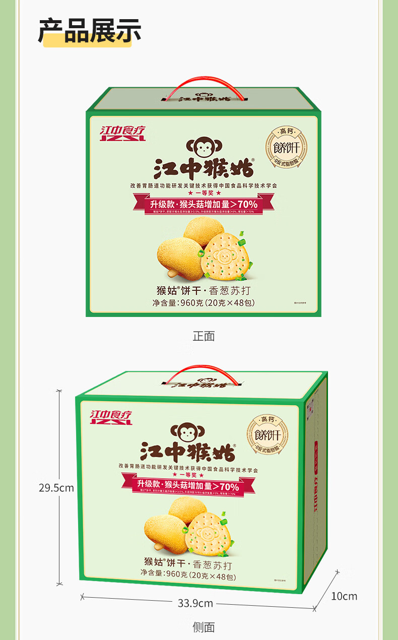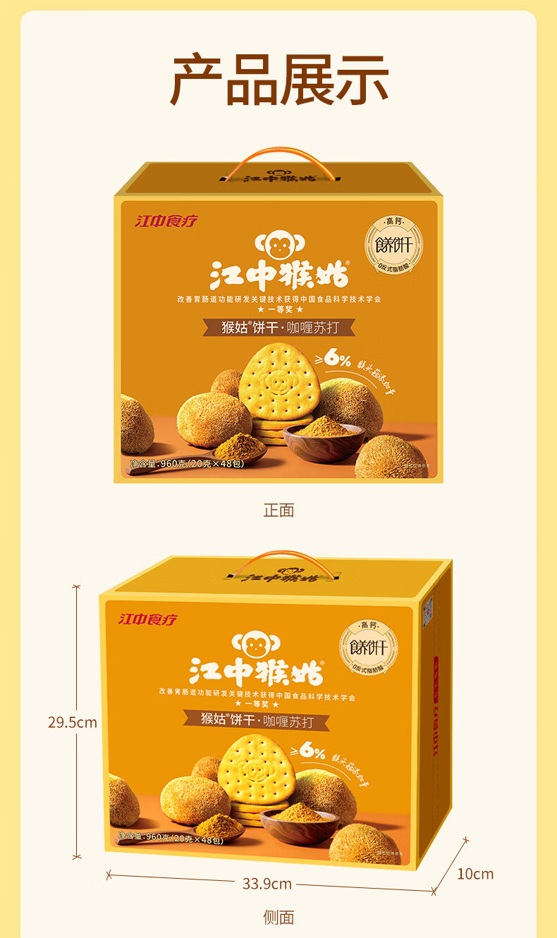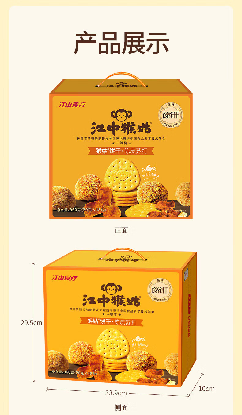 江中猴姑苏打饼干咸味碱性养胃零食猴头菇胃反酸孕产妇儿童健康早餐送礼盒 黑胡椒苏打饼干 960g*1盒
