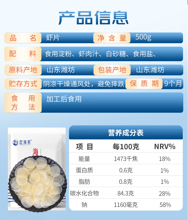 赶海弟 虾片500g 油炸大虾片 自己炸龙虾片 原味生虾片饼 休闲零食 怀旧