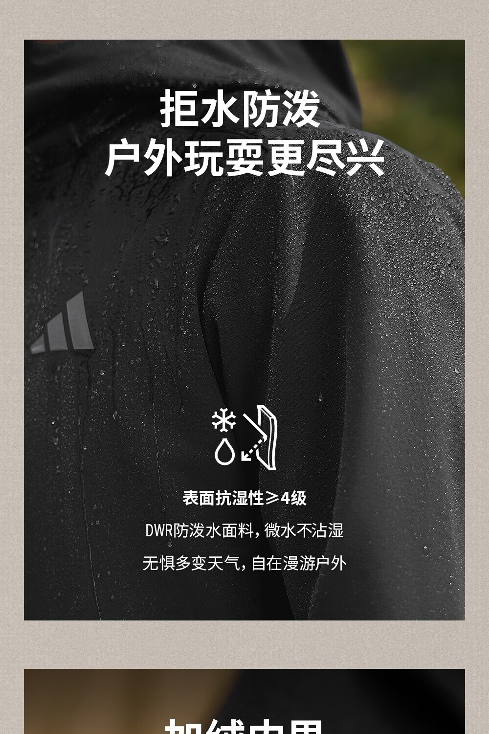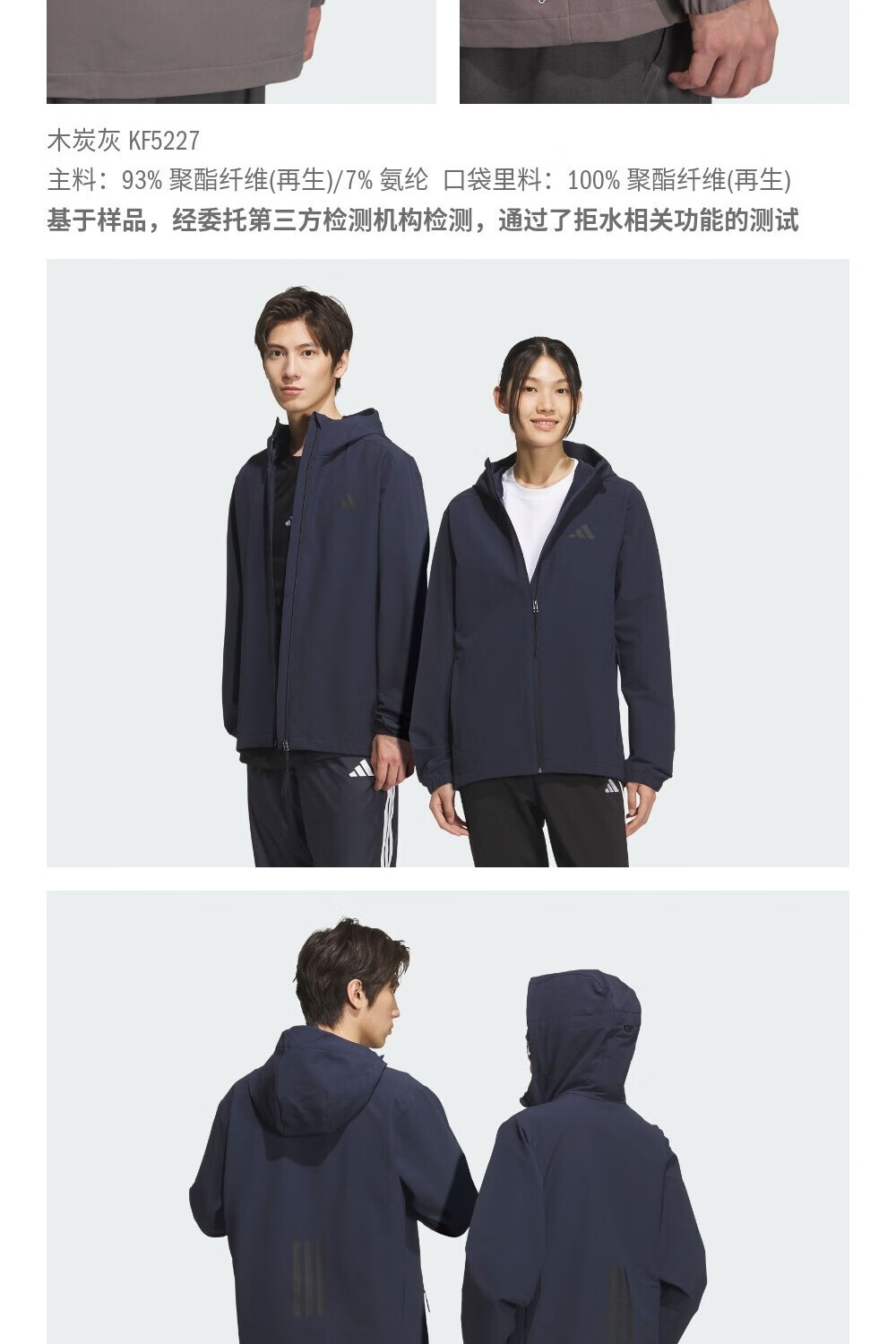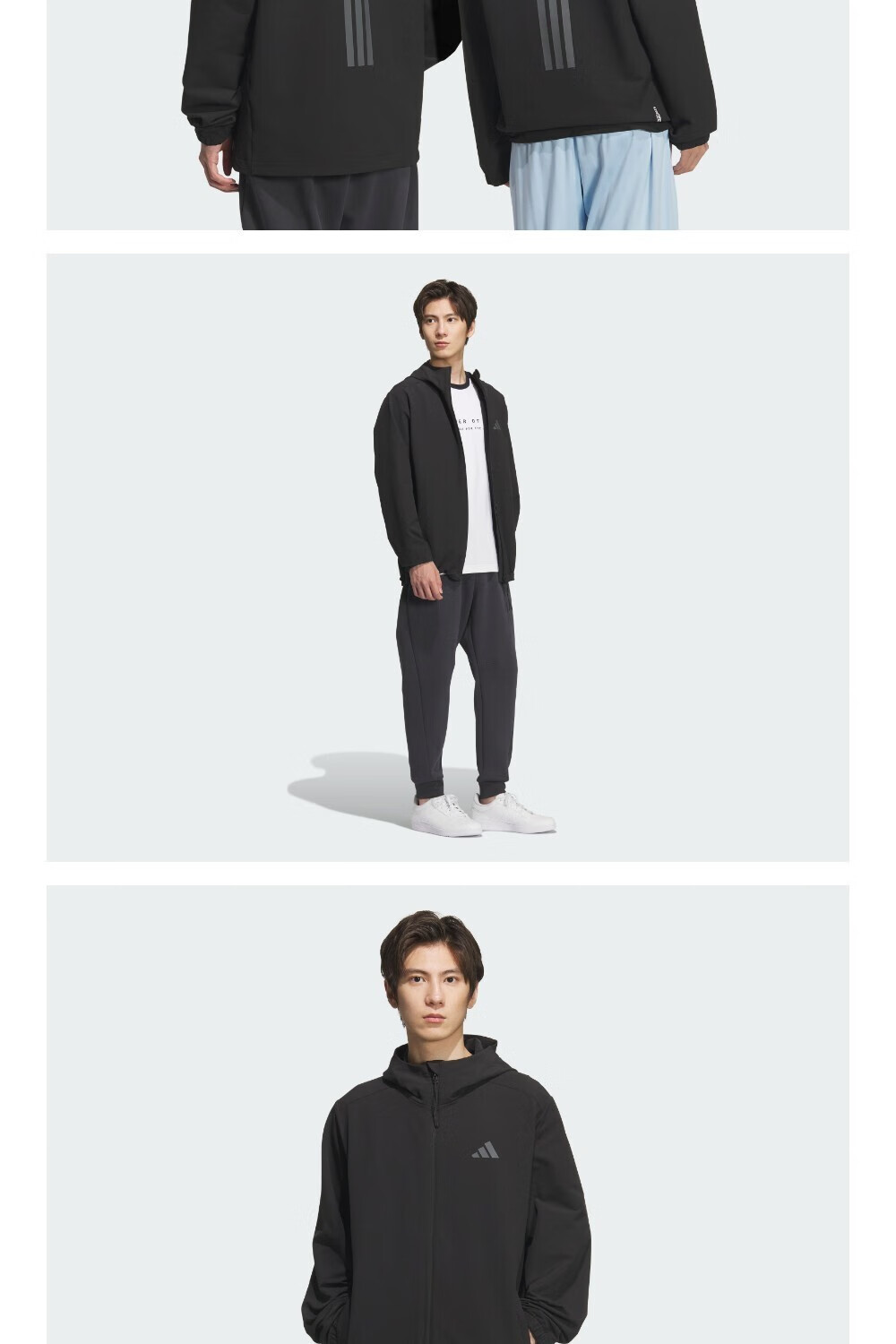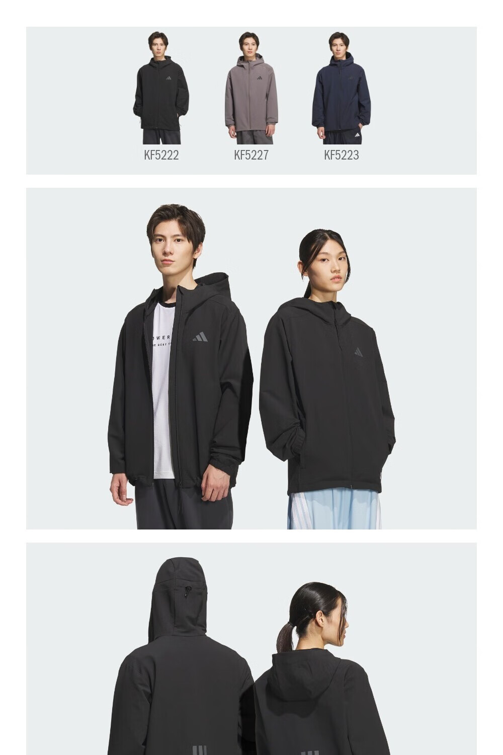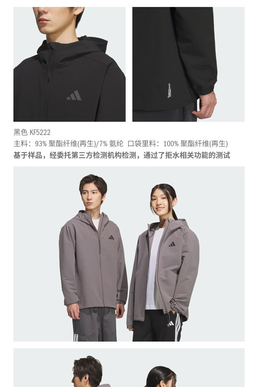 adidas拒水防风休闲连帽夹克外套男女秋季新款阿迪达斯官方轻运动 黑色 XL