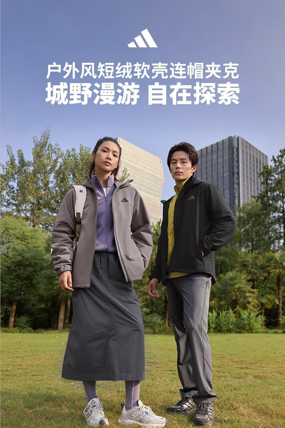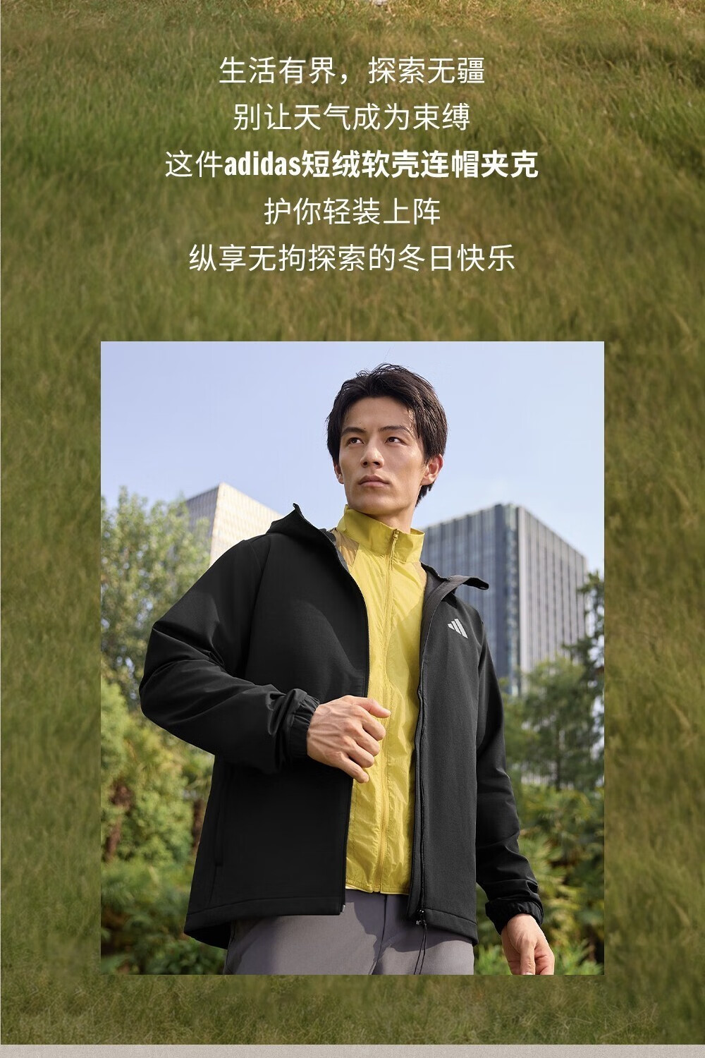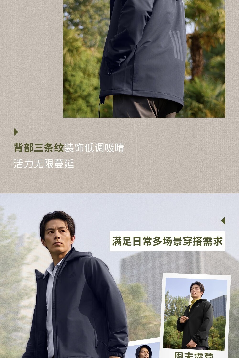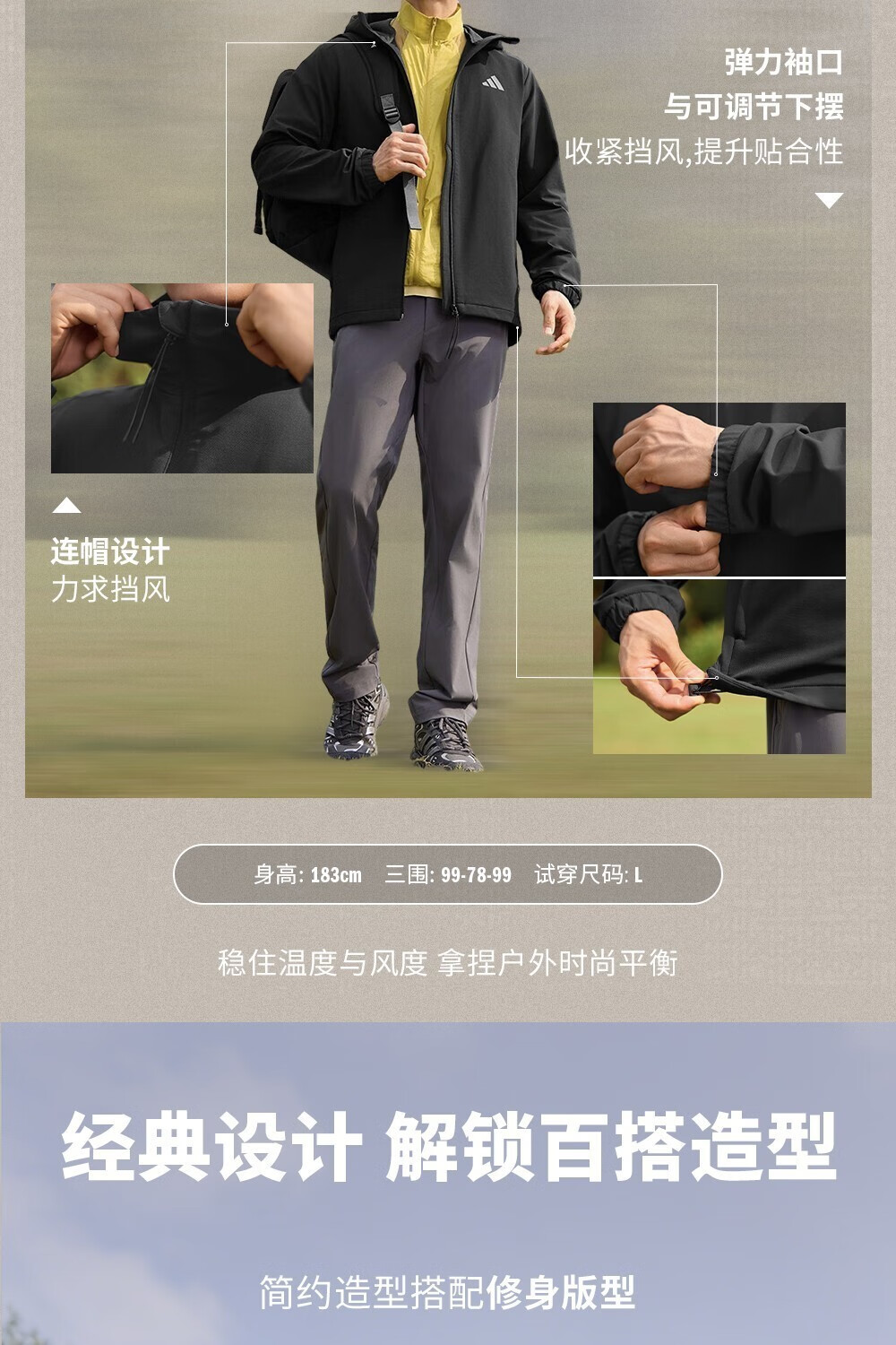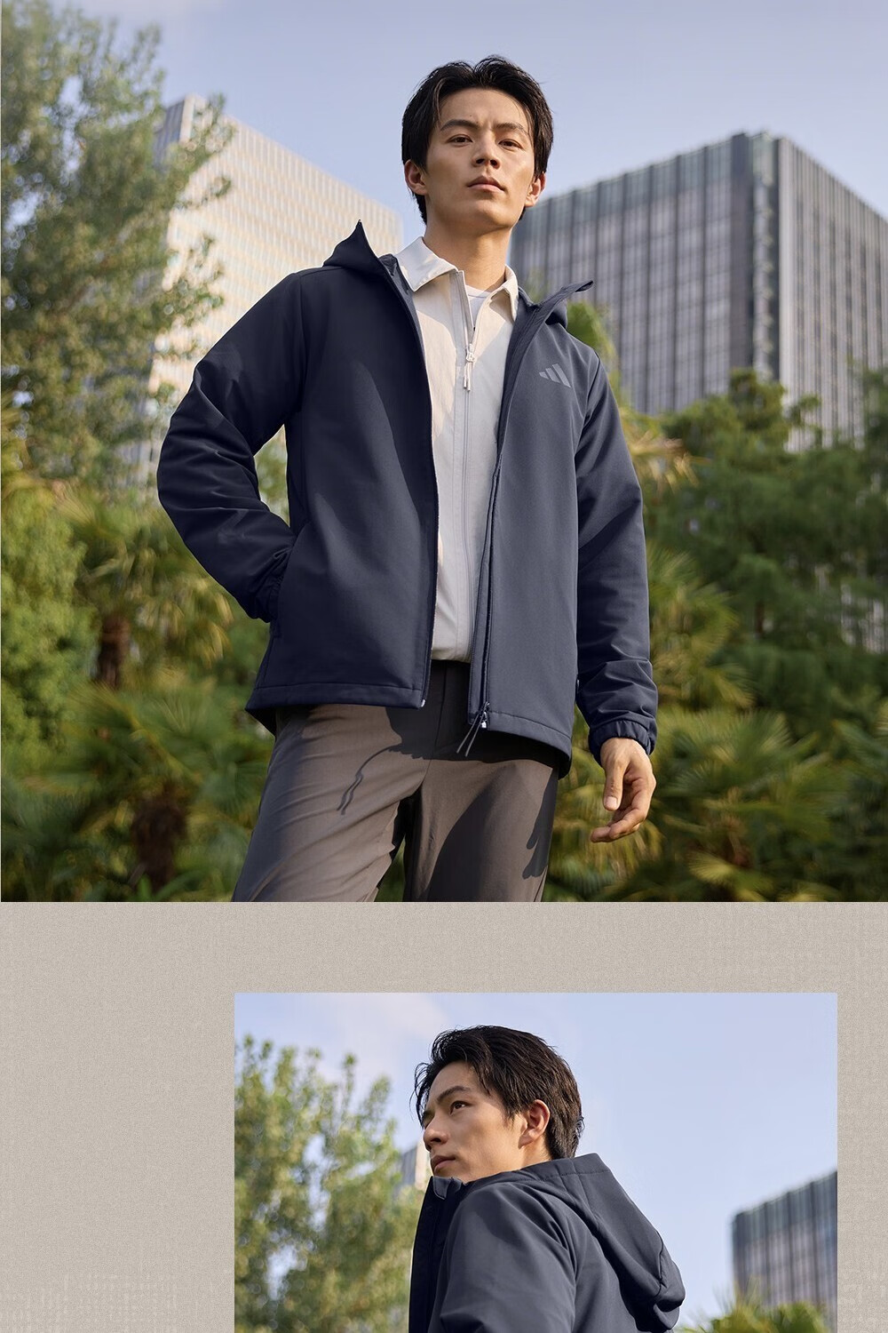 adidas拒水防风休闲连帽夹克外套男女秋季新款阿迪达斯官方轻运动 黑色 XL