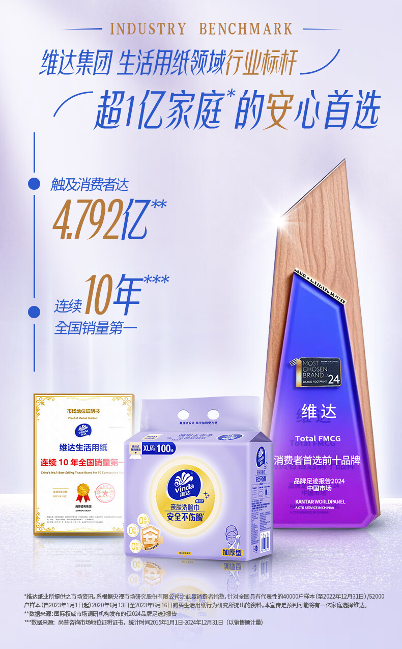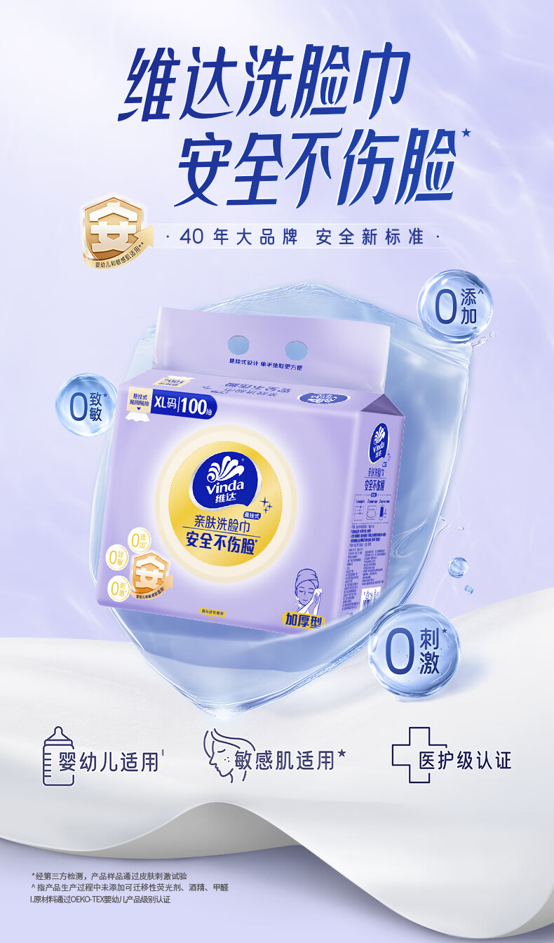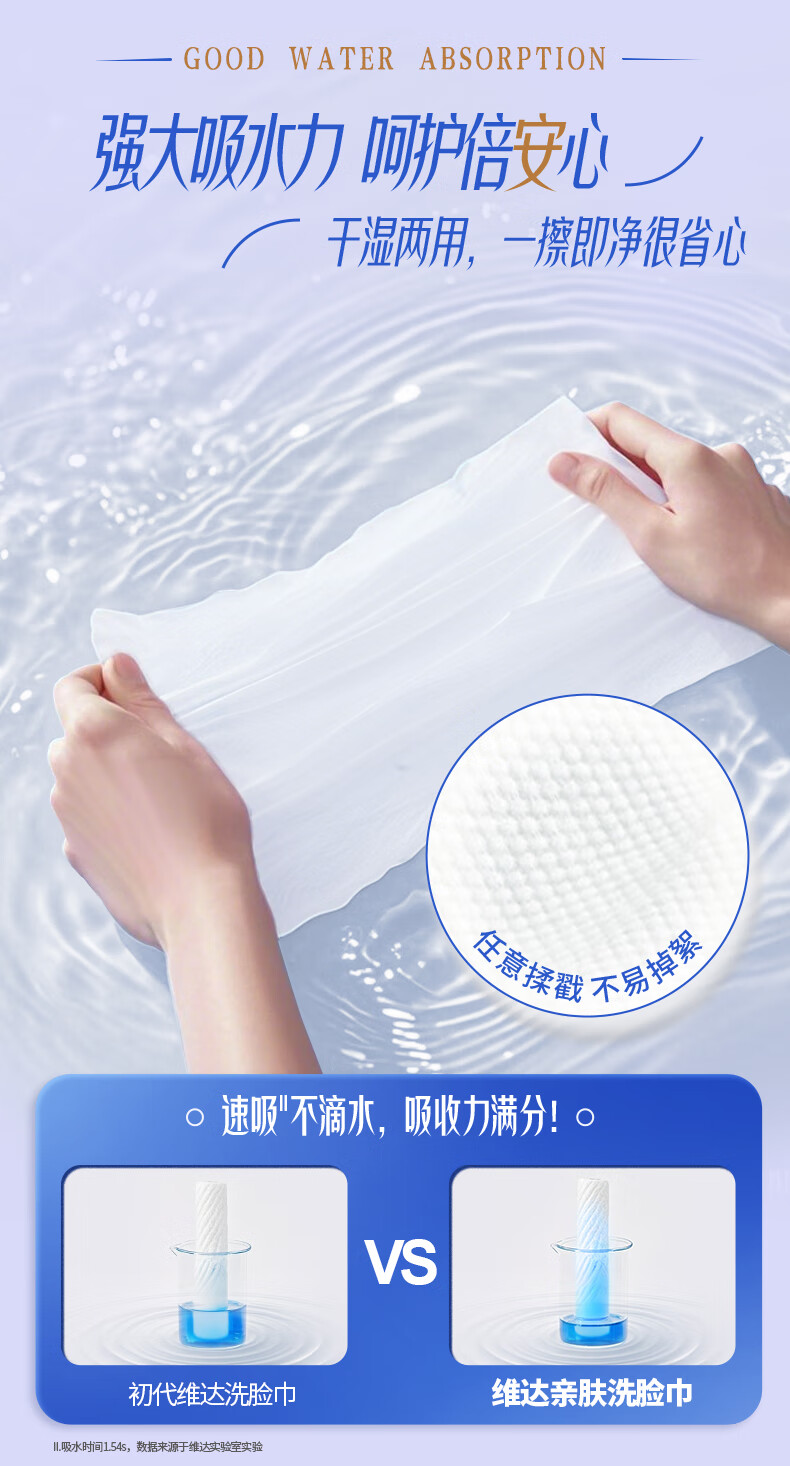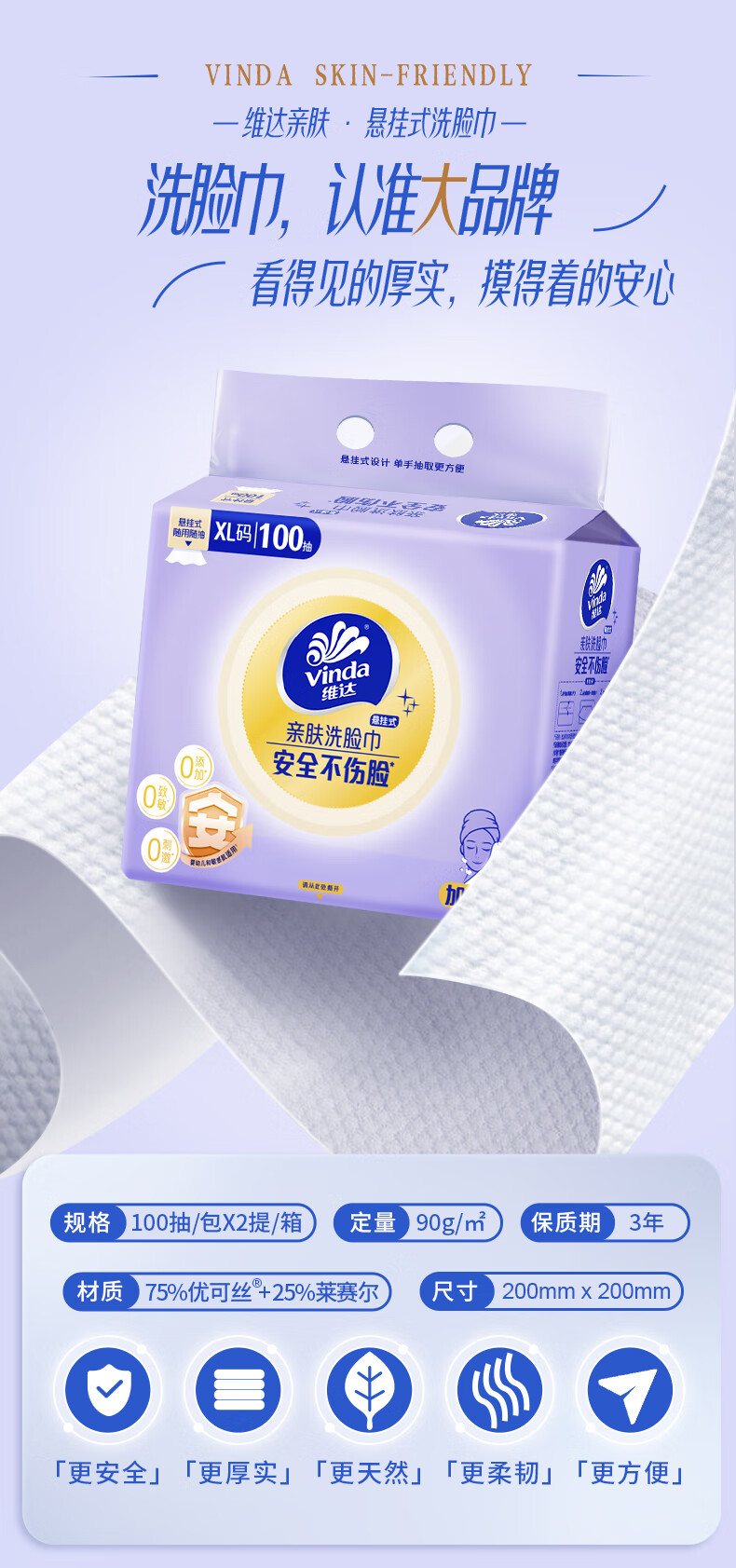 维达(Vinda)洗脸巾 100抽*2提XL码 一次性毛巾洗脸巾 90克高克重悬挂式整箱