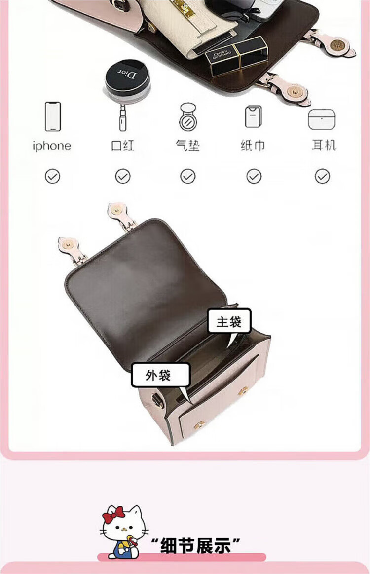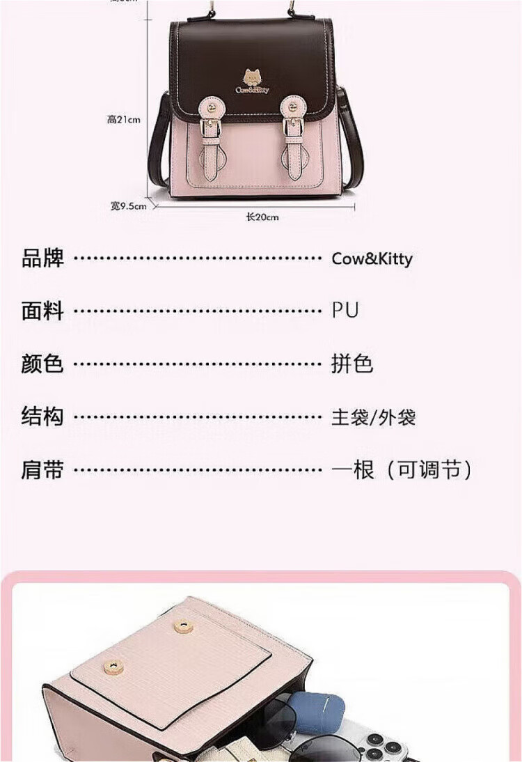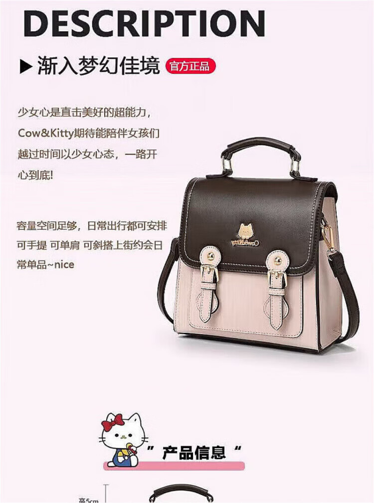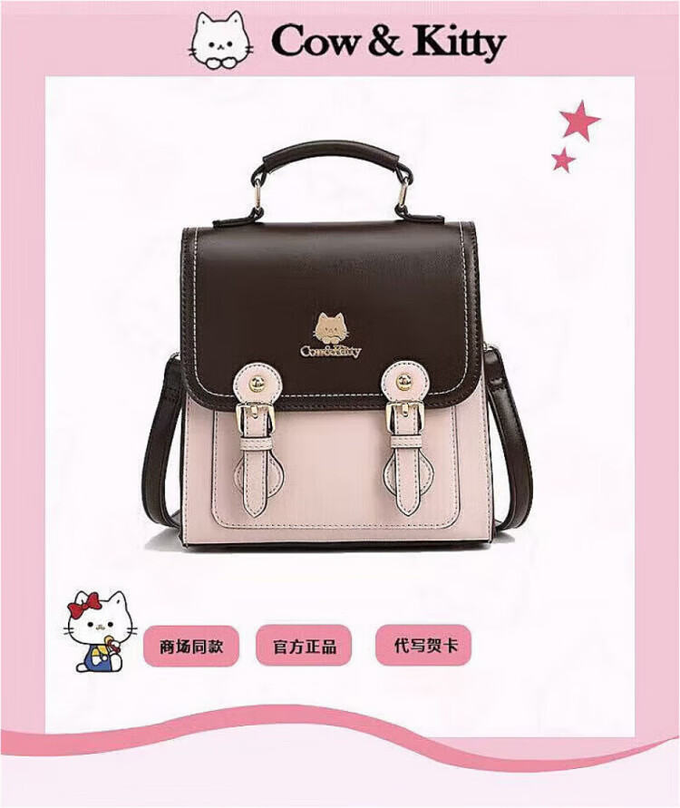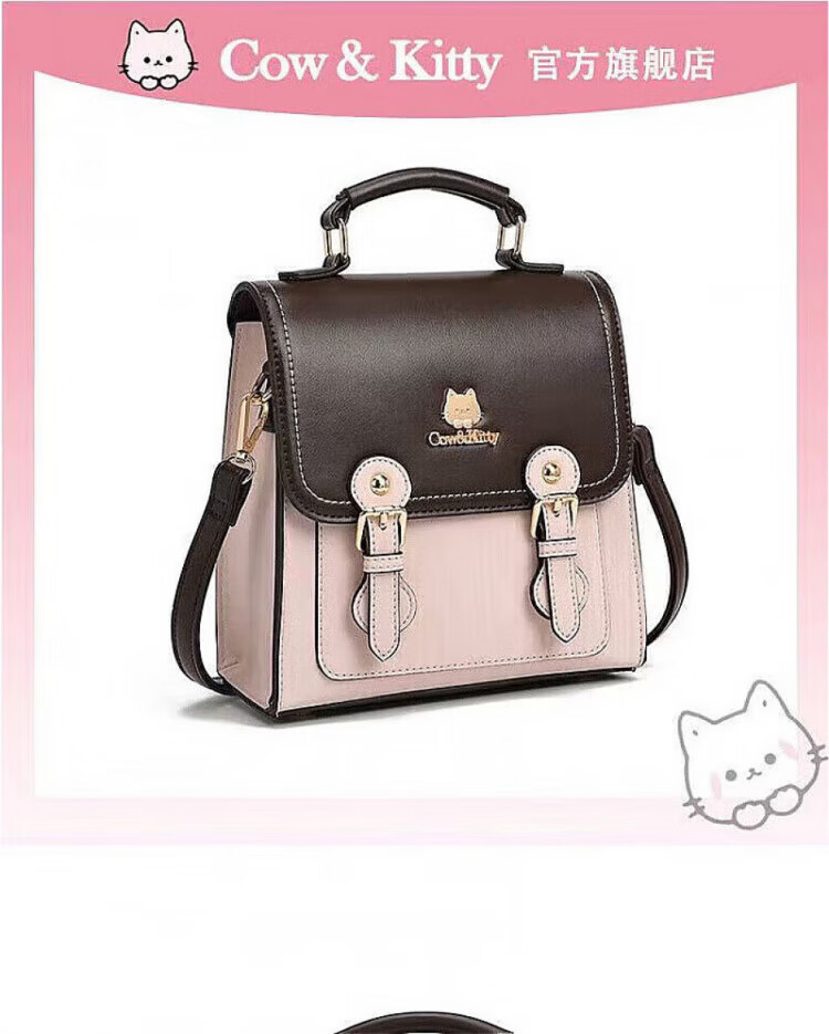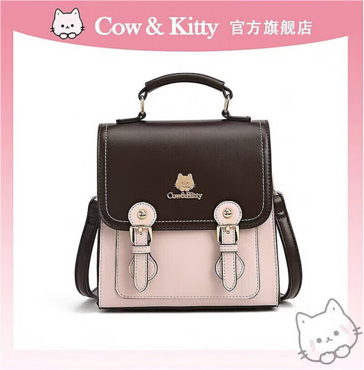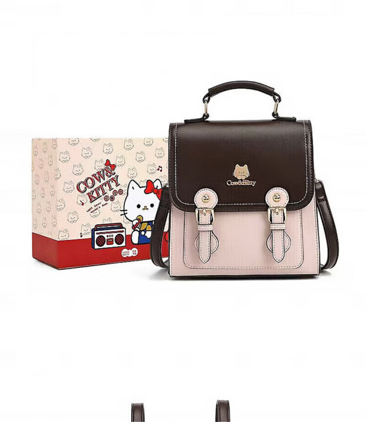 COW&KITTY正品凯蒂猫女士2025新款复古双肩包旅行包斜挎包生日礼物女生包包 褐色送挂件礼盒 20-9.5-21