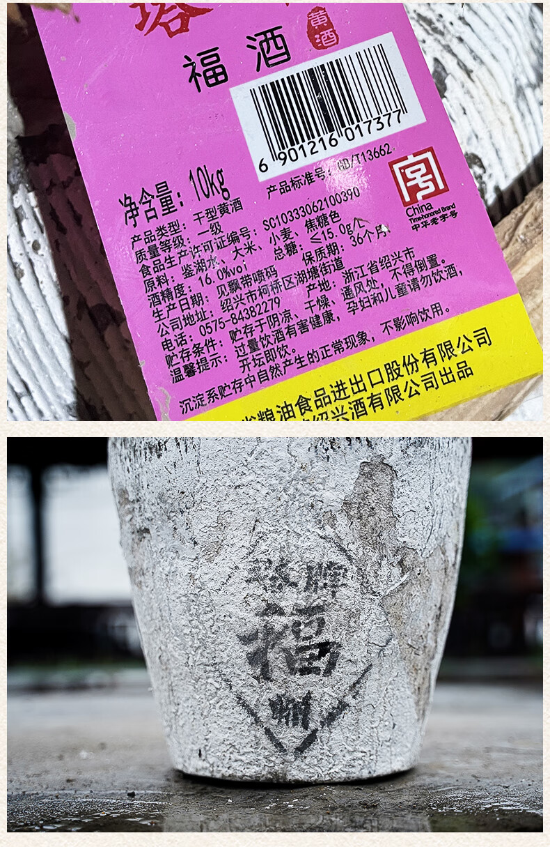 塔牌 福酒10公斤 绍兴黄酒 干型元红花雕酒 10kg冬酿坛装酒 10L 1坛