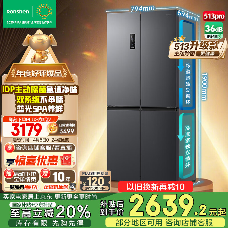 容声513pro十字门冰箱IDP主动除菌双系统双循环一级能效风冷无霜变频以旧换新BCD-513WD15FPA国家补贴