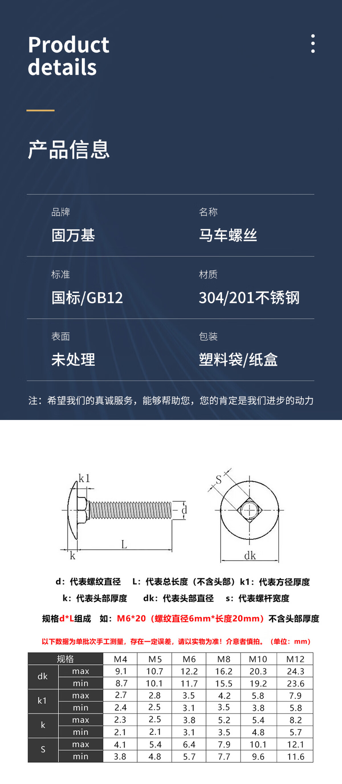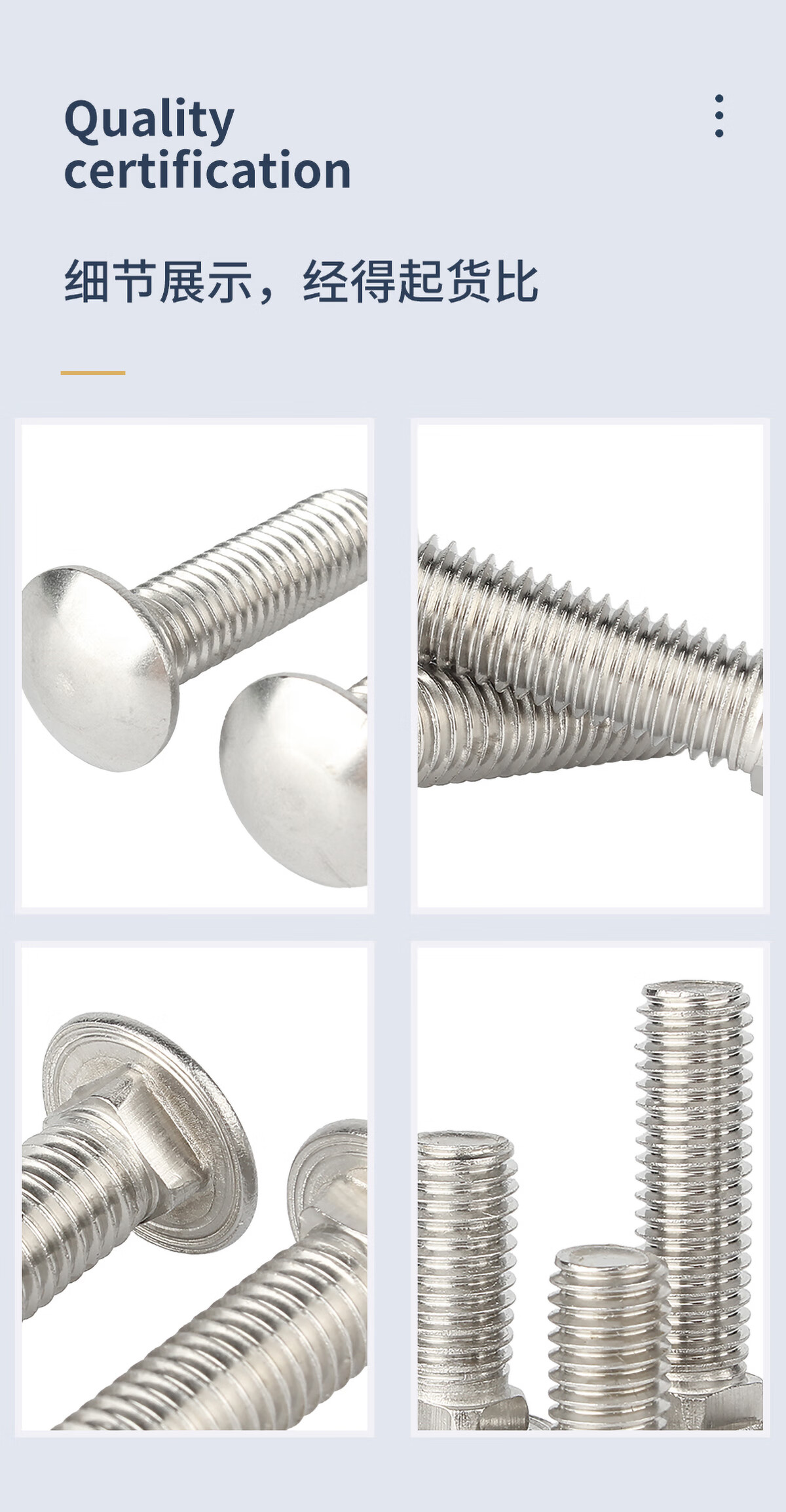 固万基(GUWANJI)304不锈钢马车螺丝半圆头螺栓机螺钉GB12货架M4M5M6M8-M12 M3x8[200个]