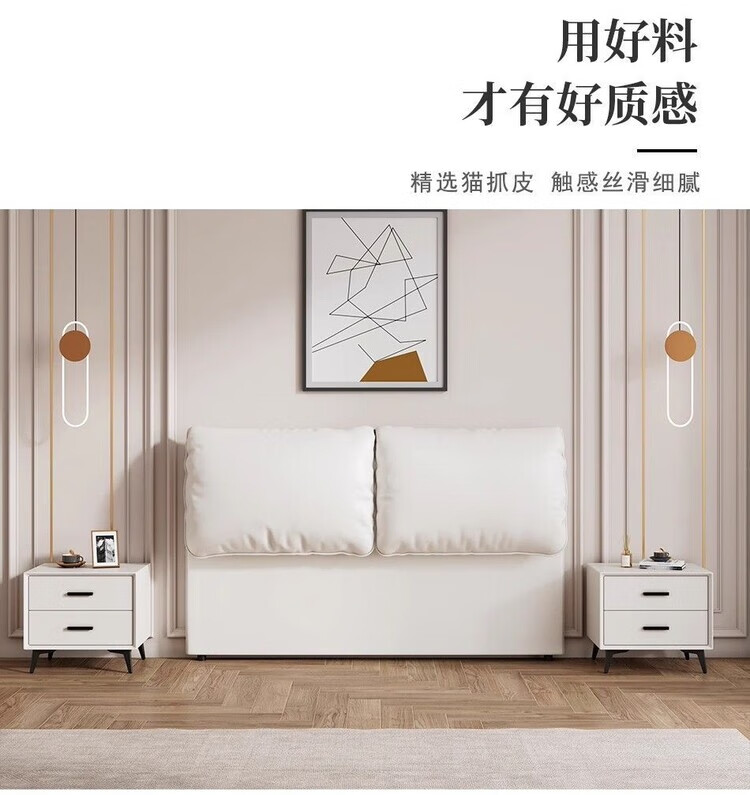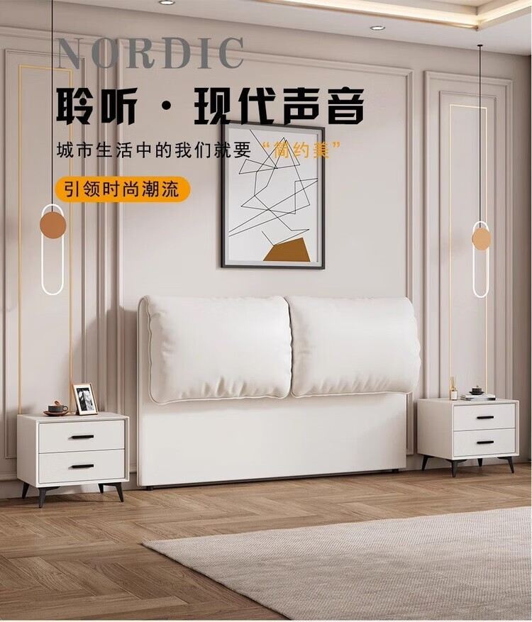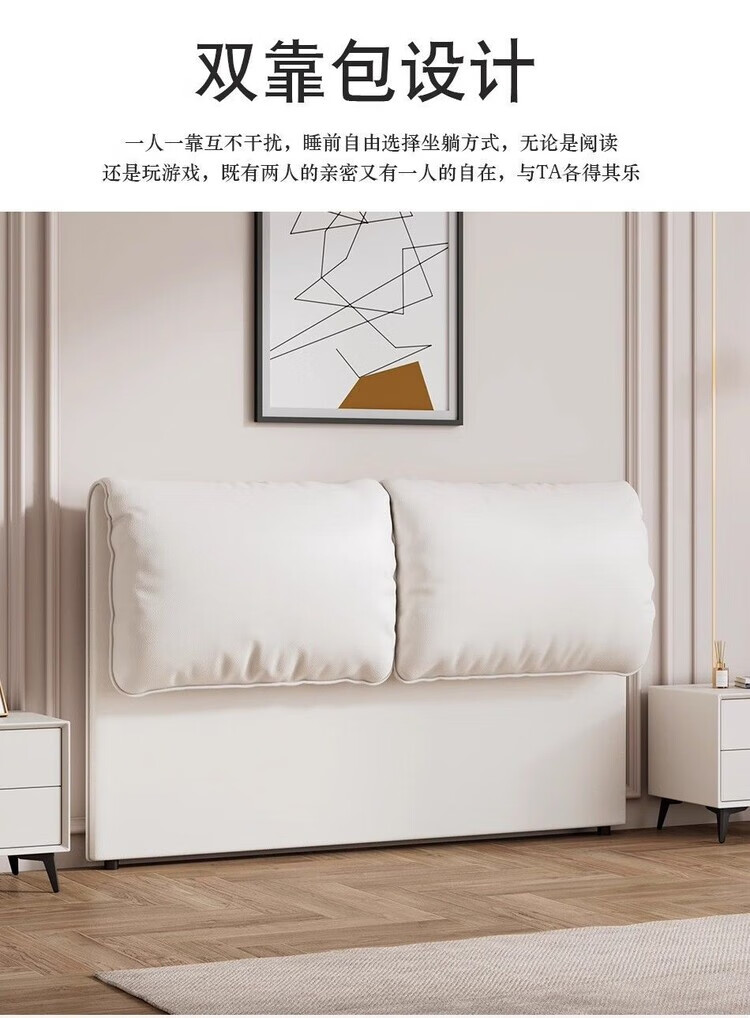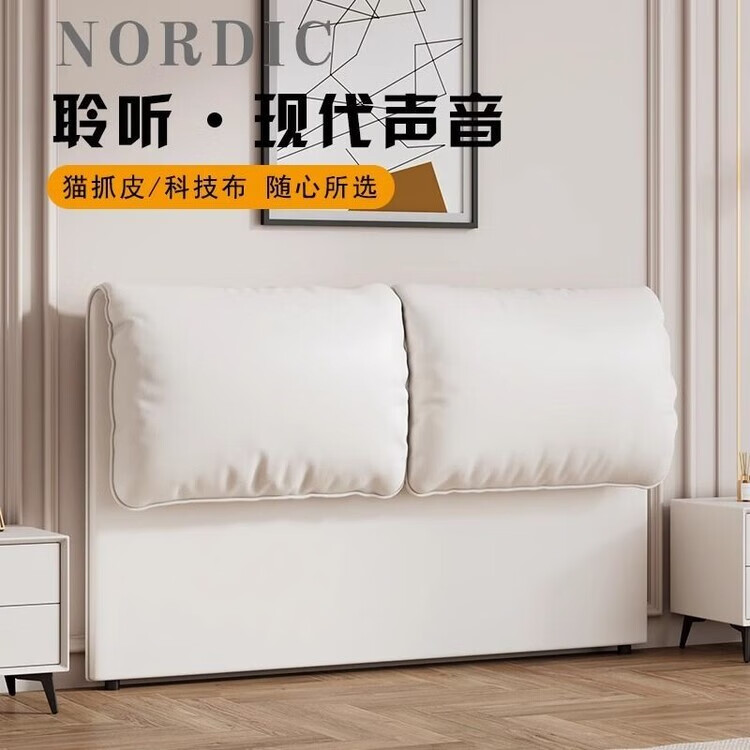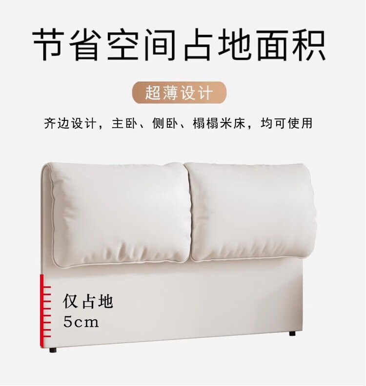 迈途森奶油风大象耳朵床头软包靠背实木落地床头板超薄省空间卧室现代 浅灰-高品质【生态皮】环保0异味 1.5米宽【免组装】