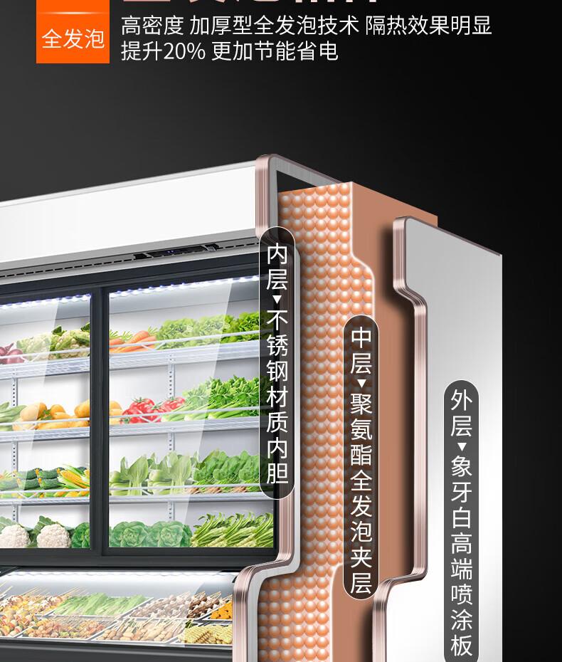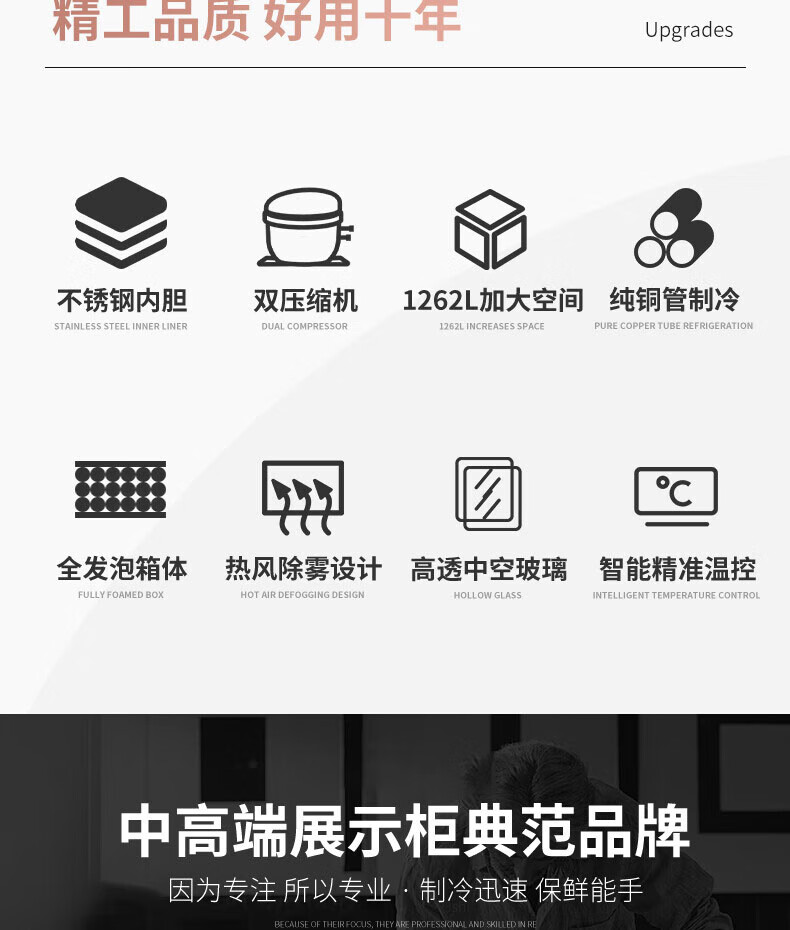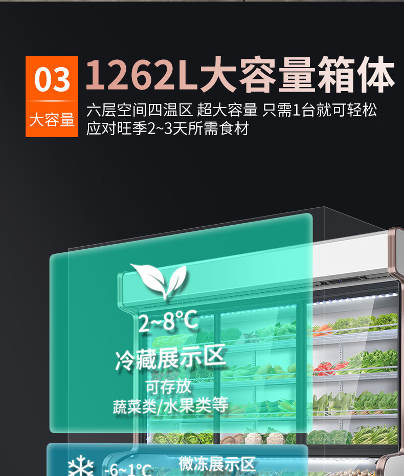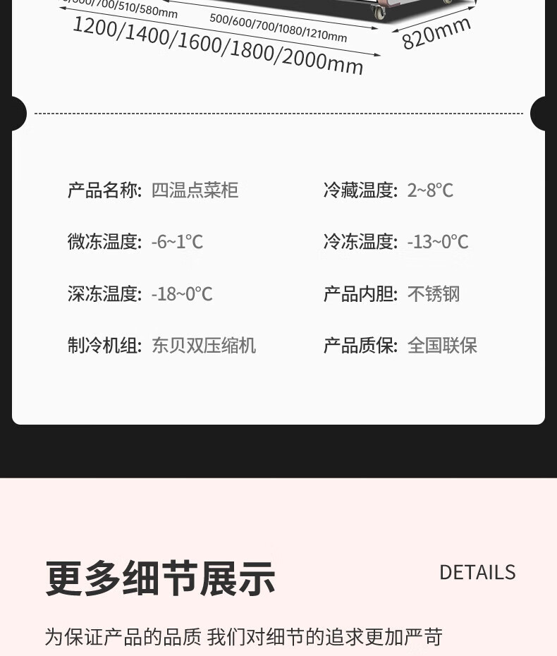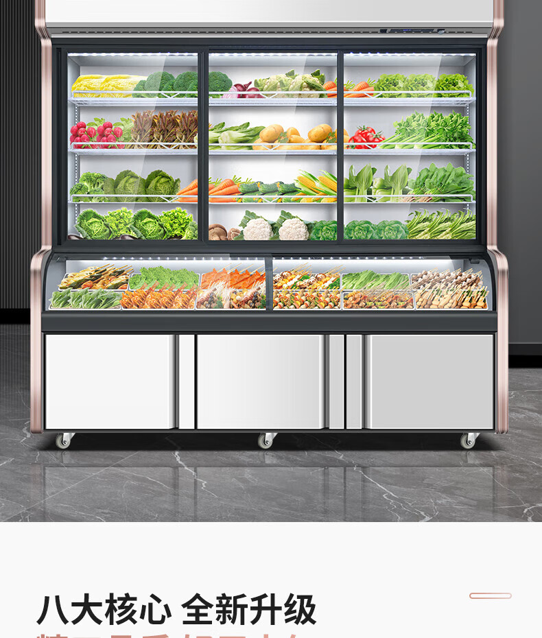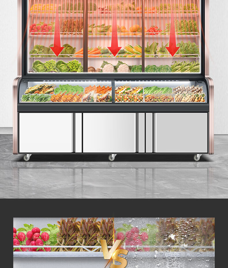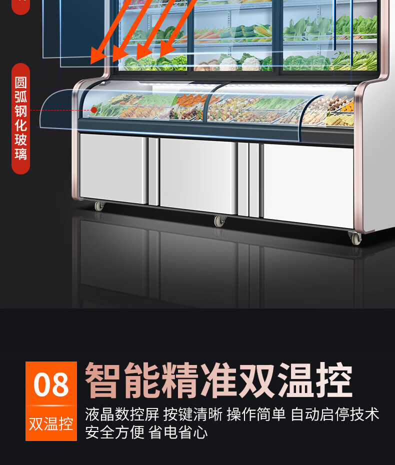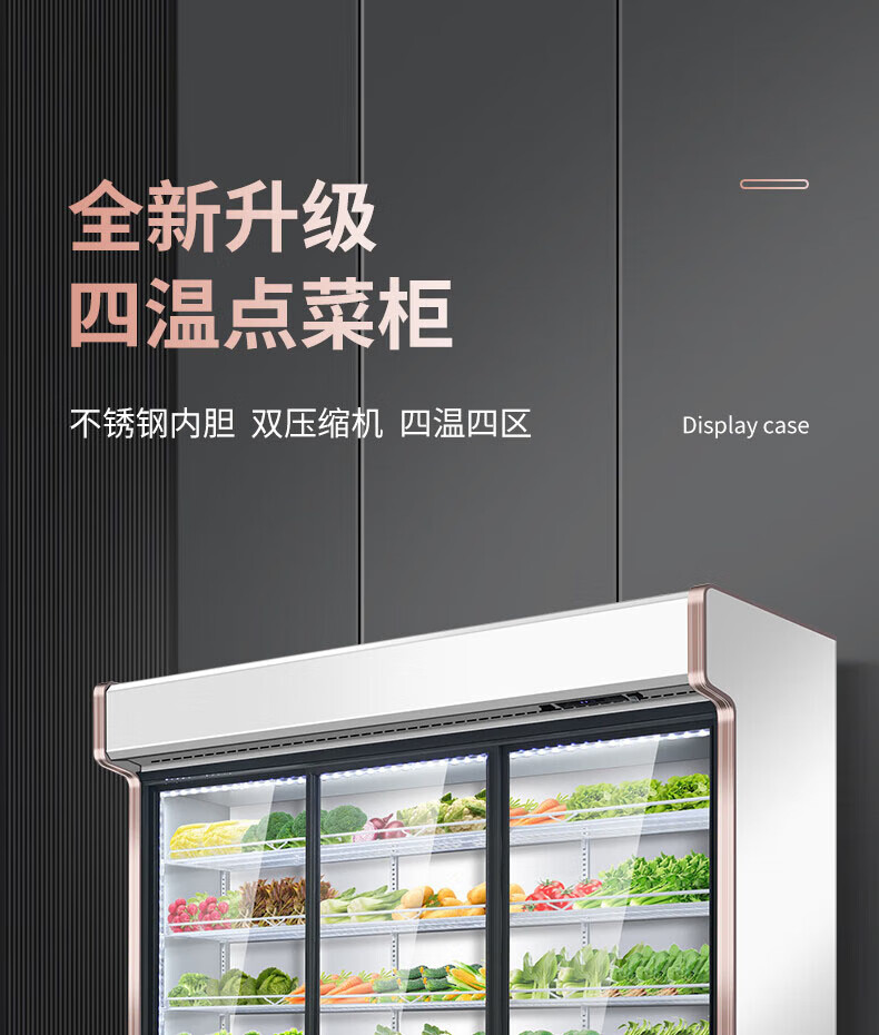 能师傅四温点菜柜商用三温展示柜冷藏冷冻柜饭店烧烤展示柜冷藏冷冻一体冰柜炸串串酒水蔬菜麻辣烫展示柜 1.4米白色双温【经典款】