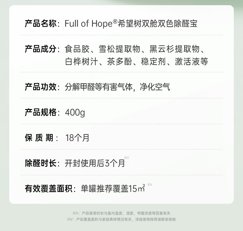 希望树 除甲醛双舱除醛宝5罐装小绿罐除醛果冻新房室内家用甲醛清除剂
