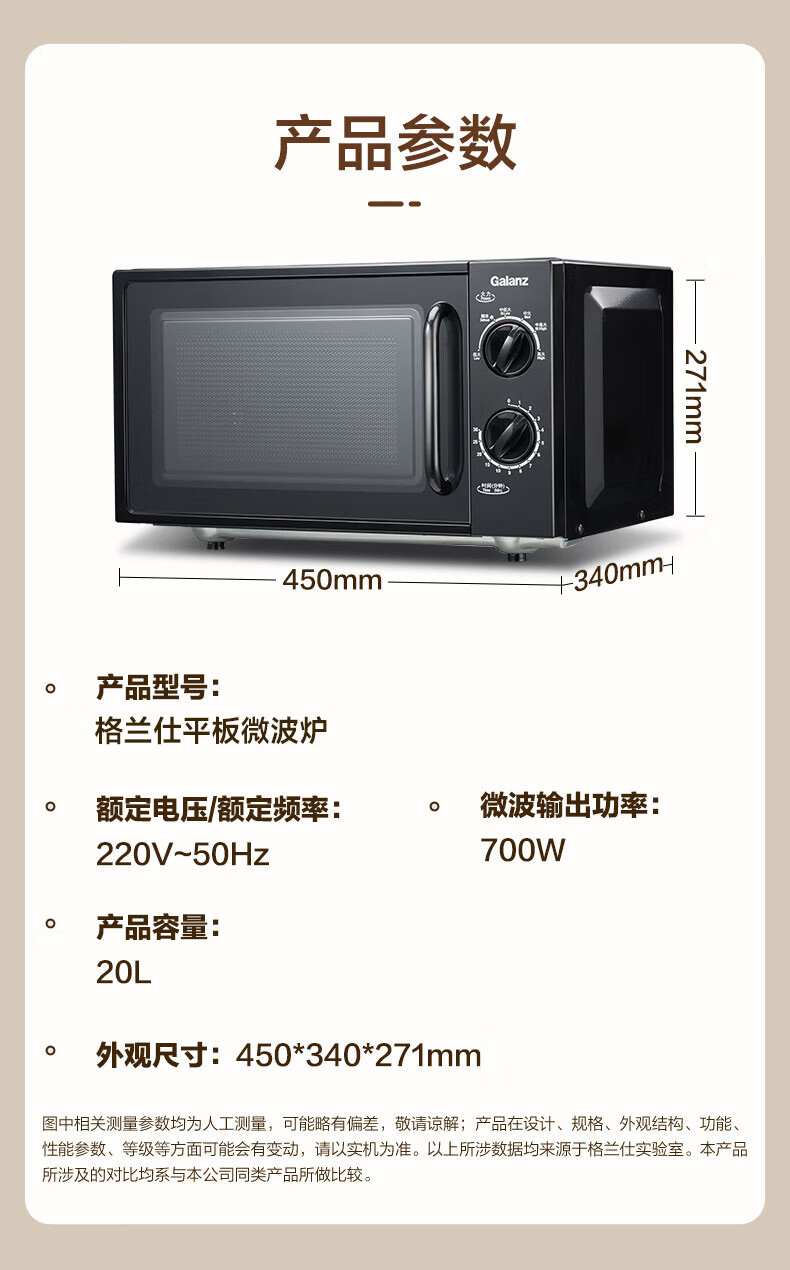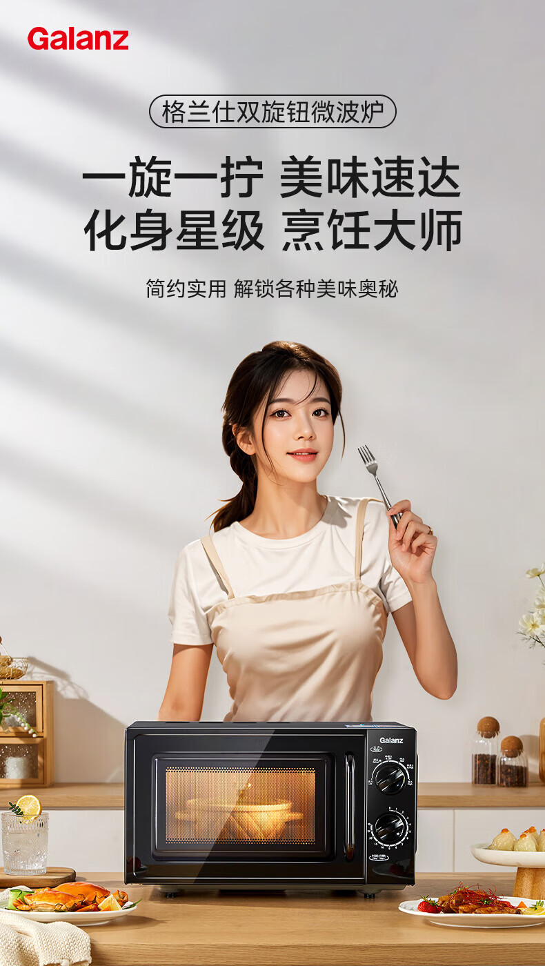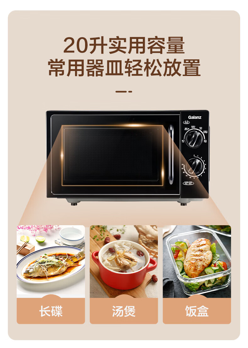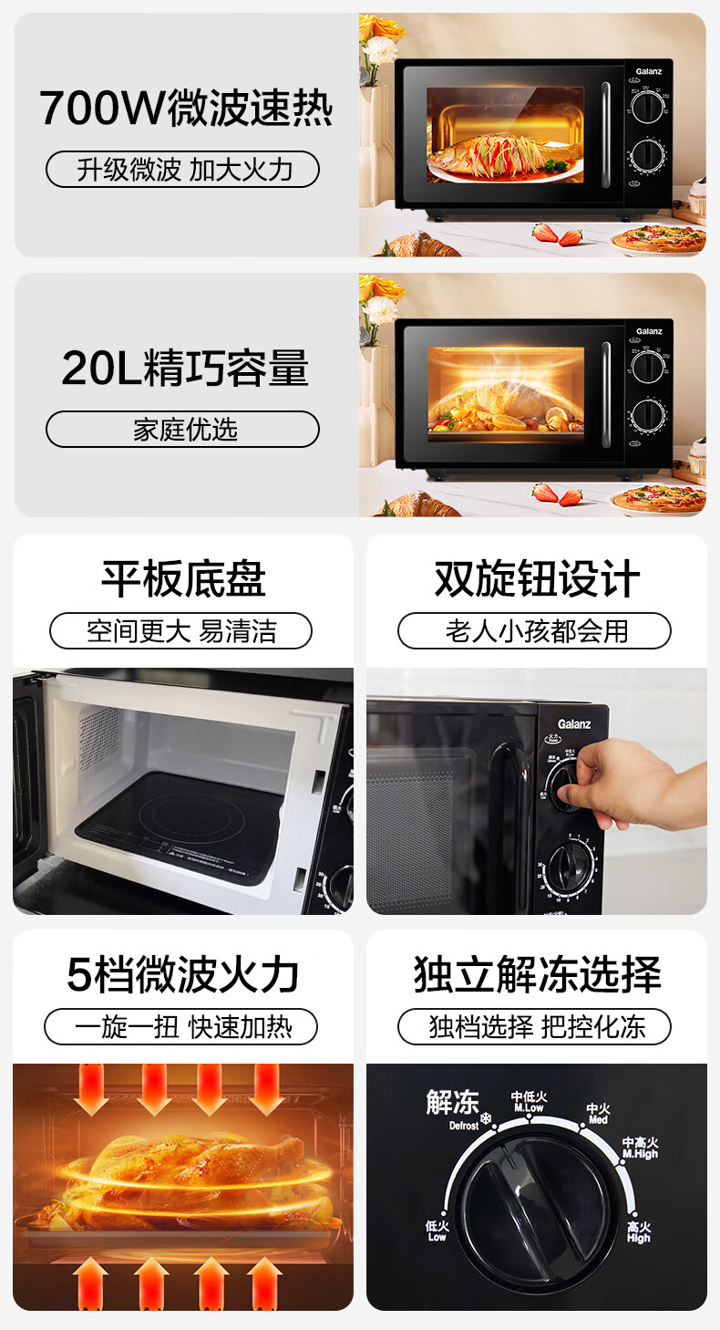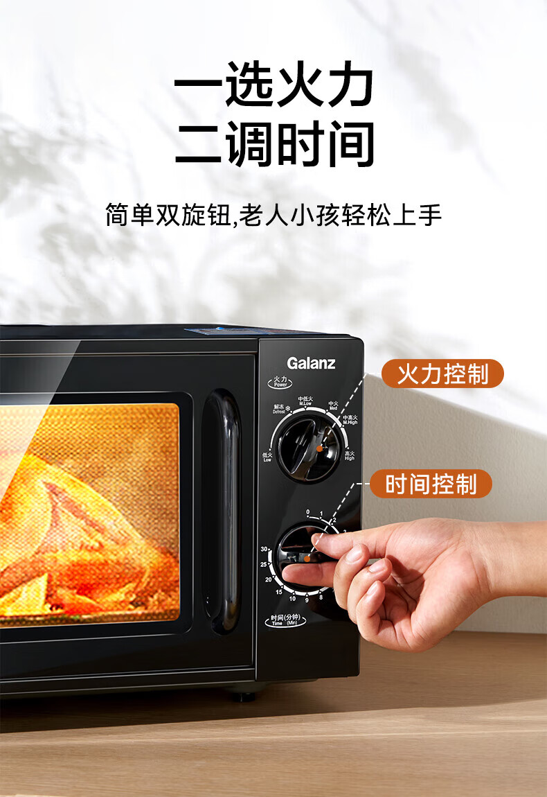 格兰仕【国家补贴】家用微波炉20升机械大平板式易清洁均匀加热智能小型迷你速热杀菌旋钮操作简单便捷B1 升级大平板 黑色