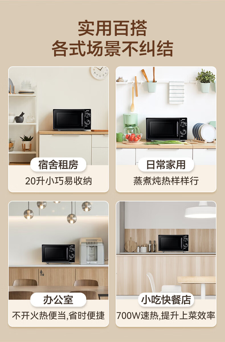 格兰仕【国家补贴】微波炉家用复古奶油风高颜值20升智能多功能一体机平板易清洁速热杀菌旋钮式小型KJ 复古高颜值平板 家庭优选