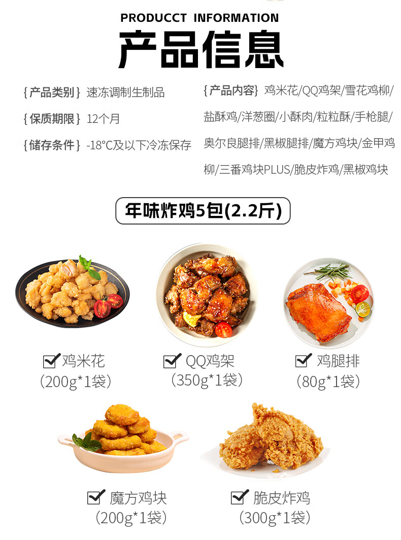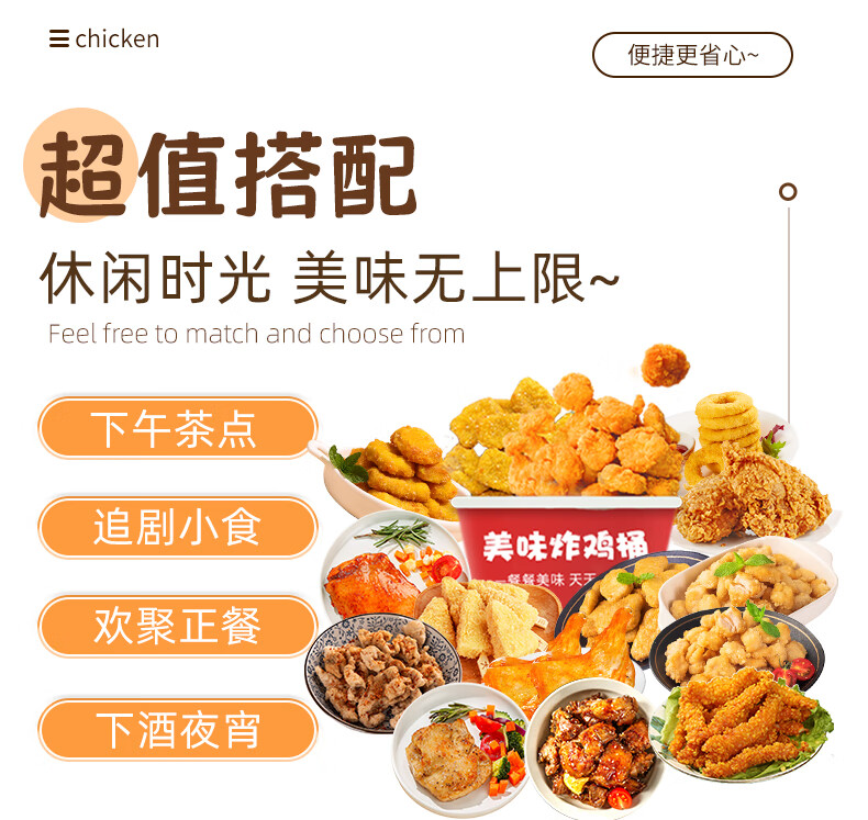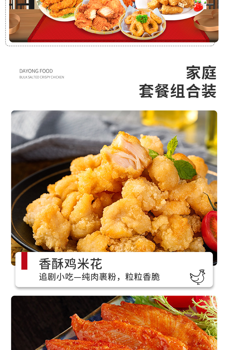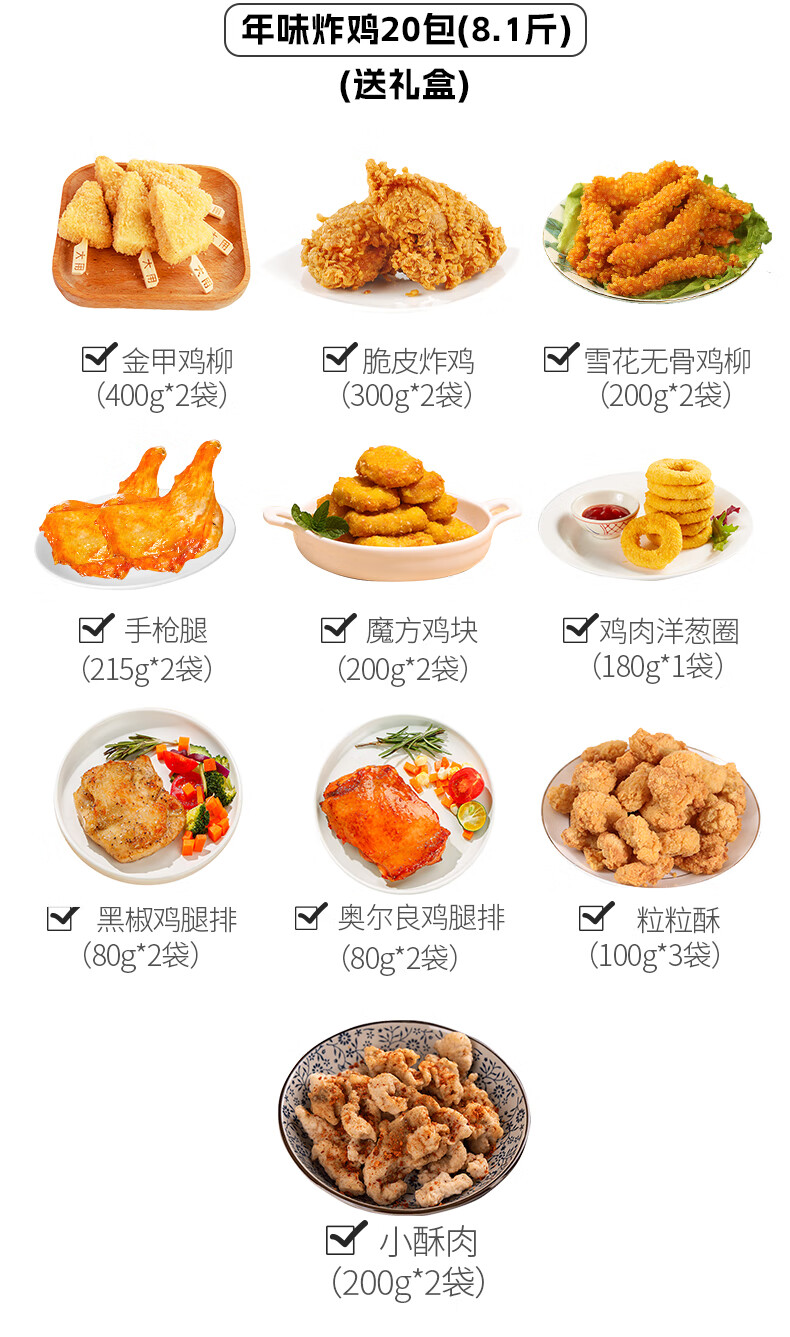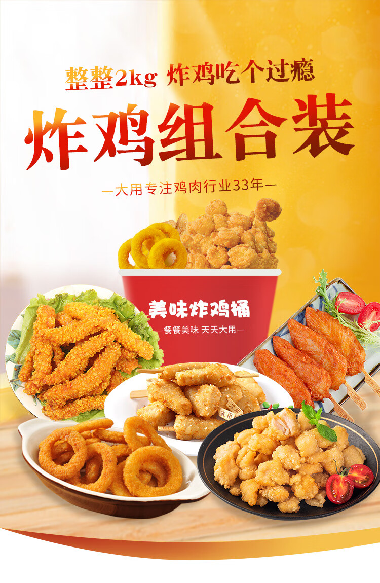 大用炸鸡桶半成品金甲鸡柳鸡米花川香鸡肉串洋葱圈无骨鸡柳 空气炸锅 净重4斤
