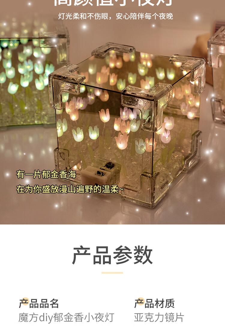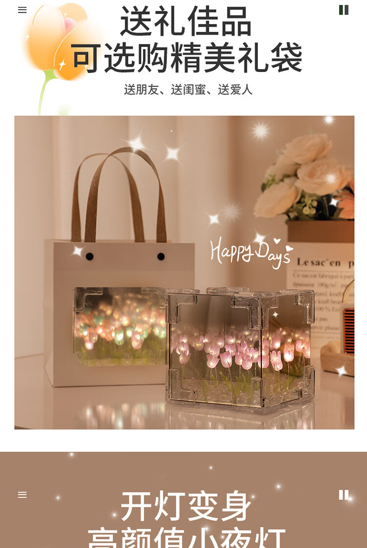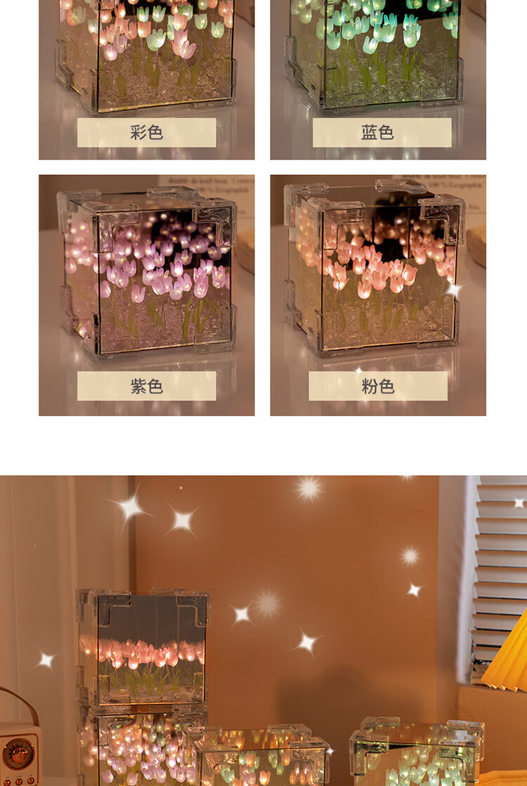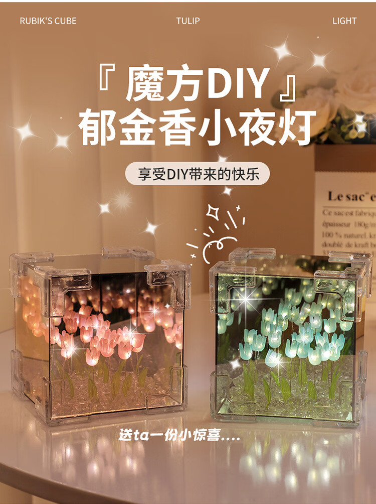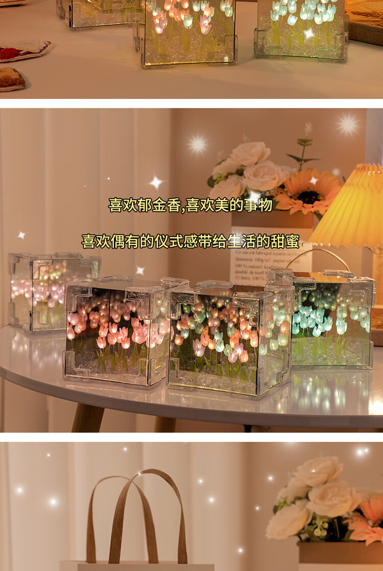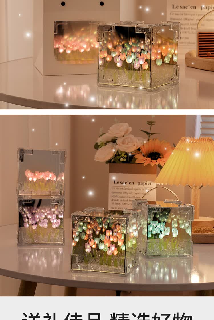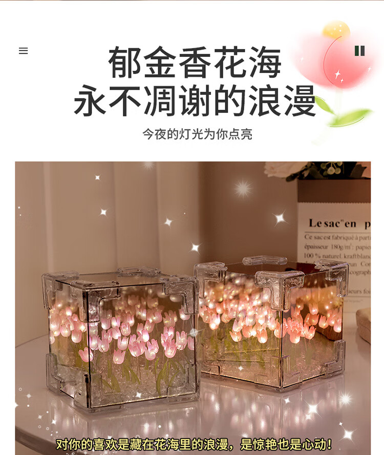 映棠郁金香花海小夜灯成品摆件生日礼物女生送闺蜜朋友同学实用走心 【成品】20朵粉色郁金香+礼袋