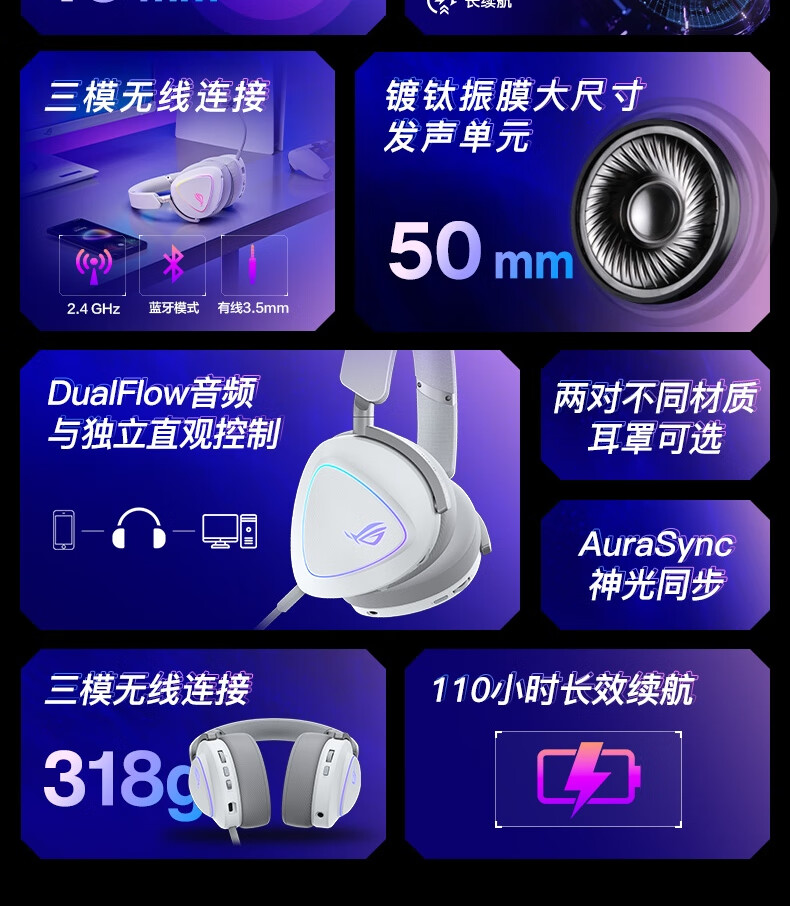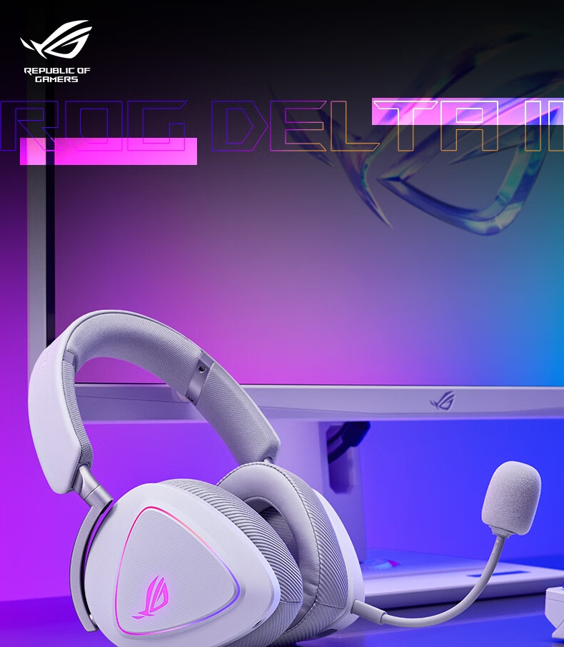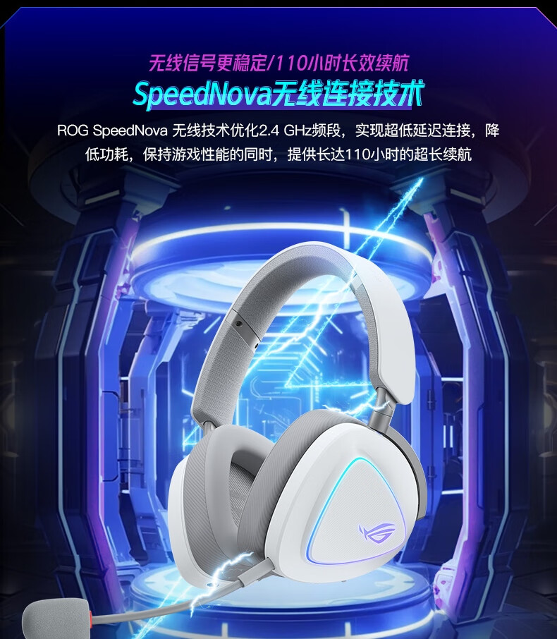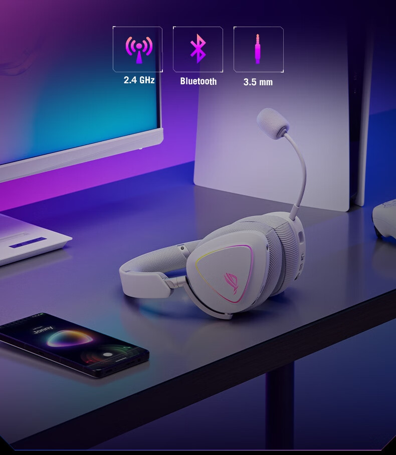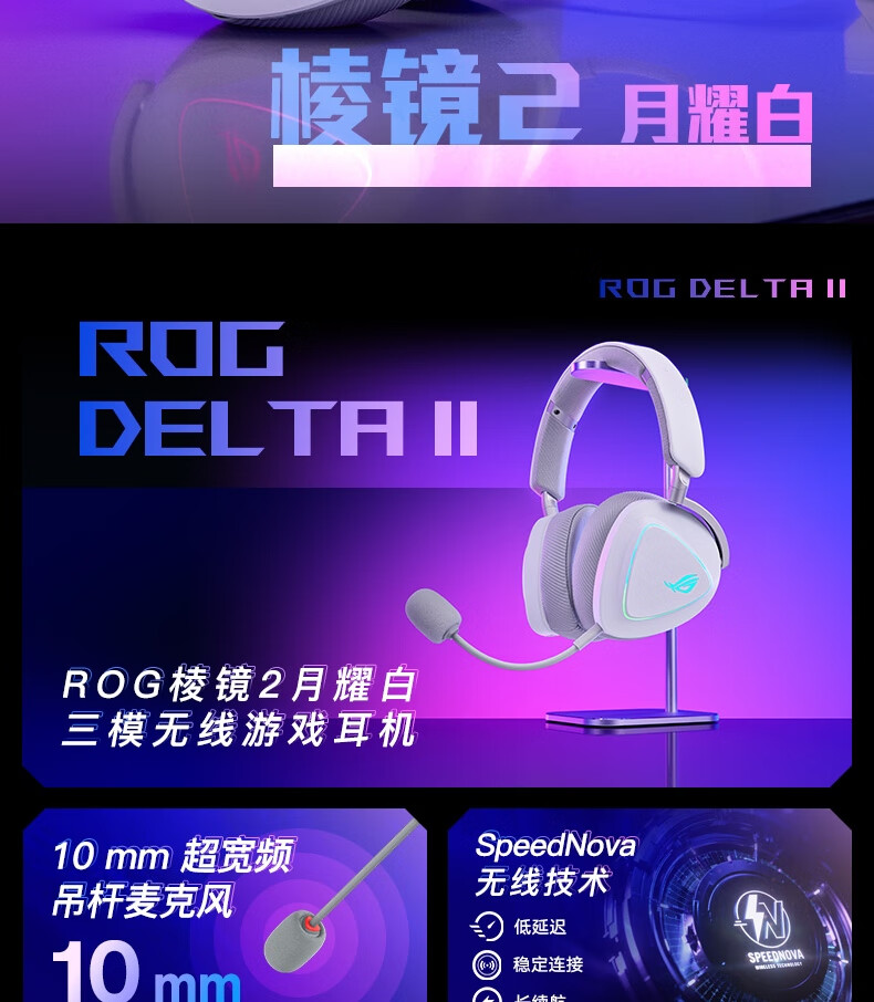 ROG棱镜2头戴式游戏耳机 无线三模连接 Speednova技术轻量化电竞耳机环绕7.1音效 3.5mm 月耀白三角洲