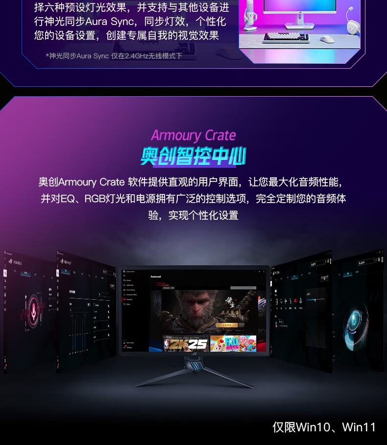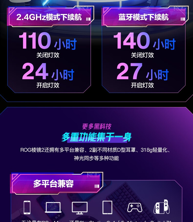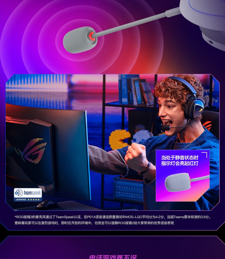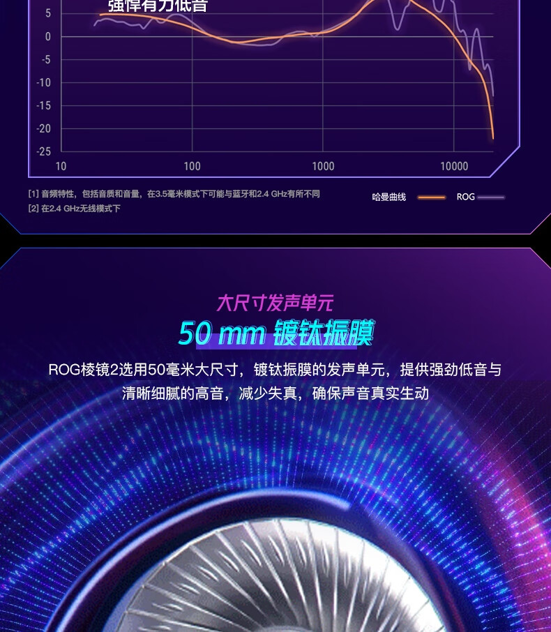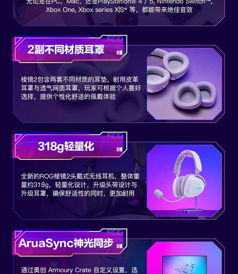 ROG棱镜2头戴式游戏耳机 无线三模连接 Speednova技术轻量化电竞耳机环绕7.1音效 3.5mm 月耀白三角洲