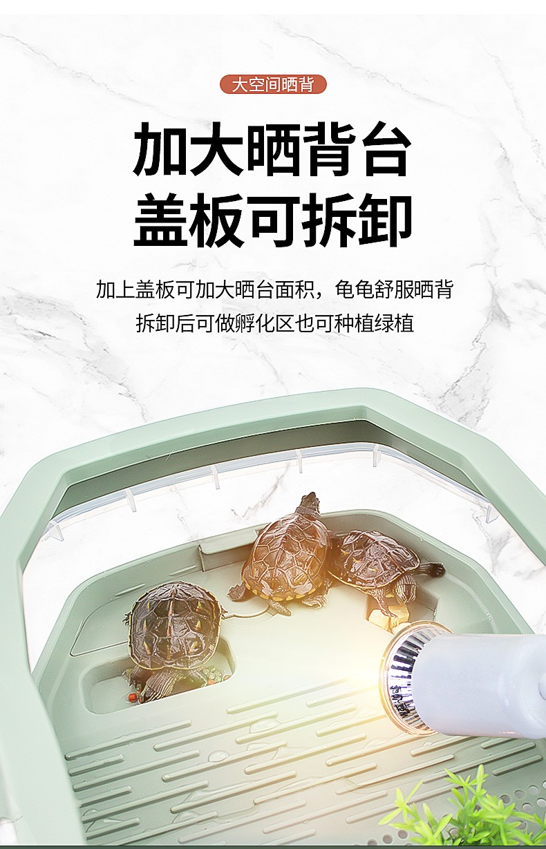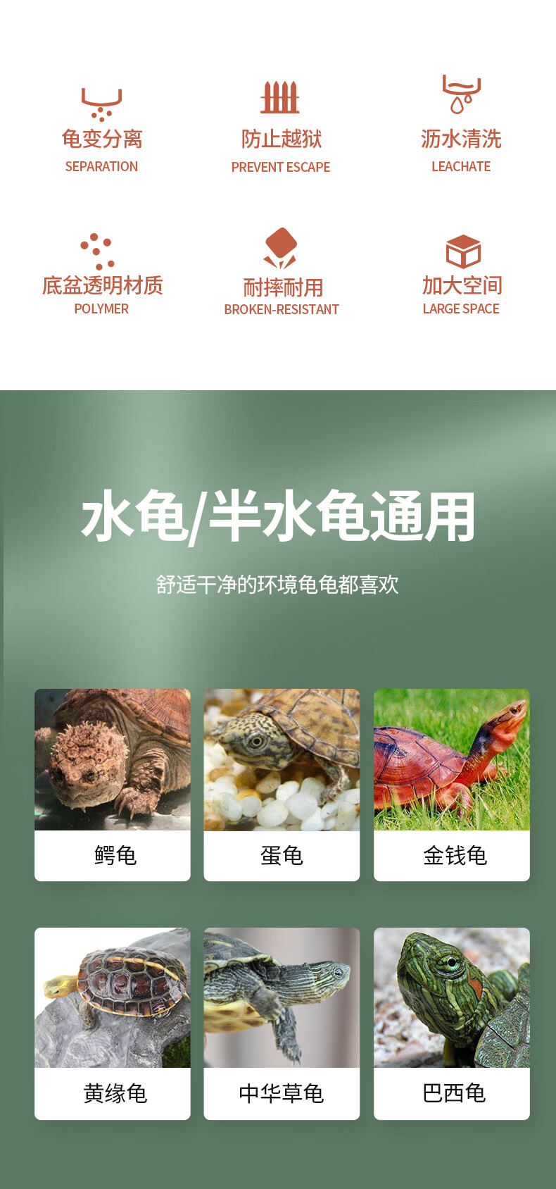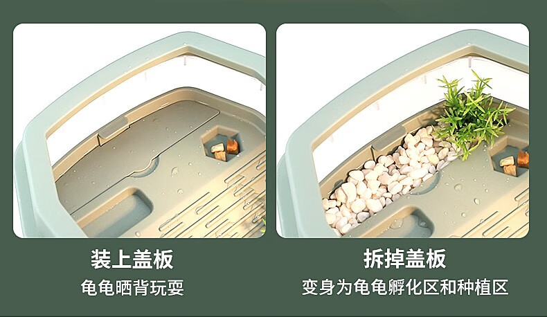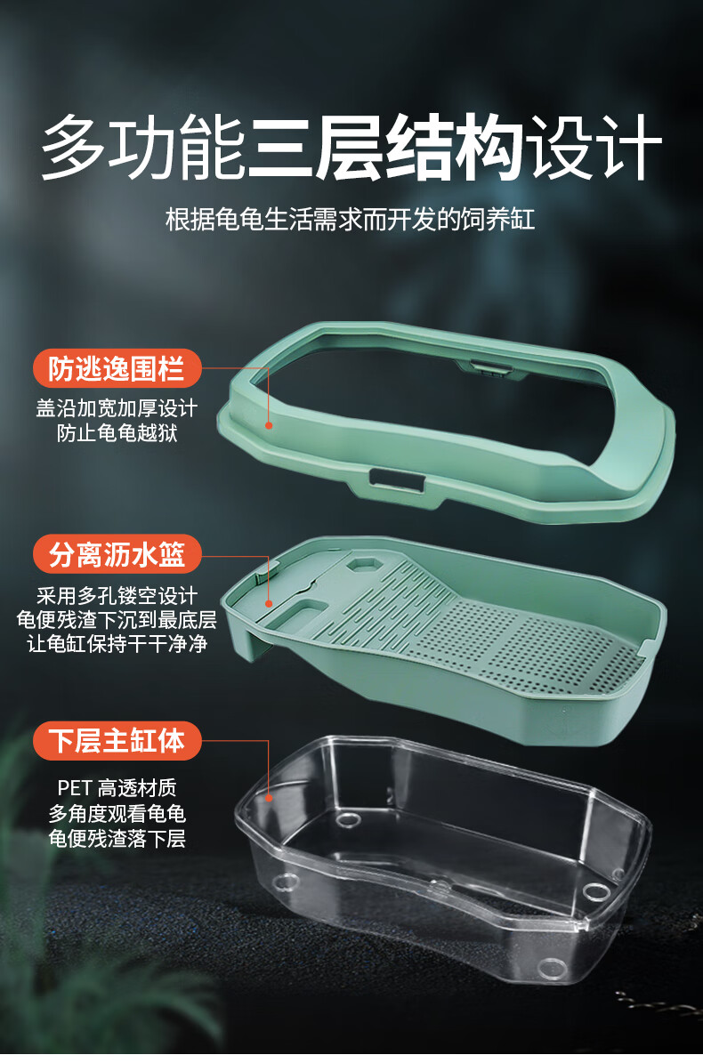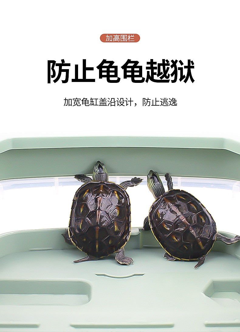 爬将军 乌龟缸带晒台 龟缸防逃逸龟箱 别墅家用生态造景水陆草龟养龟 北欧绿 中号(龟粮+造景+渔捞)