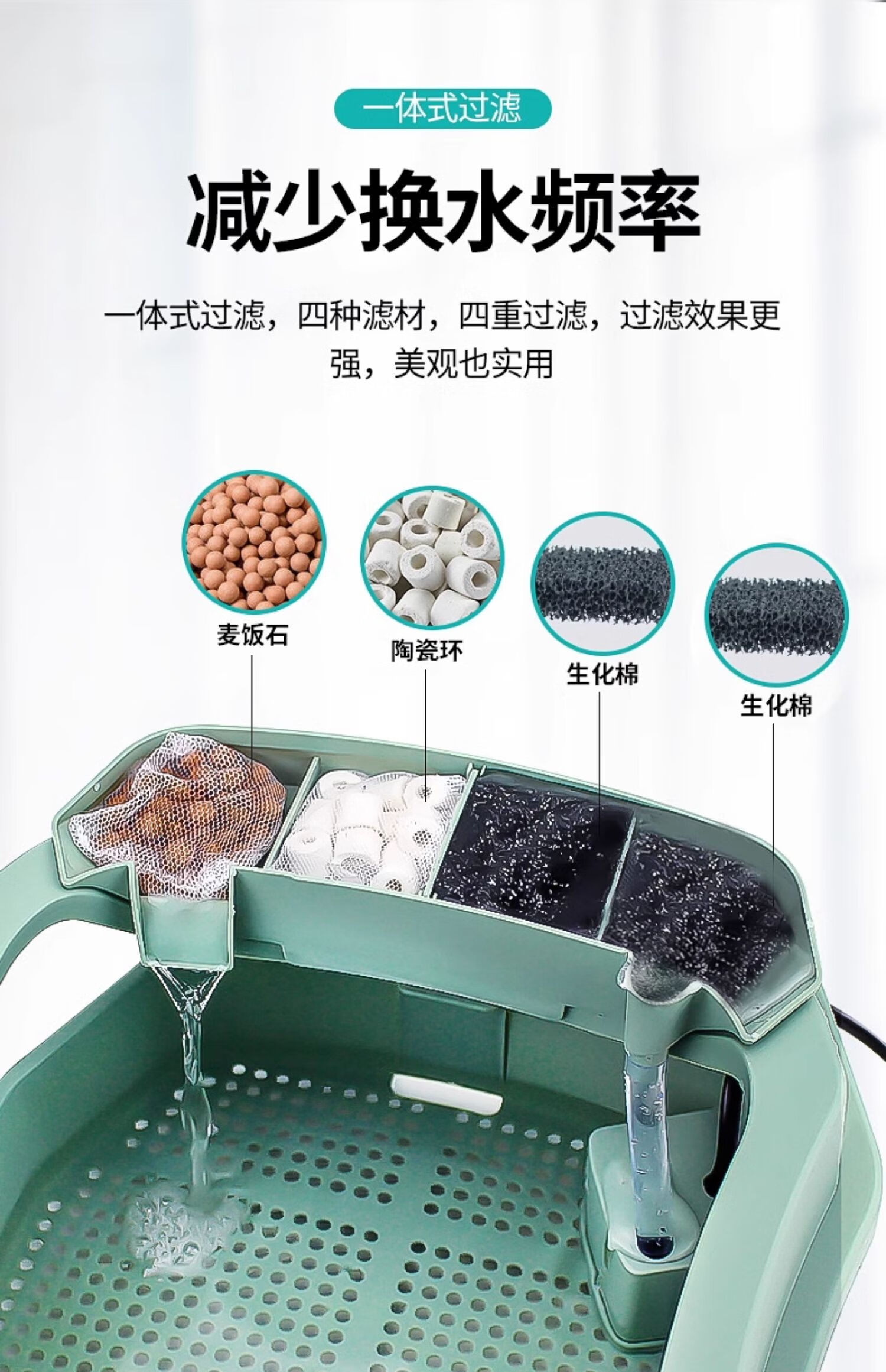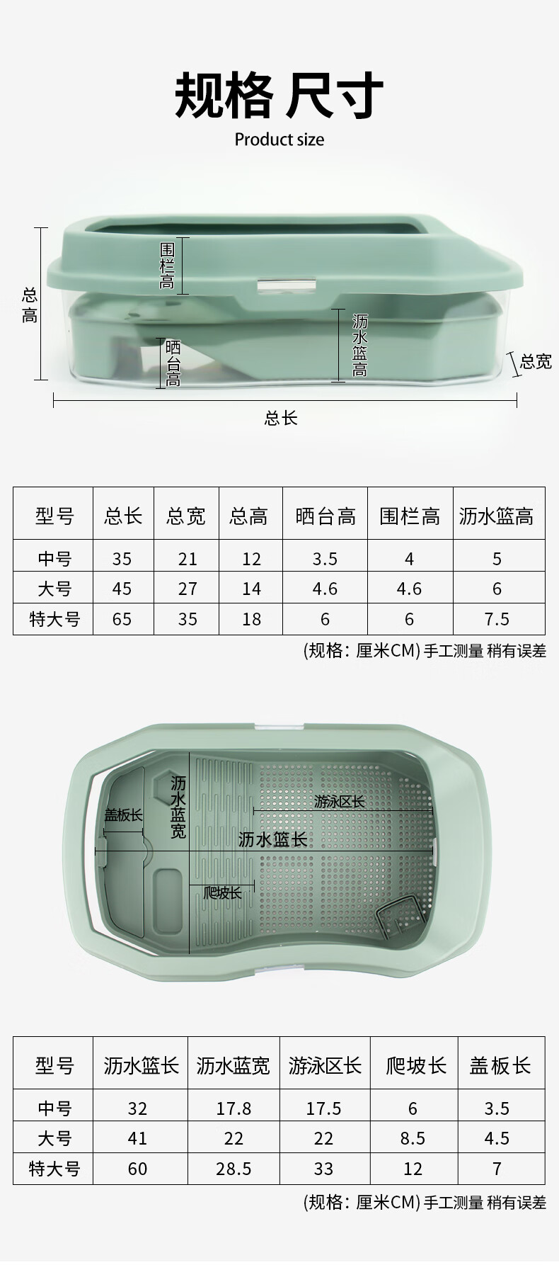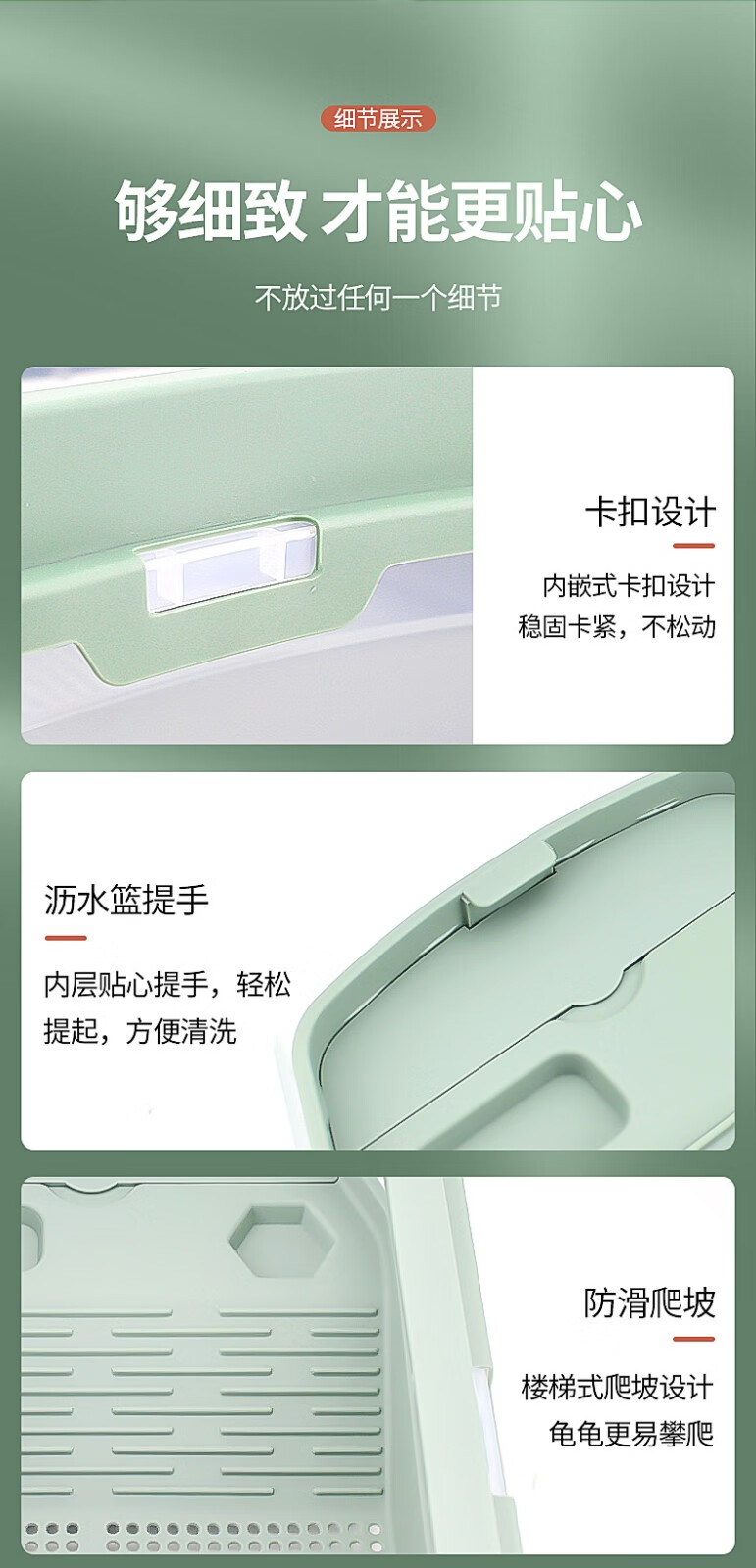 爬将军 乌龟缸带晒台 龟缸防逃逸龟箱 别墅家用生态造景水陆草龟养龟 北欧绿 中号(龟粮+造景+渔捞)