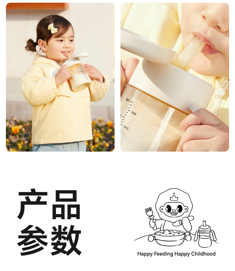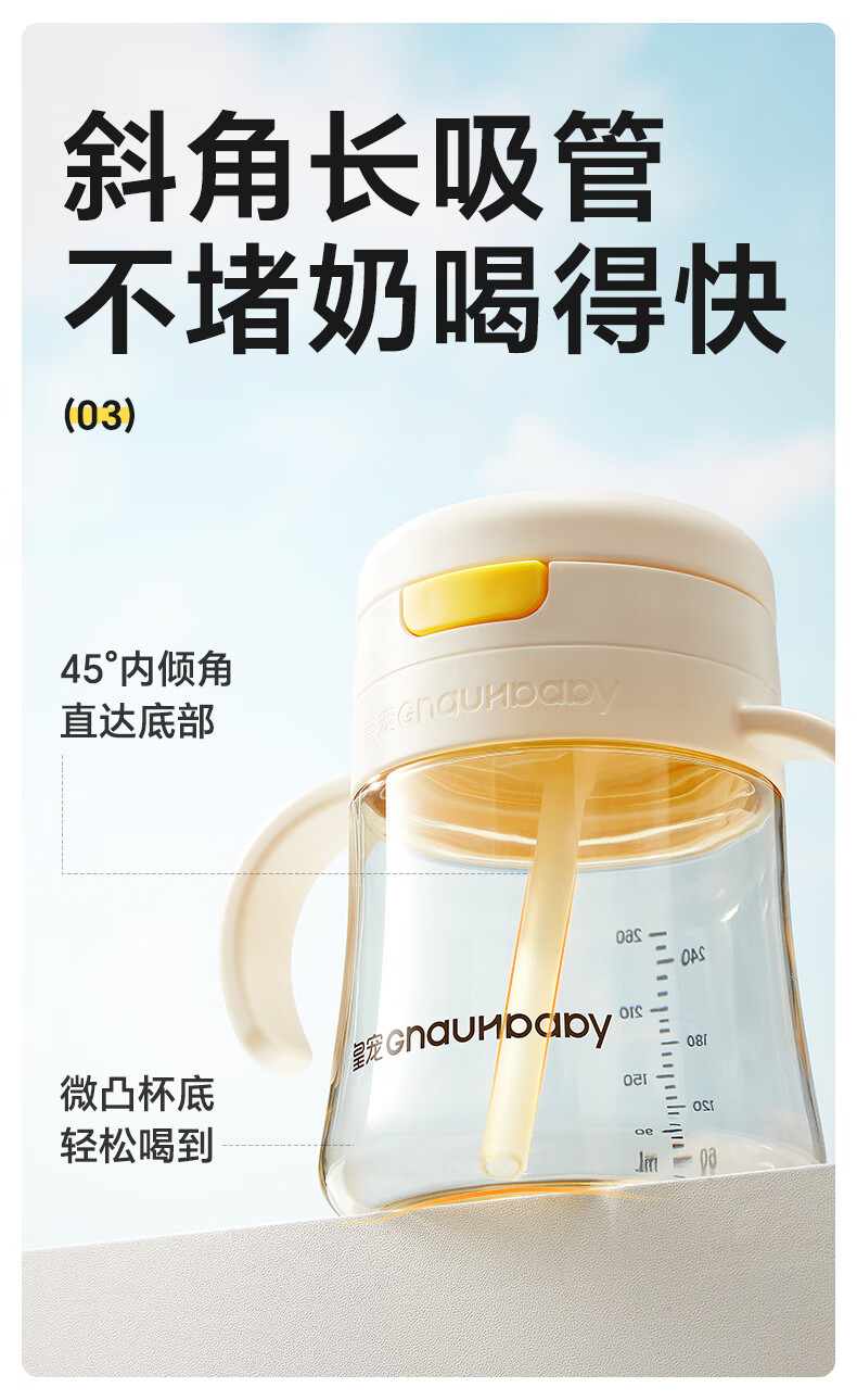皇宠儿童牛奶杯一岁以上宝宝水杯学饮弹盖吸管杯直饮奶瓶直饮杯 直饮牛奶杯260ML【12月+】