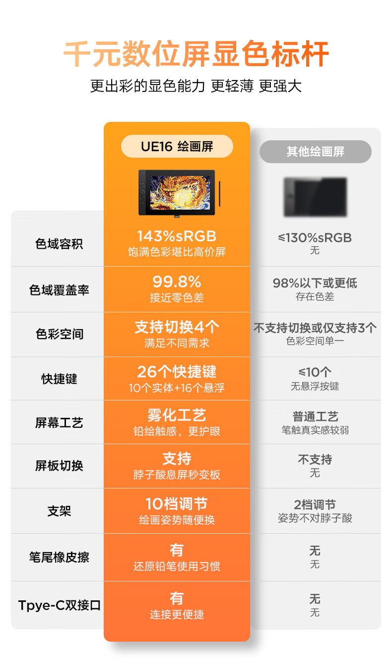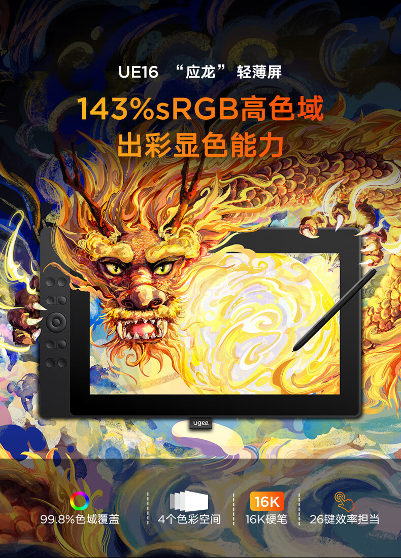 友基(UGEE)数位屏 16K级压感 手绘屏 电脑绘图屏 绘画手写屏 手绘板 液晶写字屏UE16