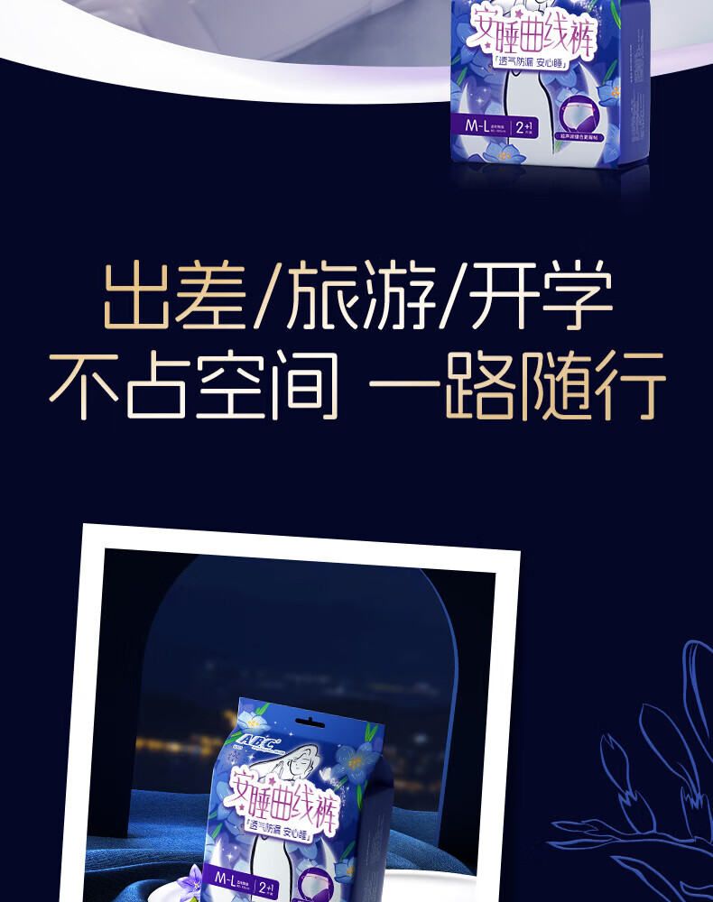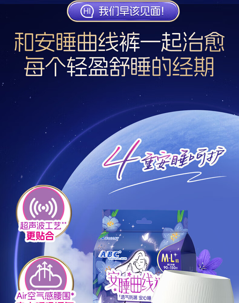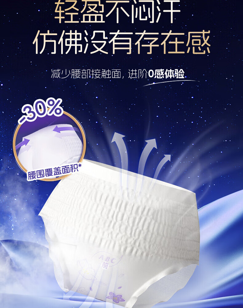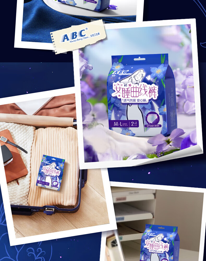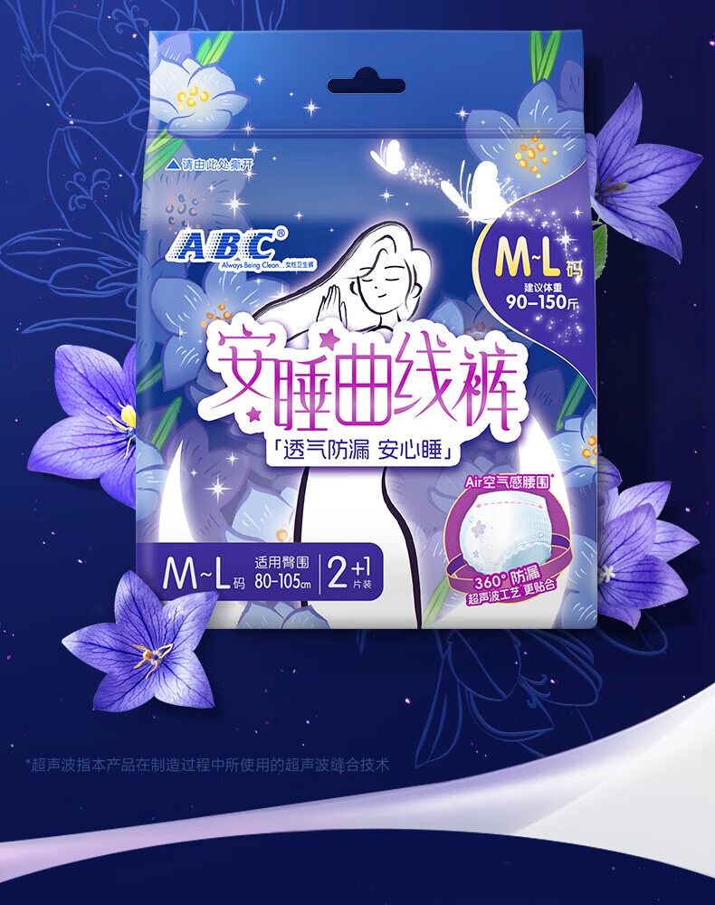 ABC安睡曲线裤柔软亲肤透气防漏安心睡裤型卫生巾安全裤 M-L码 12条t